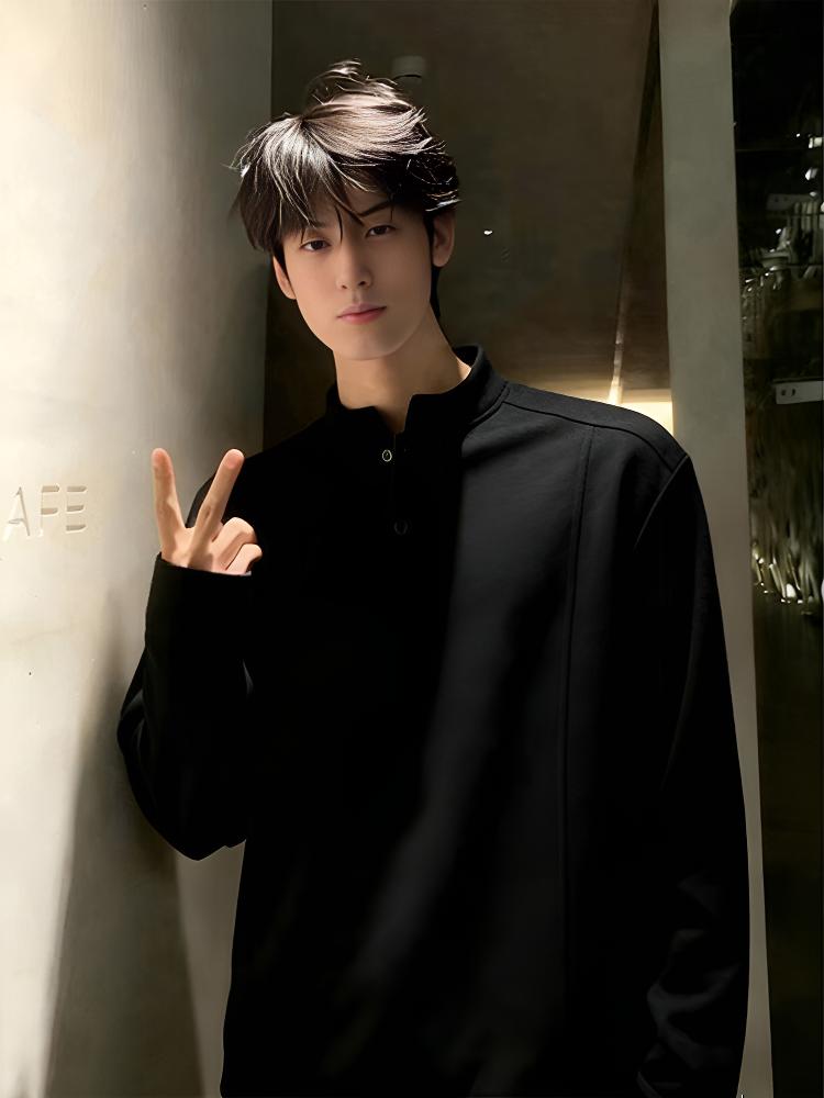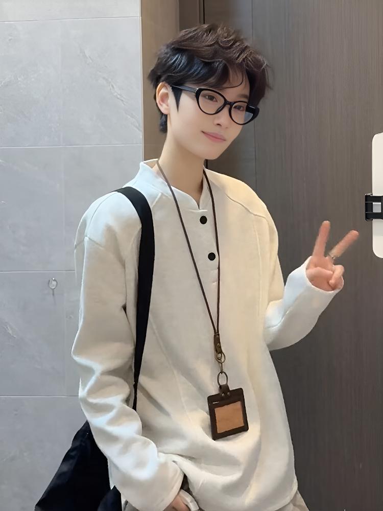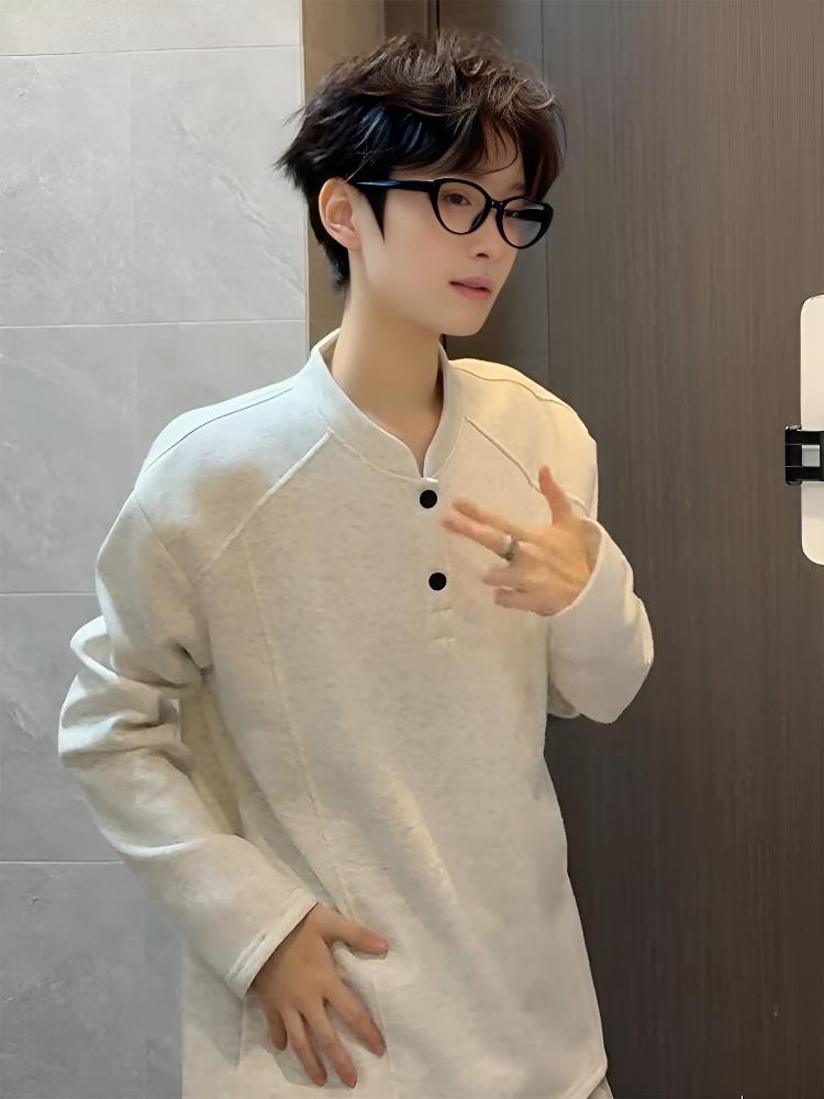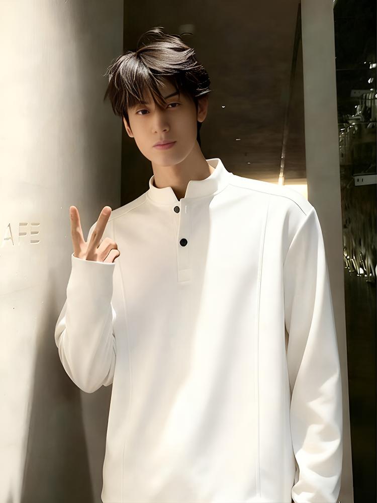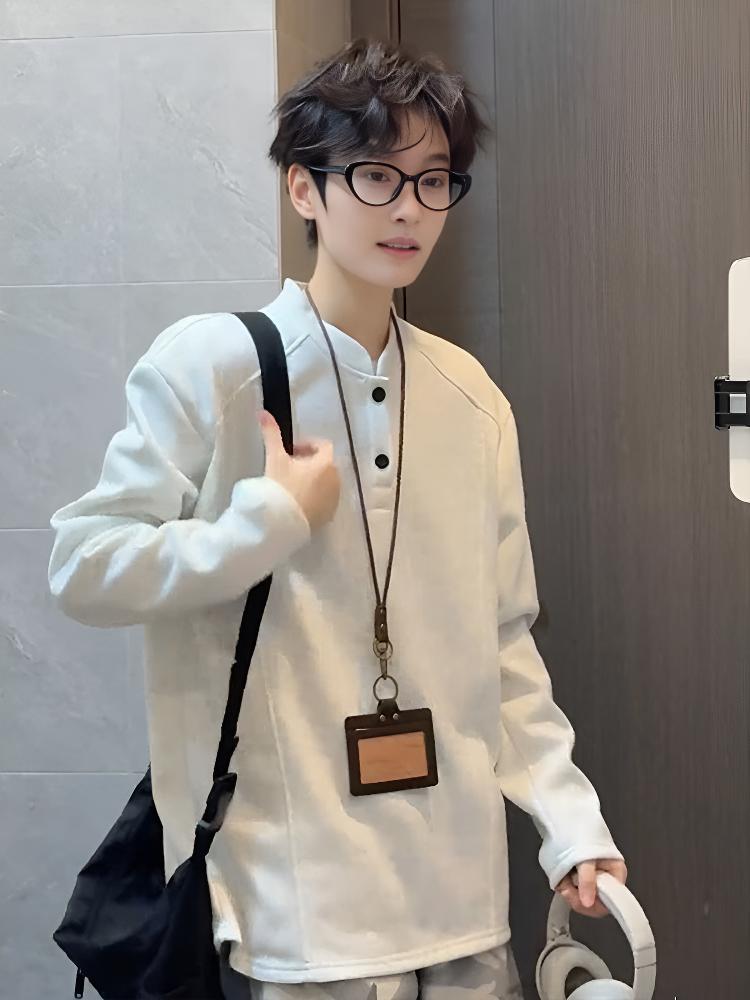 Katuchi plus velvet right shoulder Henry collar POLO shirt deconstructed splicing sweatshirt men's winter trendy brand bomber jacket high street top white gray plus velvet style XL