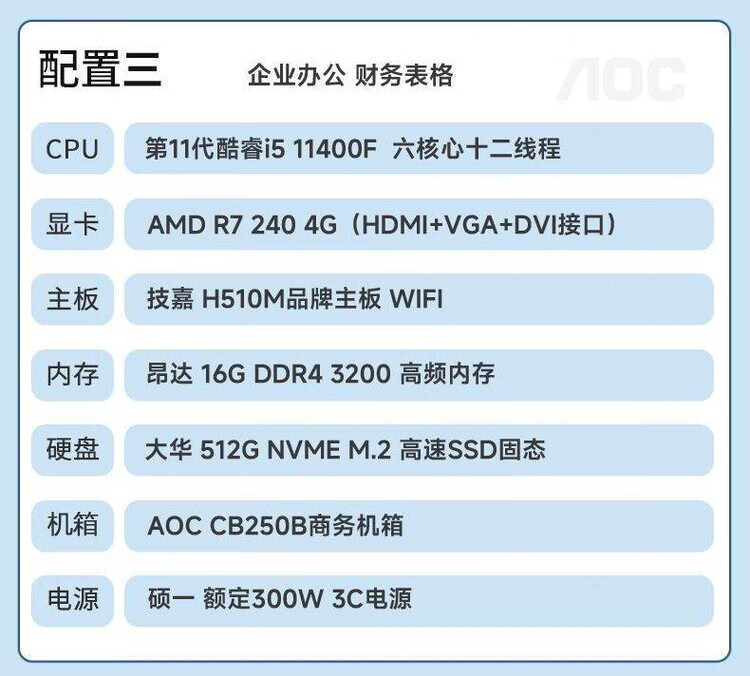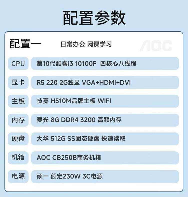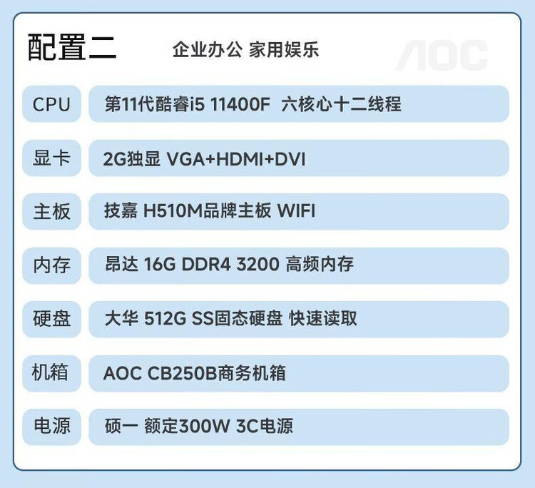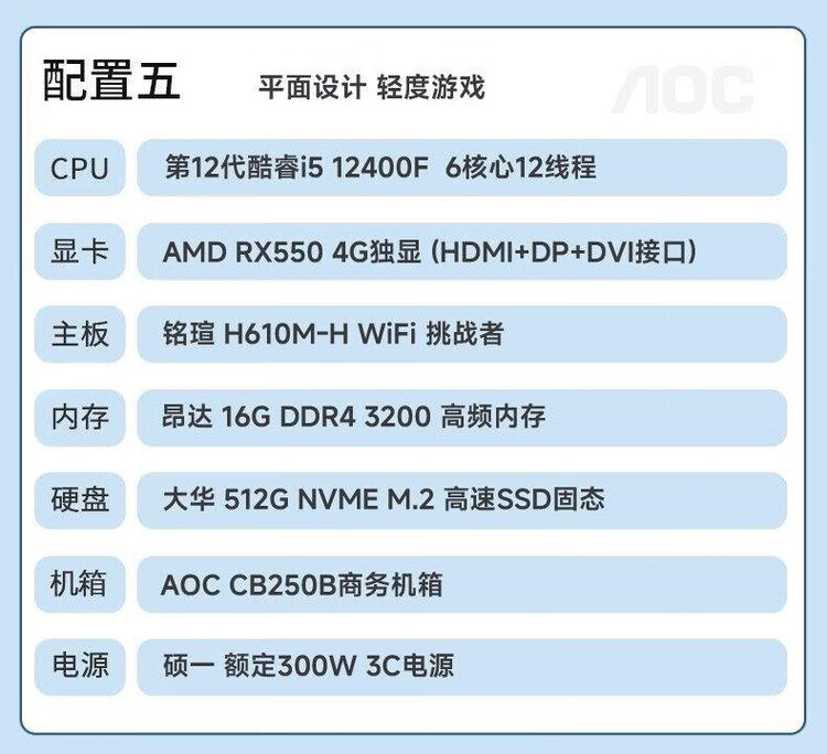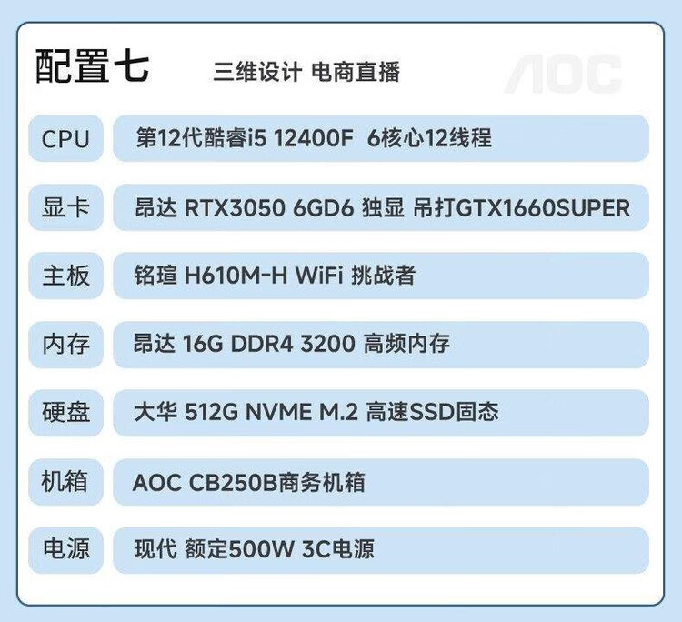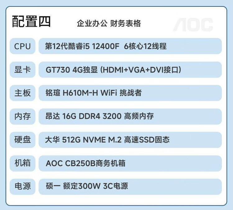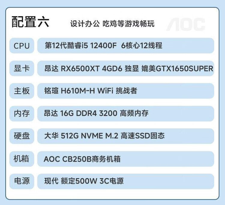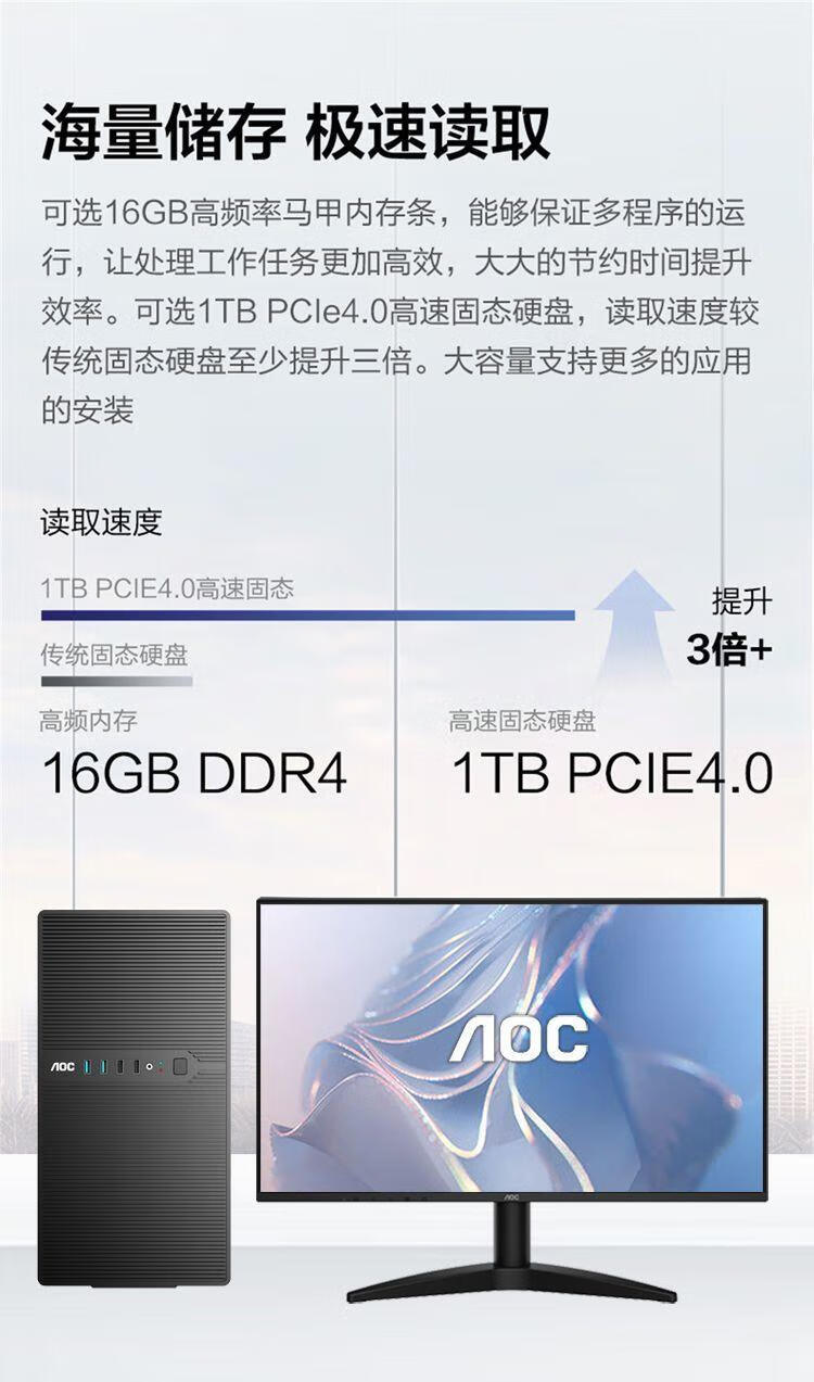AOC i5 13400/12400F/RTX3050 office home design game assembly computer desktop host configuration two single host