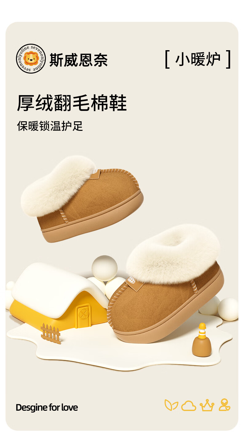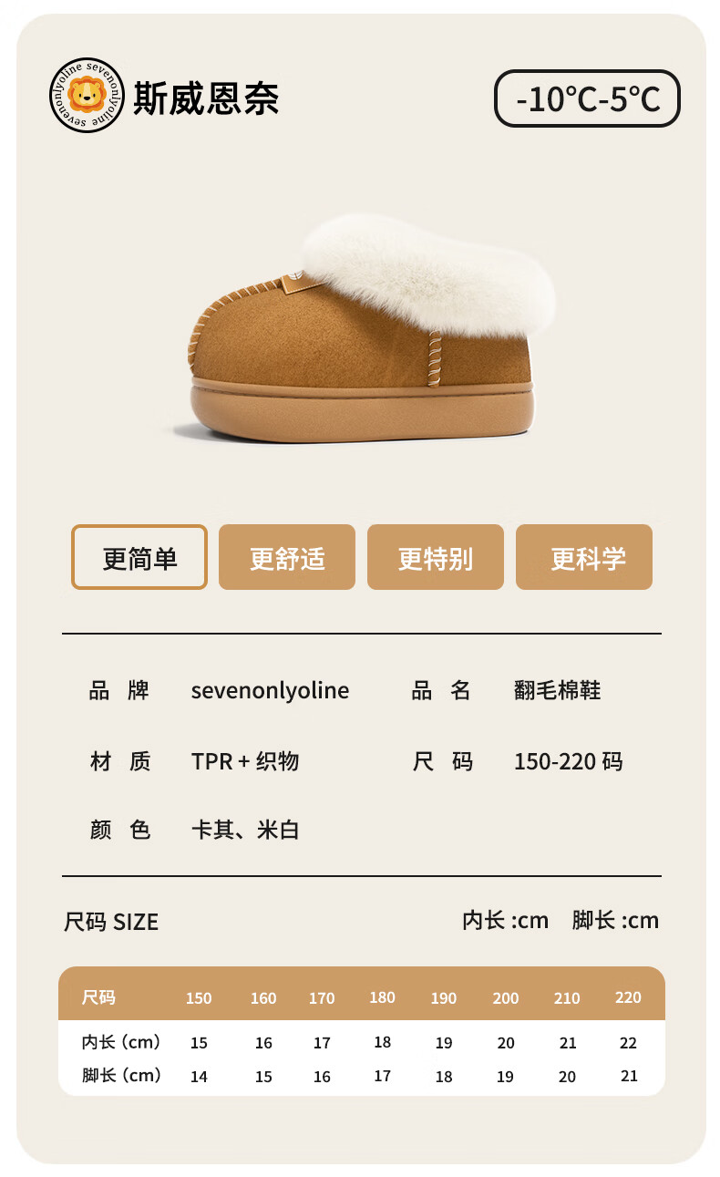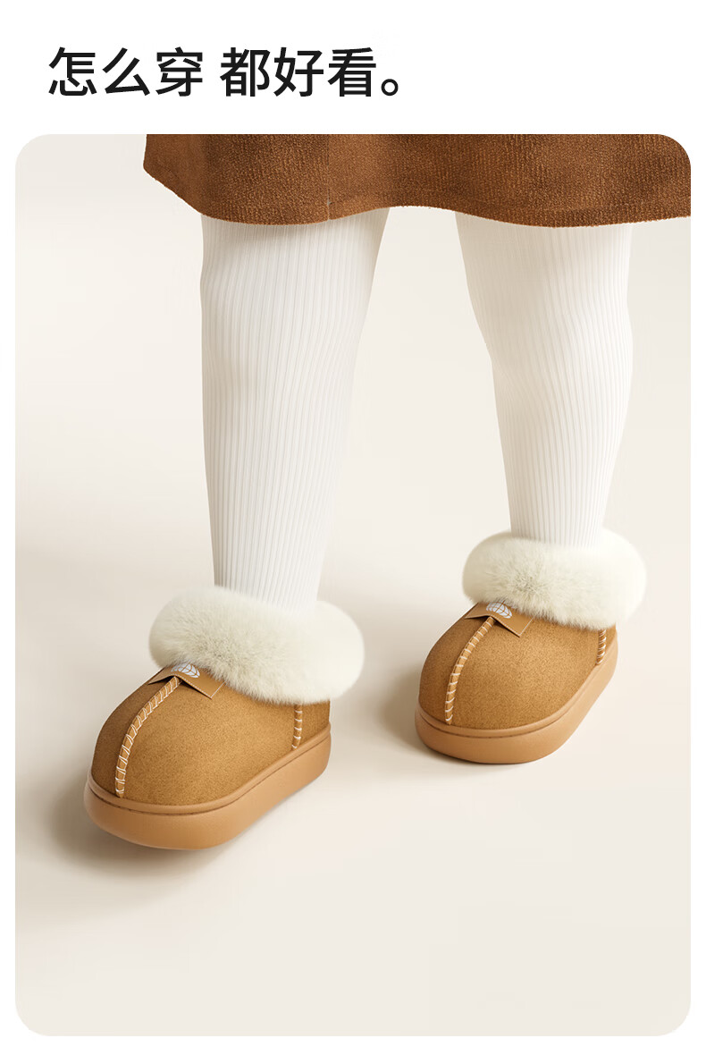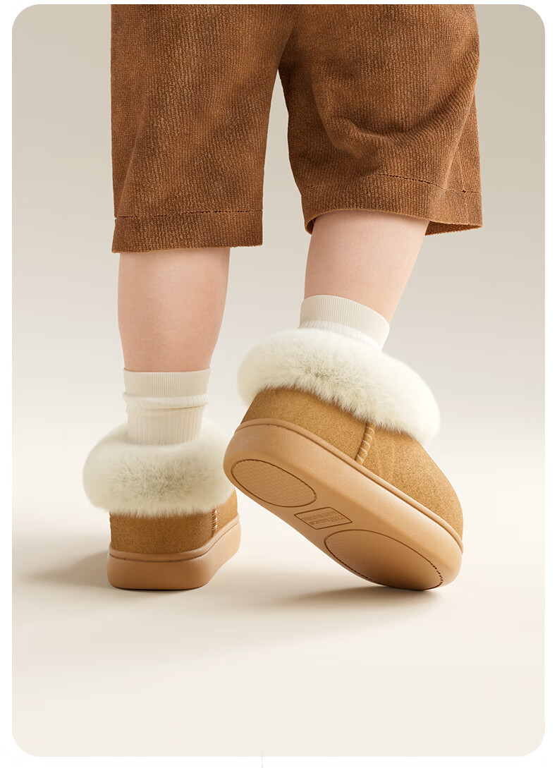 SEVEN ONLY OLINE children's cotton slippers, boys and girls, winter warm plus velvet outer wear, non-slip children's cotton shoes for middle-aged and older children, khaki brown, 16 cm inner length 160, foot length about 15cm