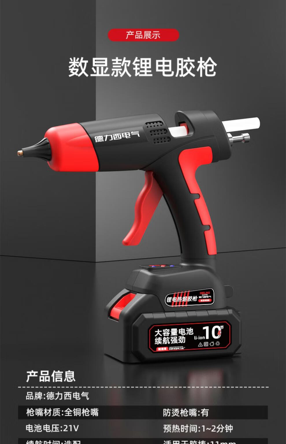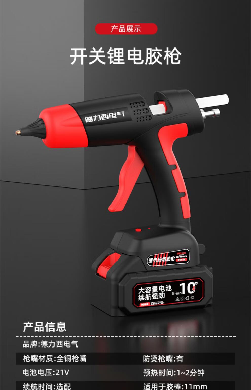 Delixi Electric Wireless Lithium Electric Hot Melt Glue Gun 21V Industrial Grade Hot Melt Gun Rechargeable Hot Glue Gun Hot Melt Glue Delixi Electric-21V 5 cells One battery and one charge