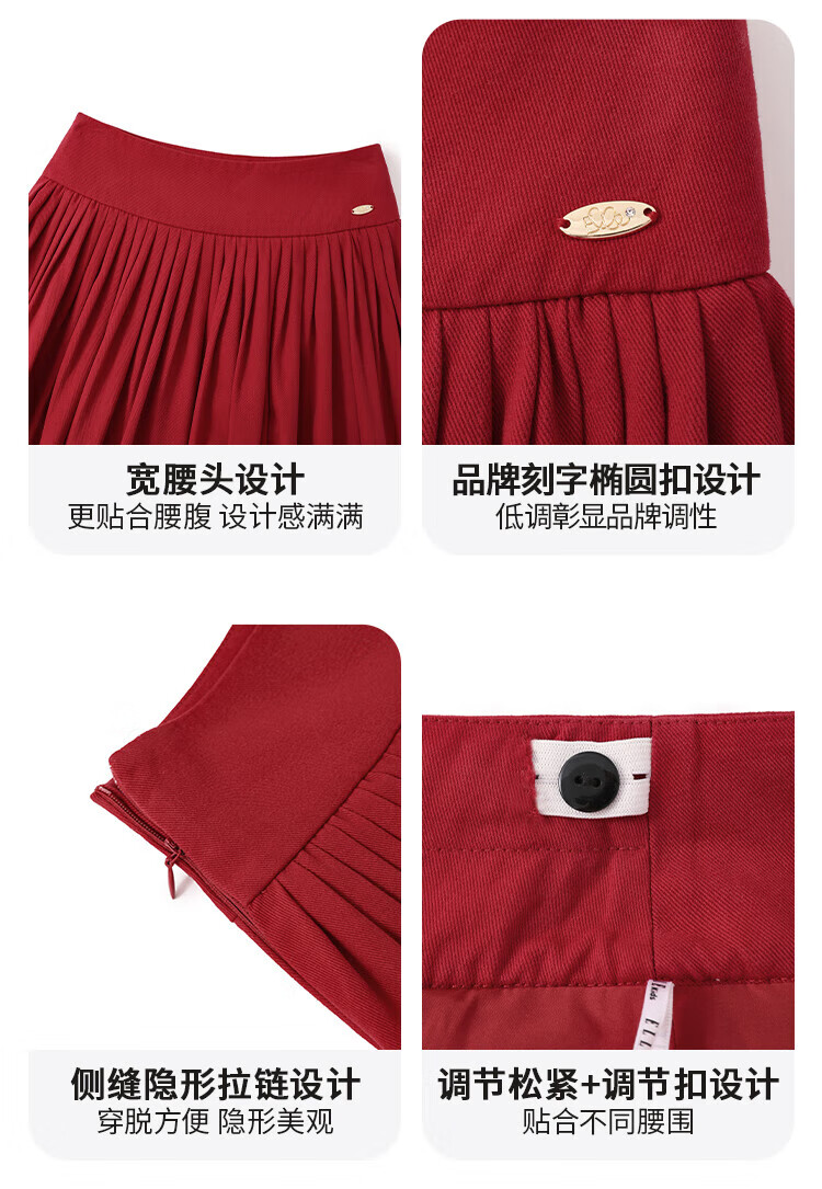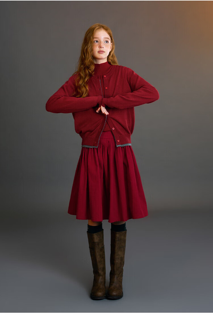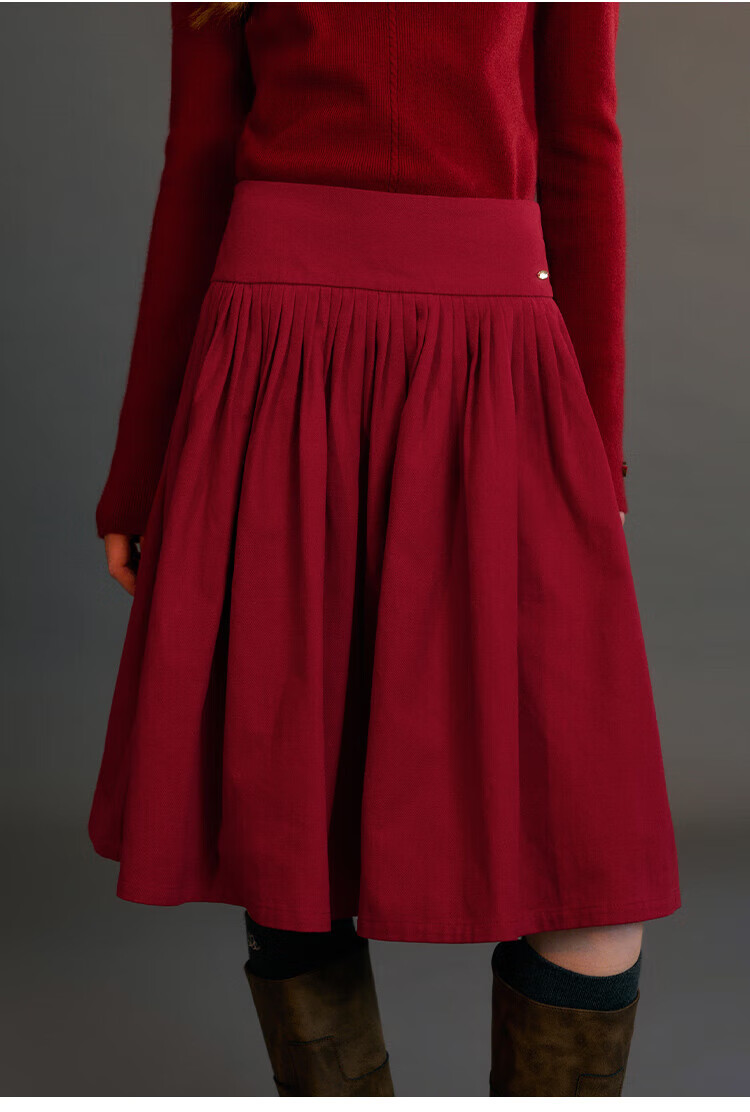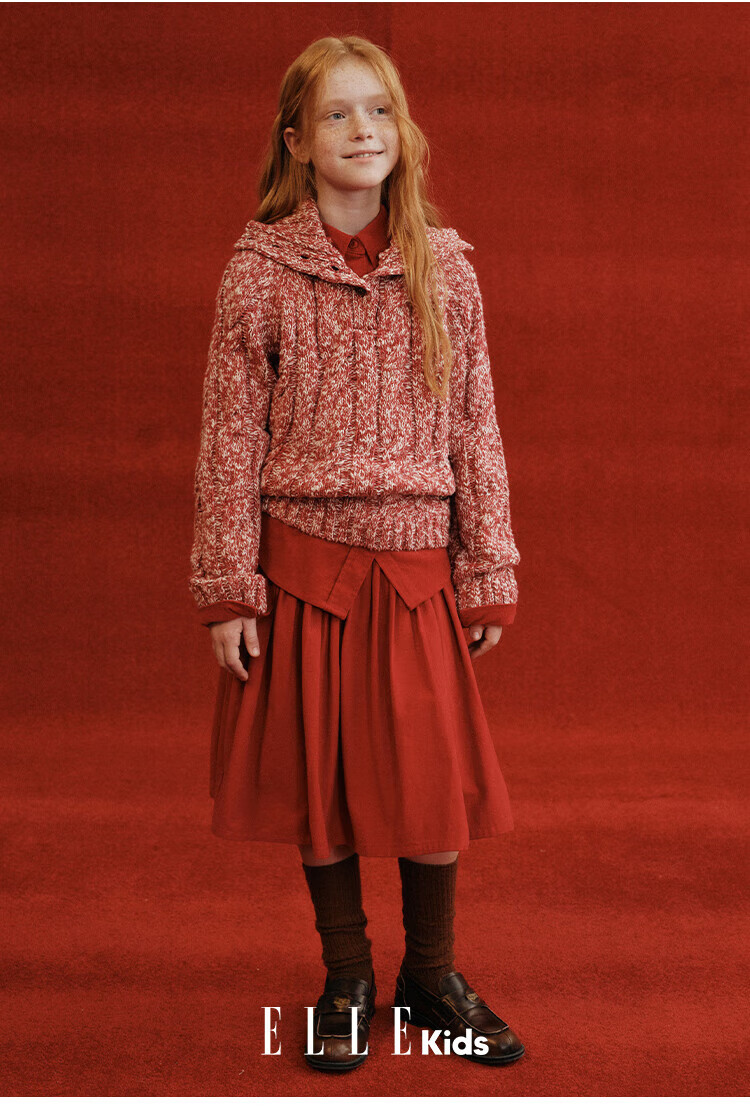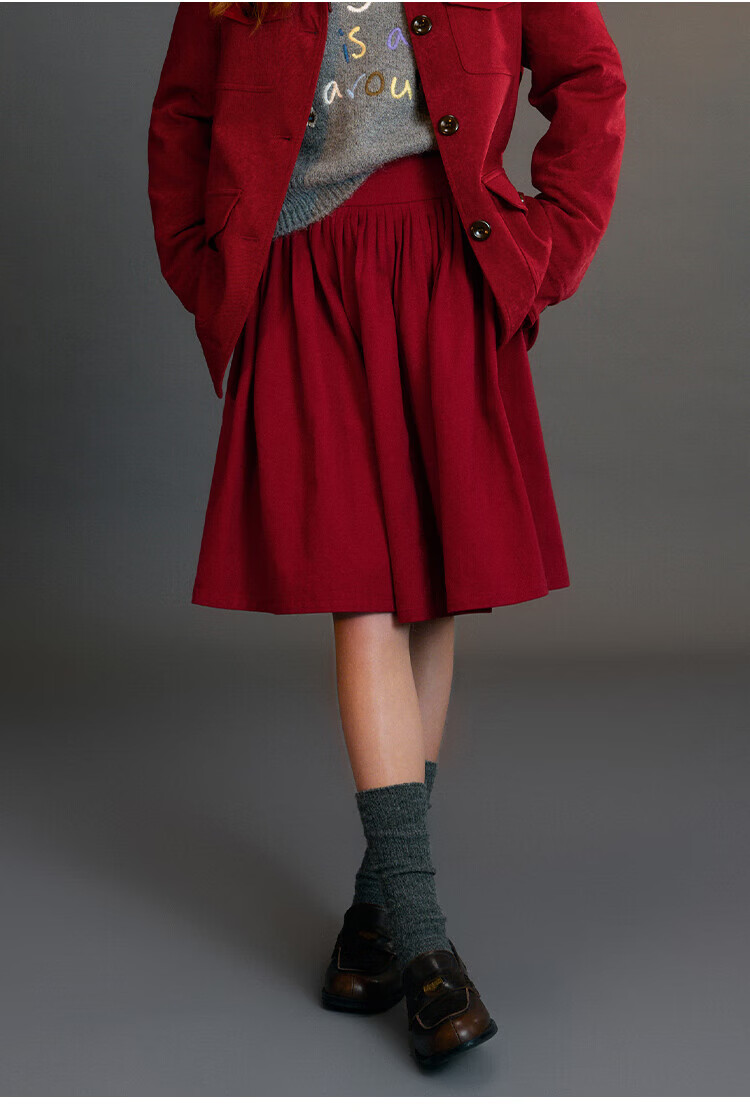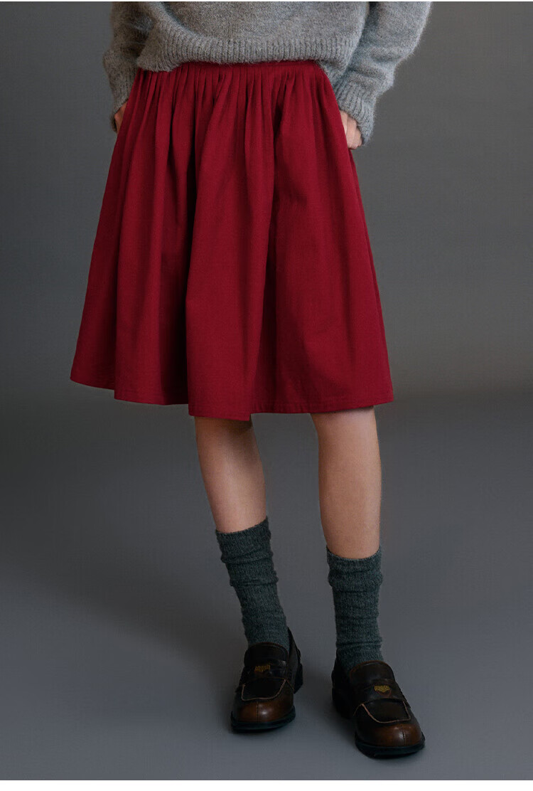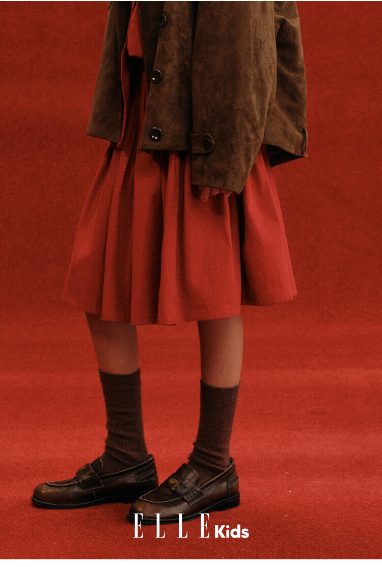 ELLE KIDS Children's Clothing Wide Waist Pleated Umbrella Skirt Girls Winter New French A-line Profile Horse Year Red Half Skirt New Year Red 165 (M)