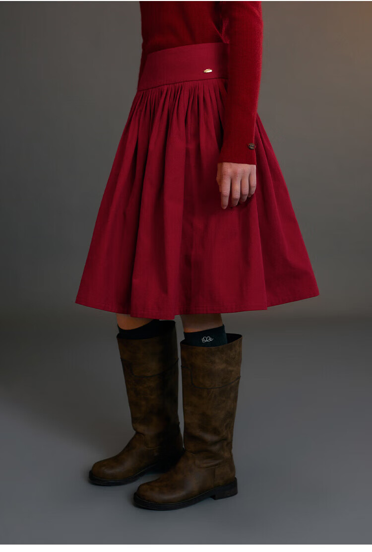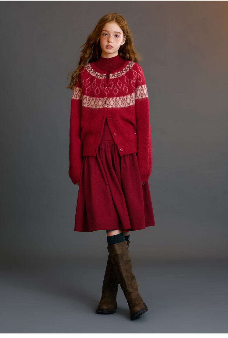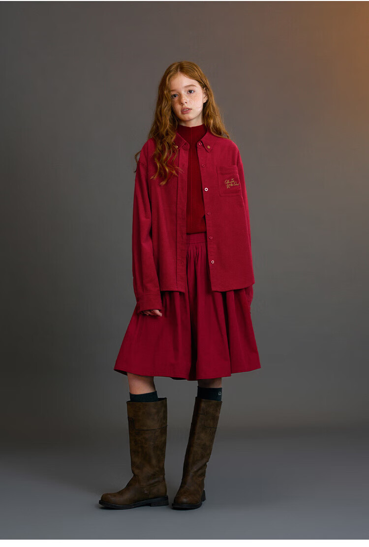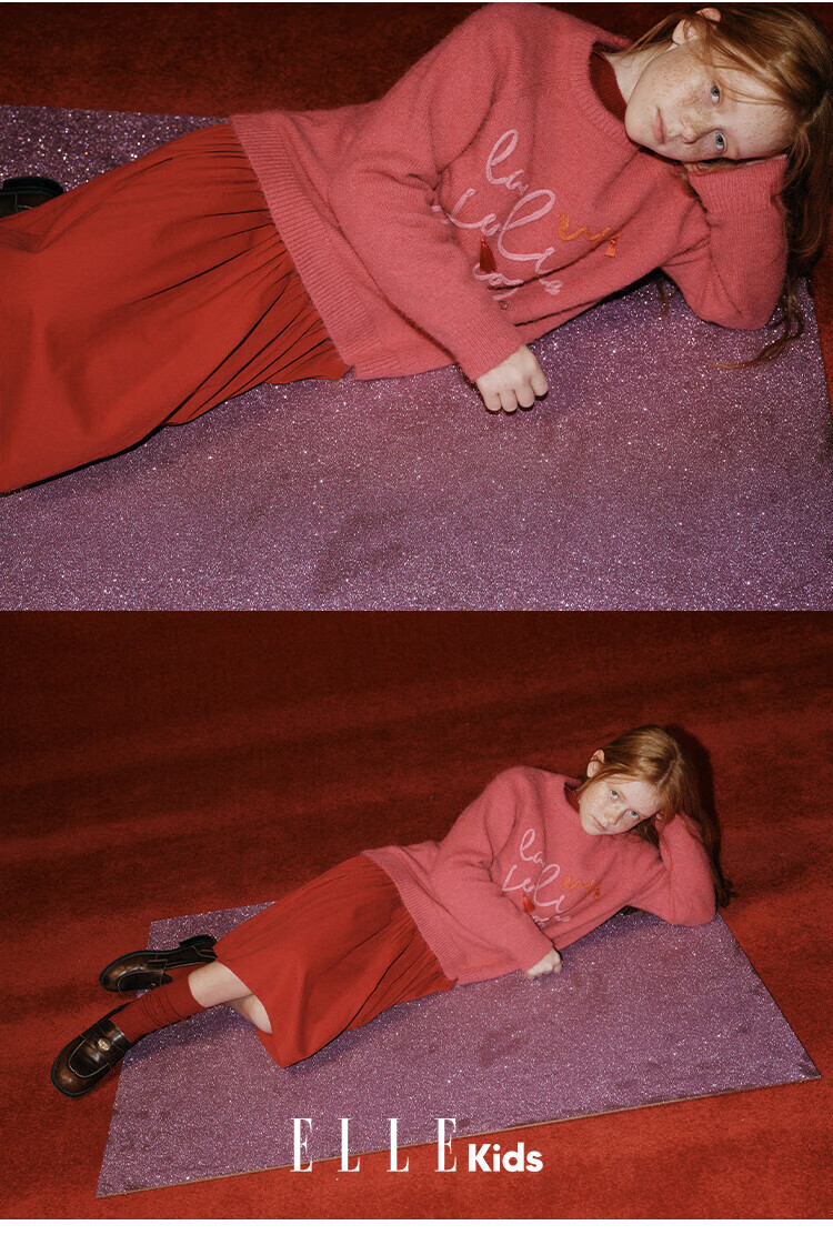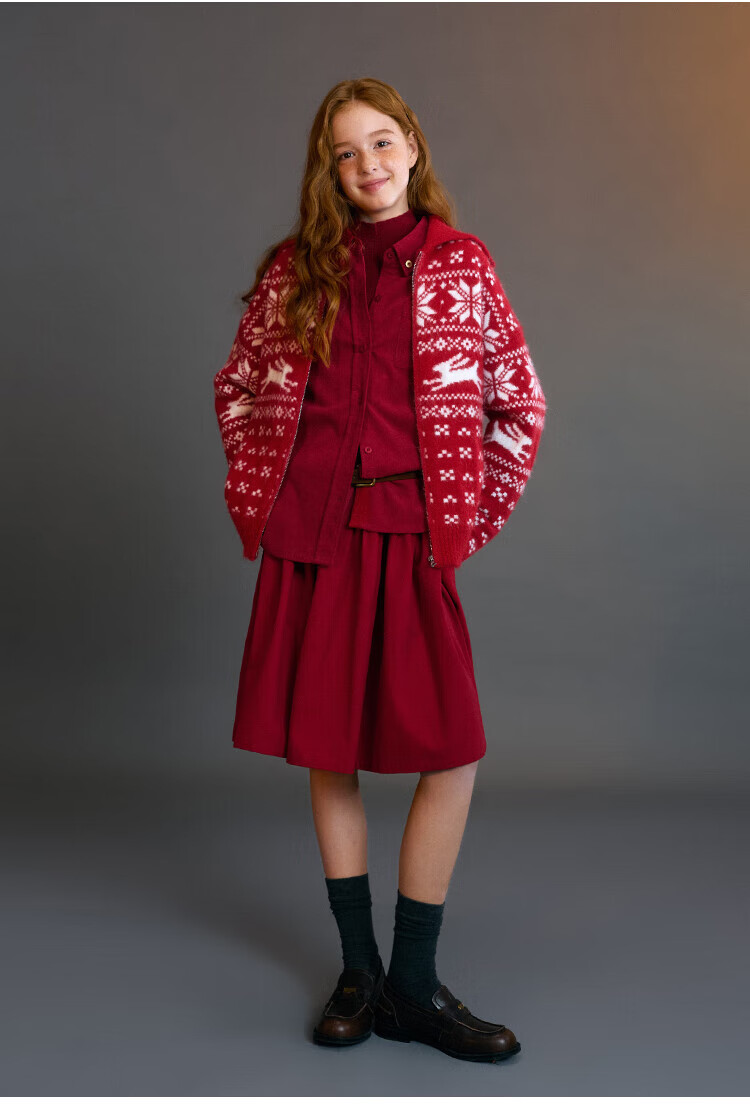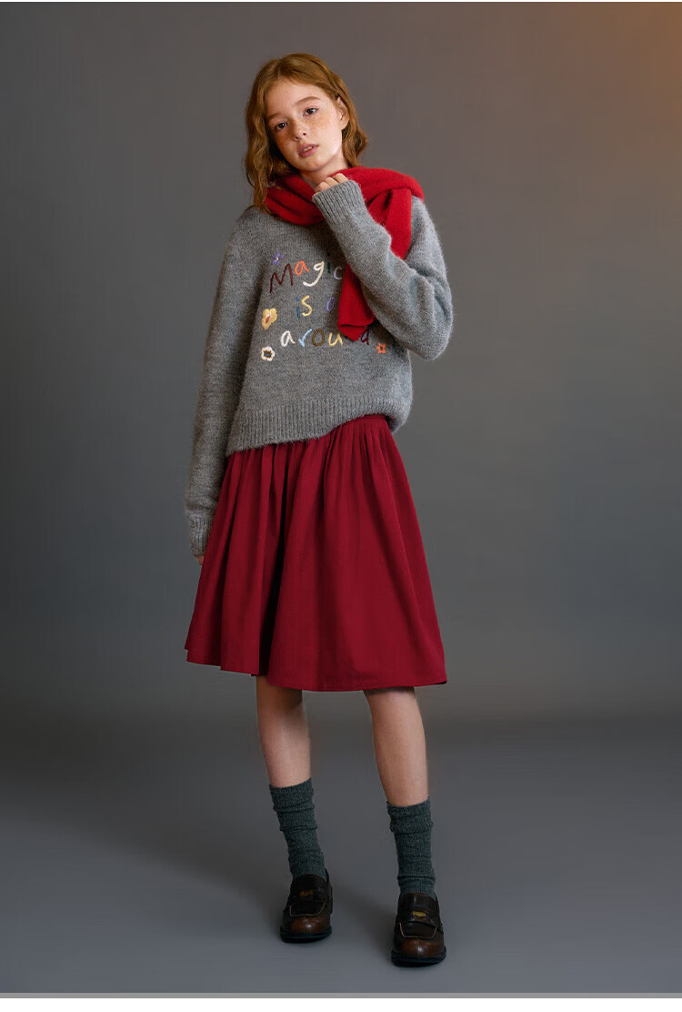 ELLE KIDS Children's Clothing Wide Waist Pleated Umbrella Skirt Girls Winter New French A-line Profile Horse Year Red Half Skirt New Year Red 165 (M)