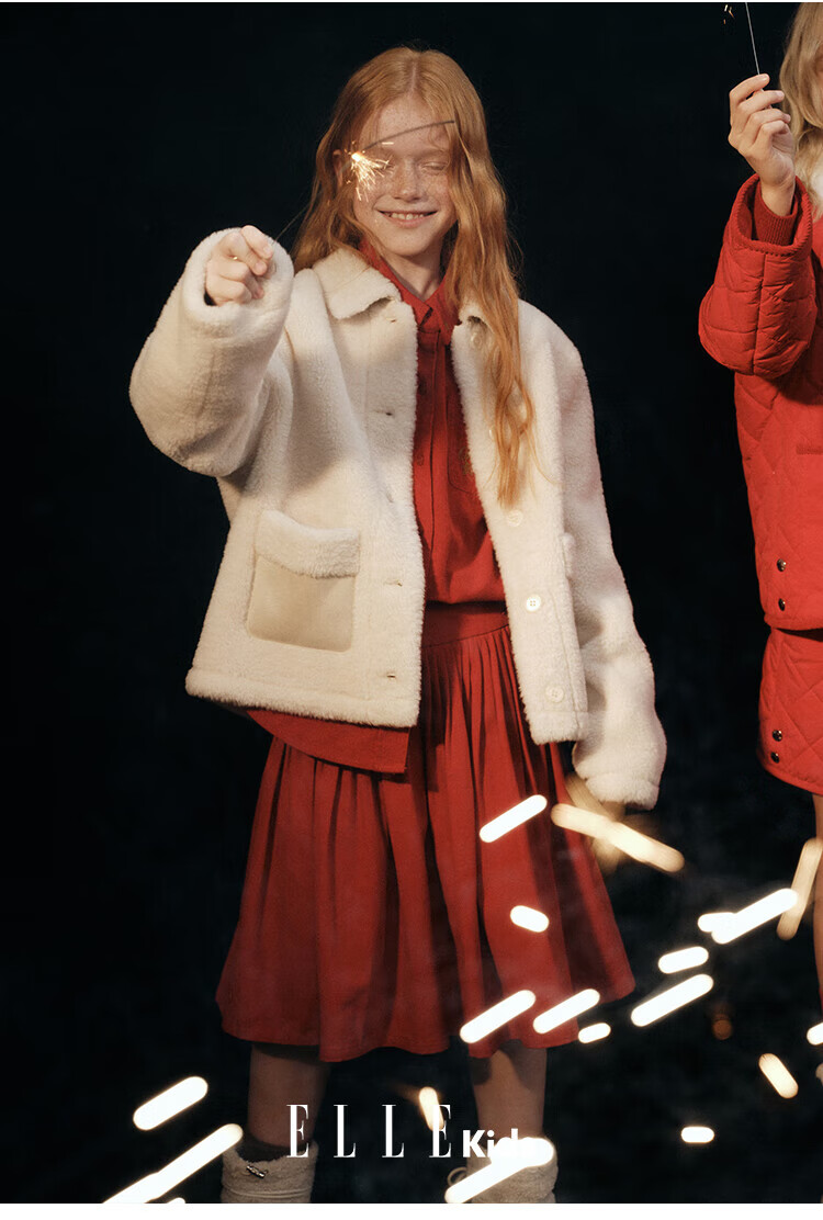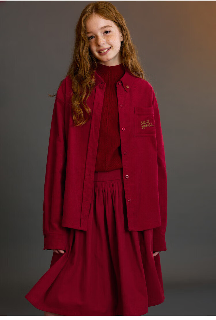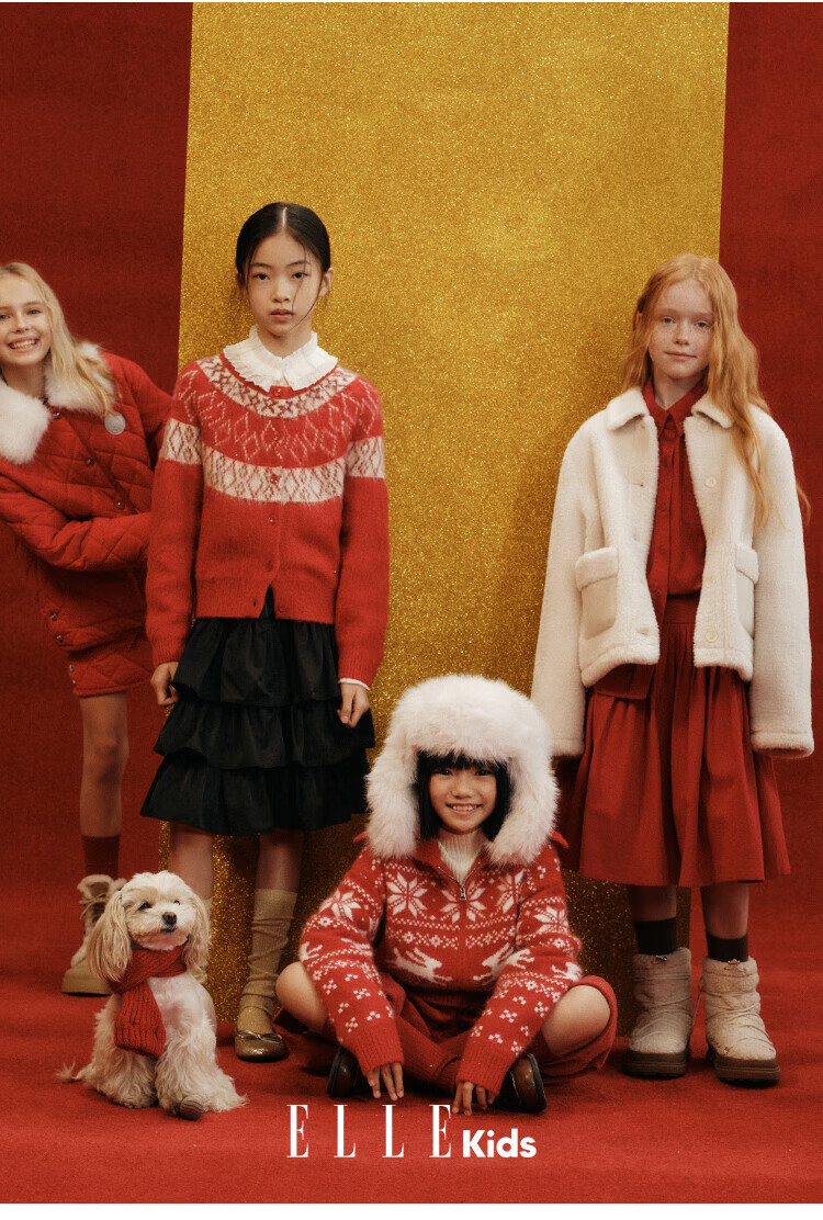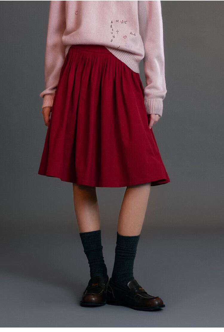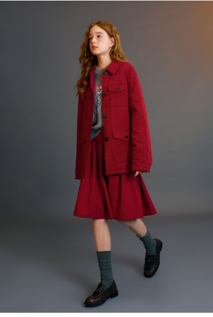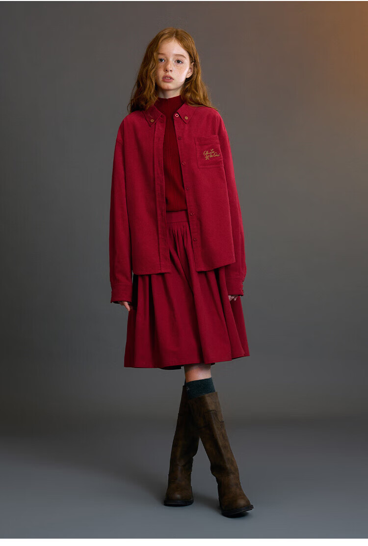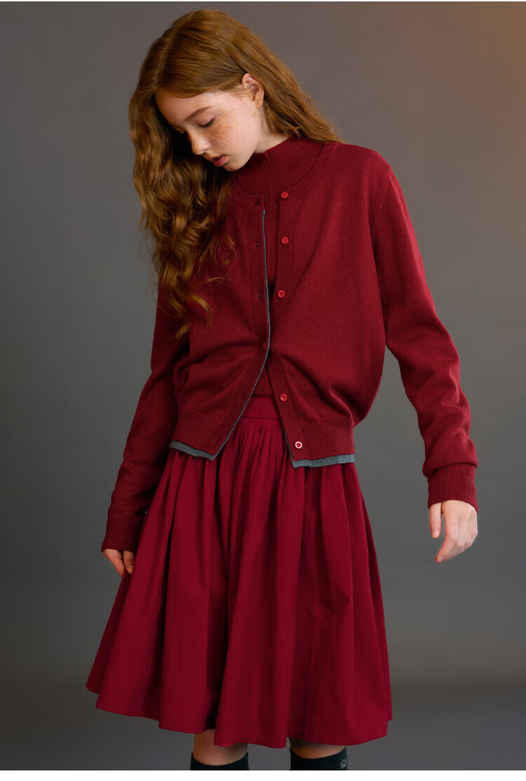 ELLE KIDS Children's Clothing Wide Waist Pleated Umbrella Skirt Girls Winter New French A-line Profile Horse Year Red Half Skirt New Year Red 165 (M)