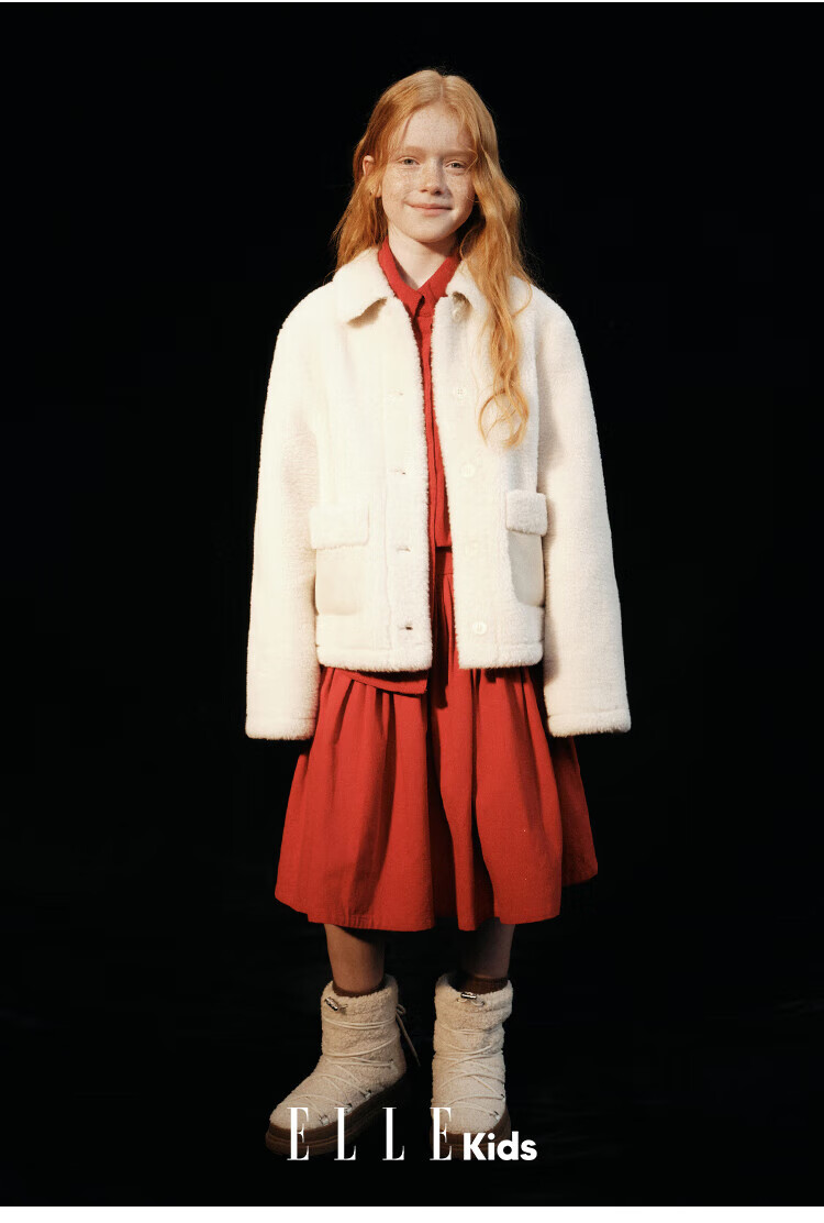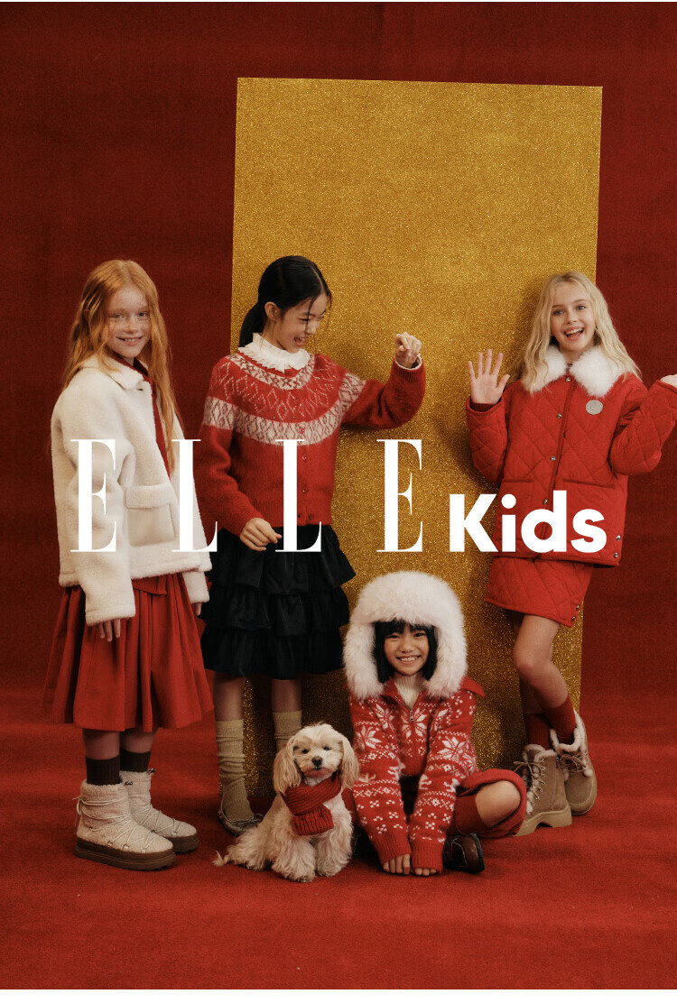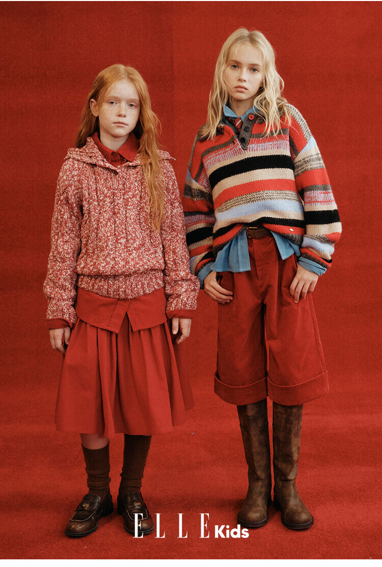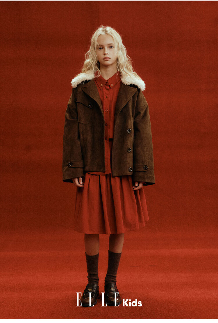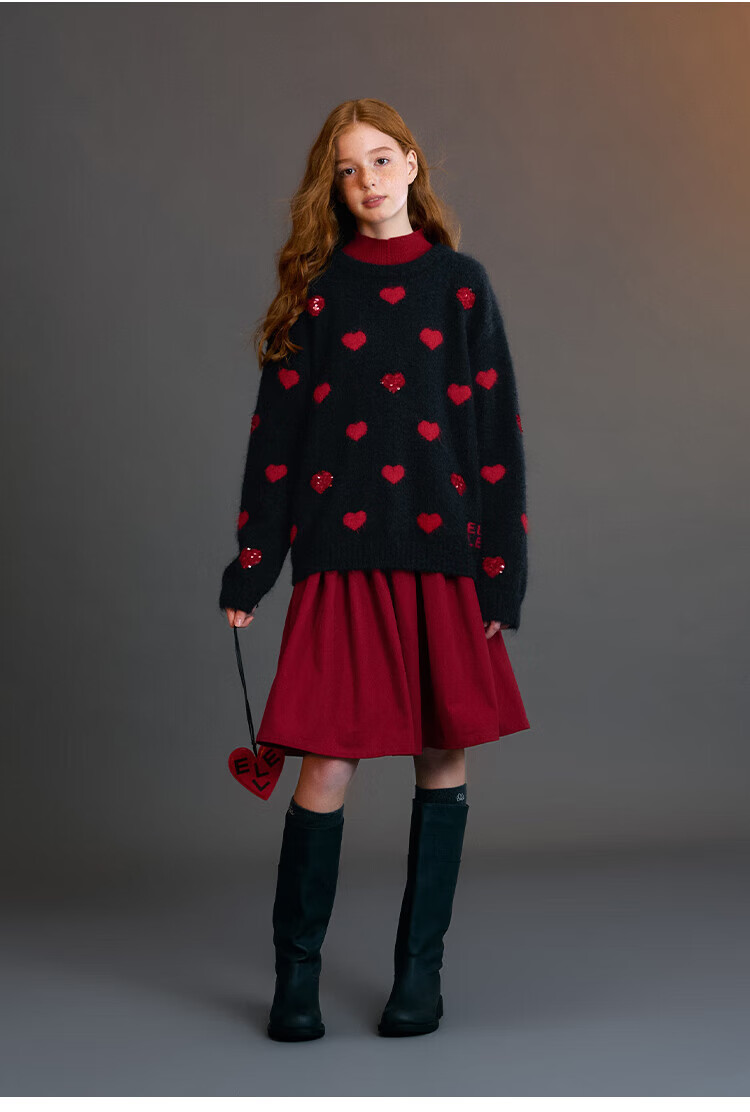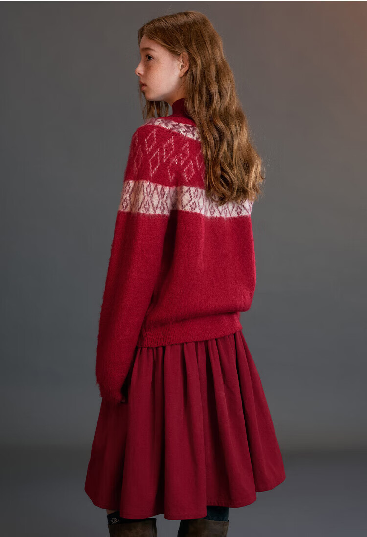 ELLE KIDS Children's Clothing Wide Waist Pleated Umbrella Skirt Girls Winter New French A-line Profile Horse Year Red Half Skirt New Year Red 165 (M)