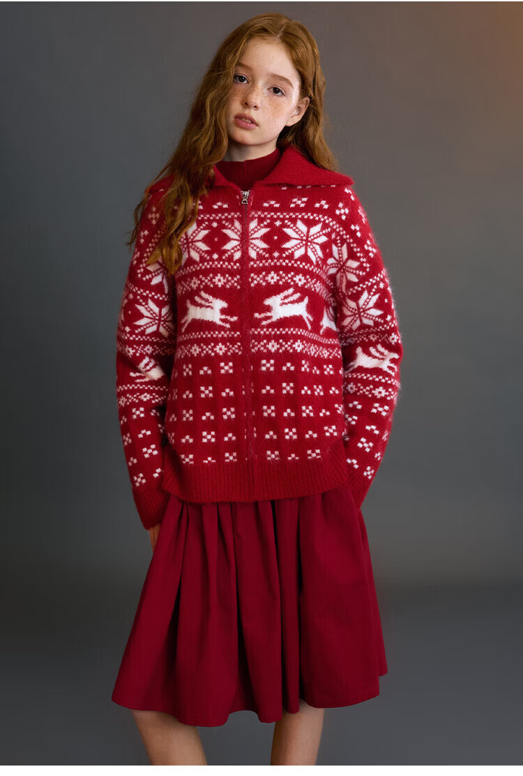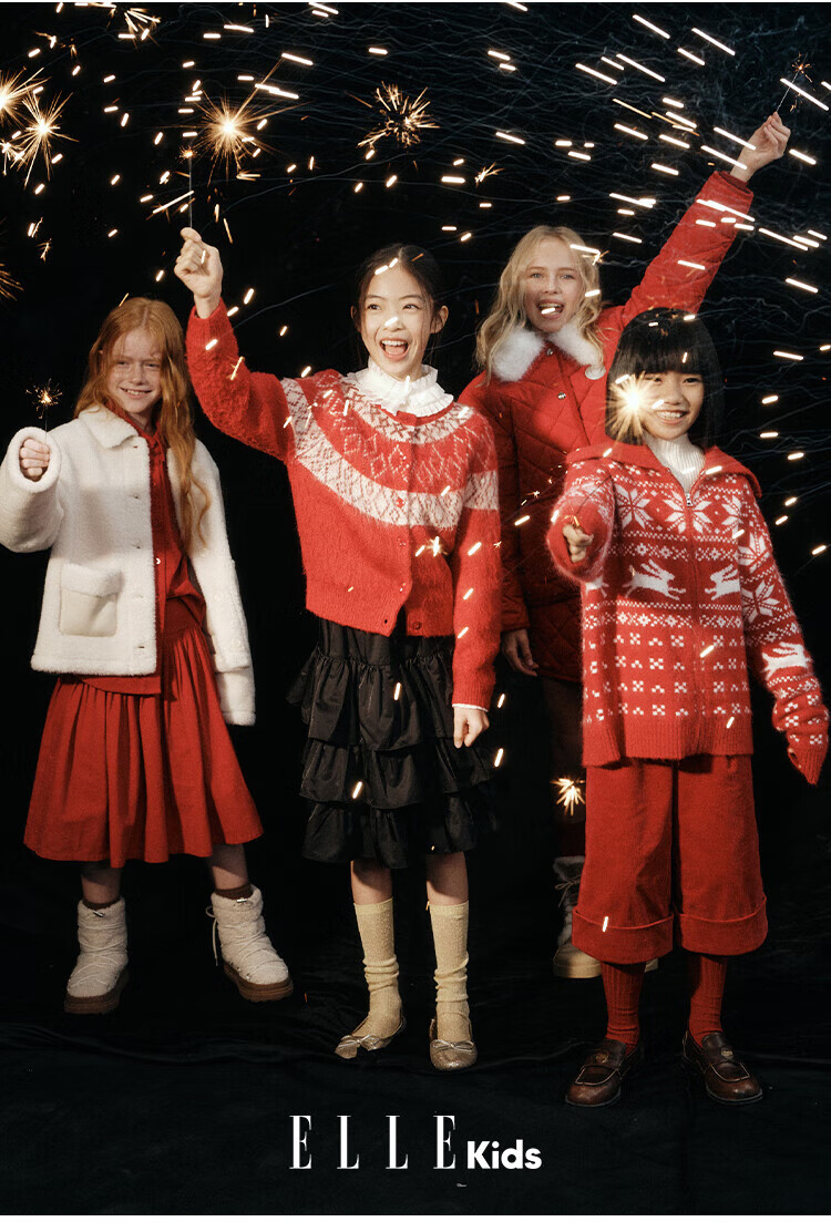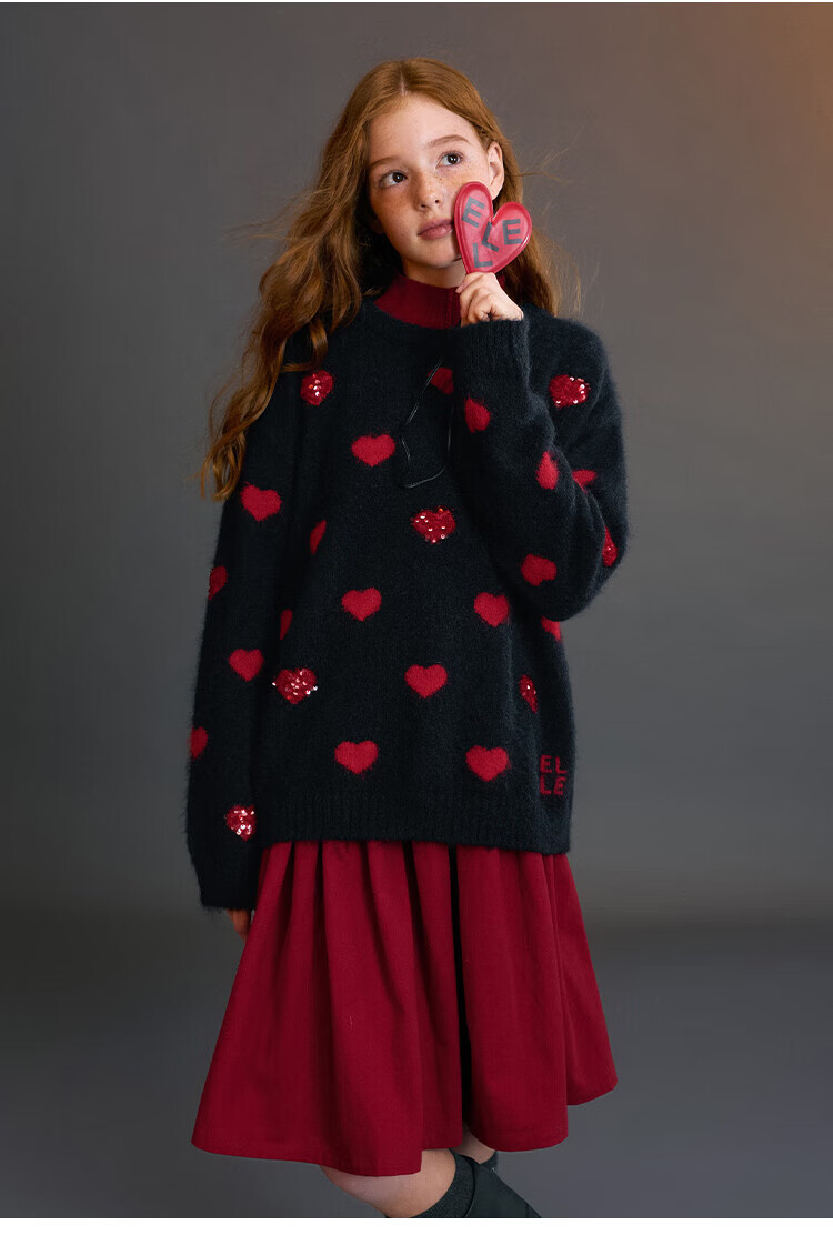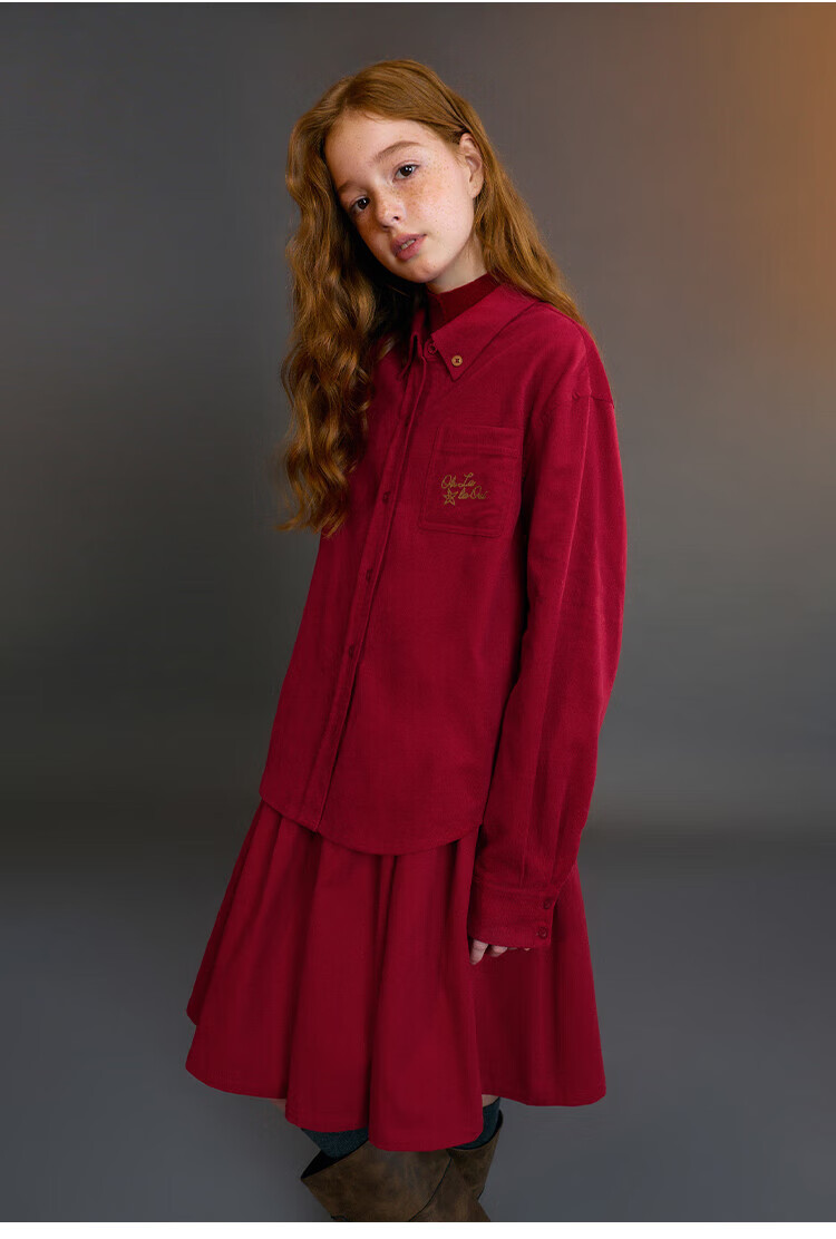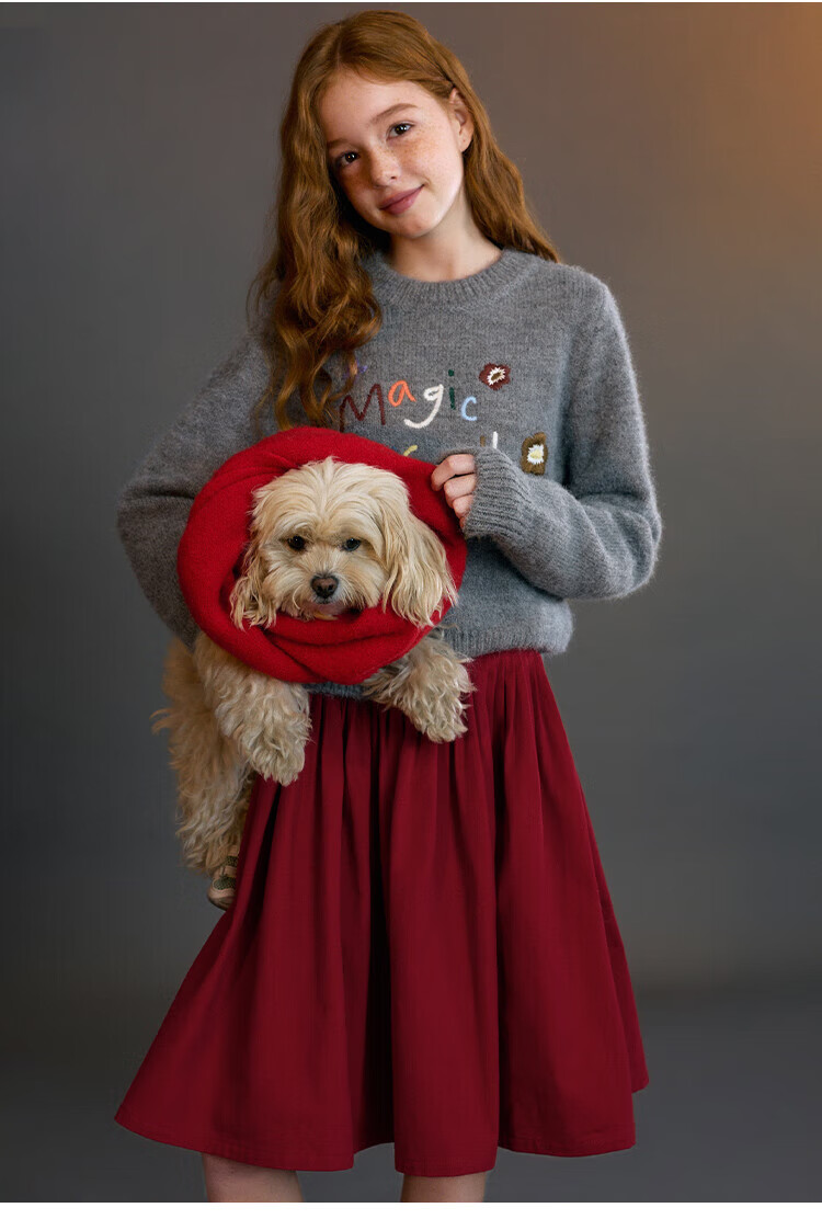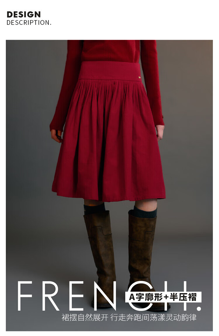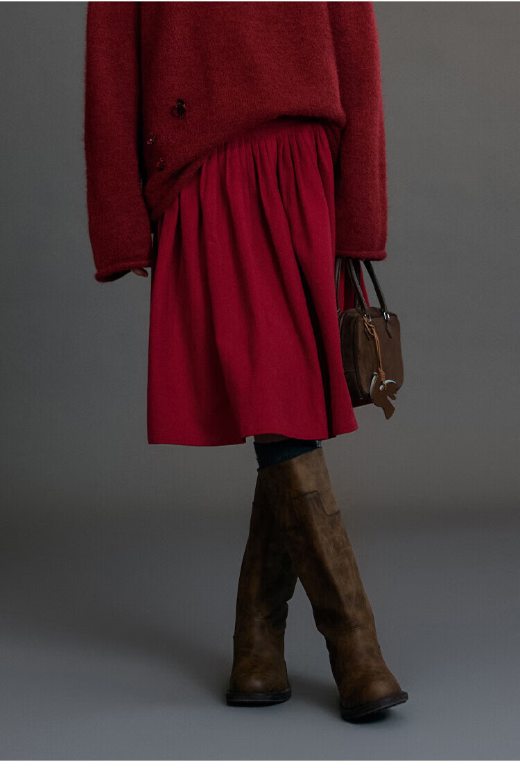 ELLE KIDS Children's Clothing Wide Waist Pleated Umbrella Skirt Girls Winter New French A-line Profile Horse Year Red Half Skirt New Year Red 165 (M)