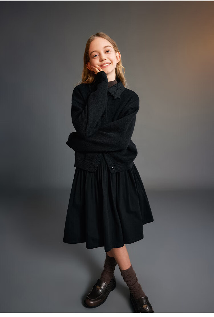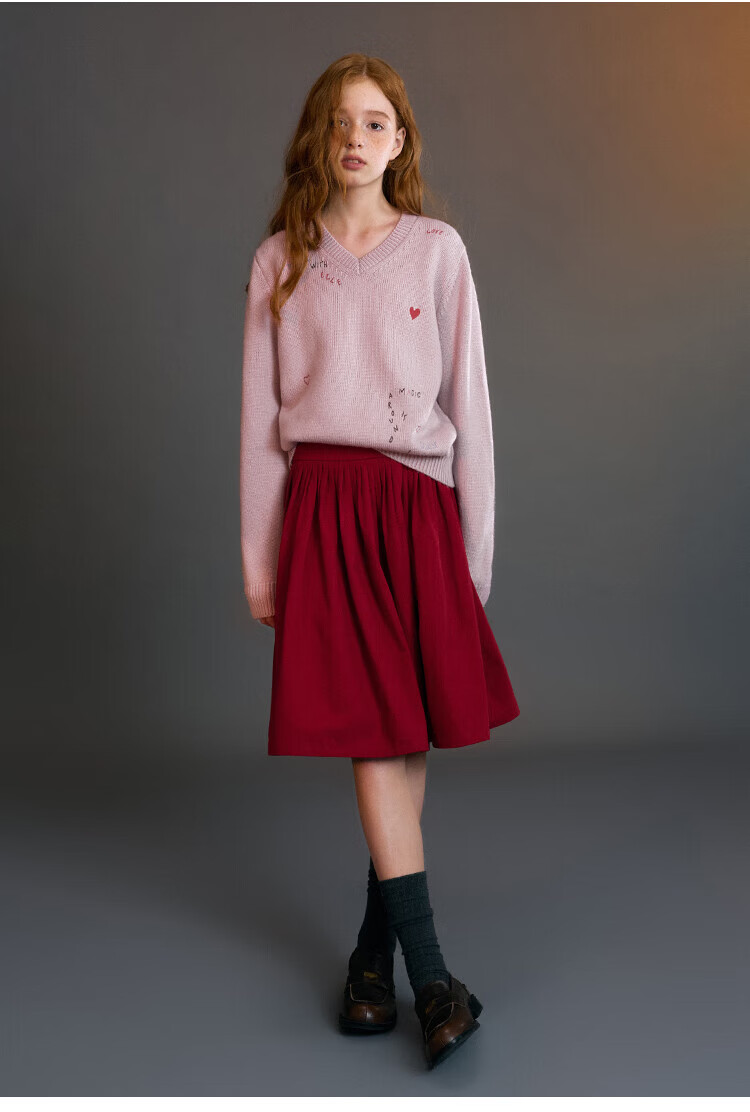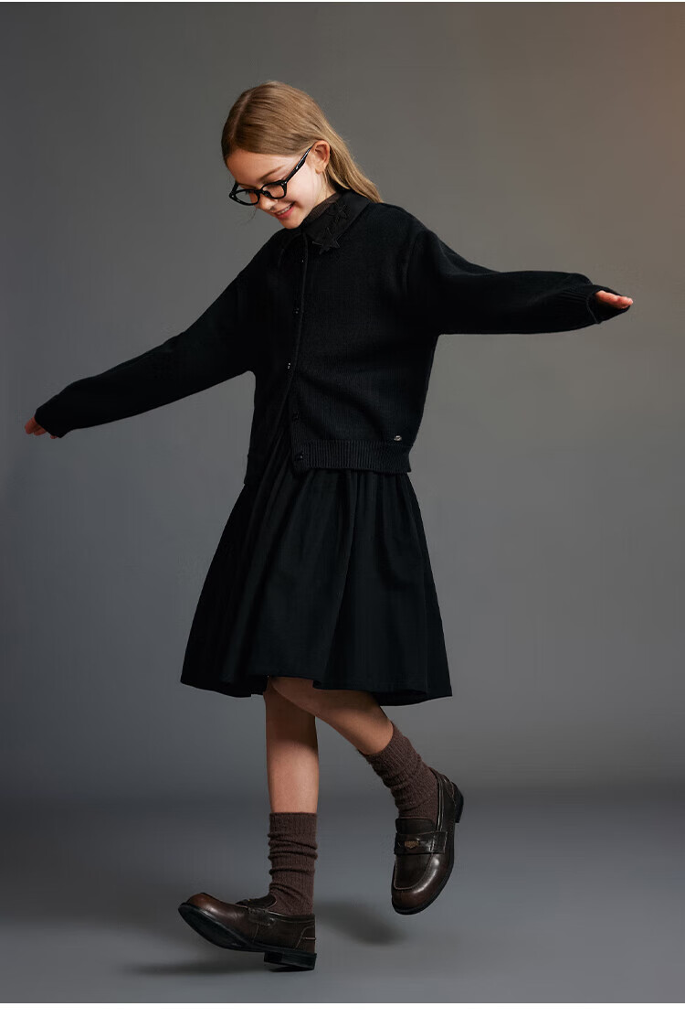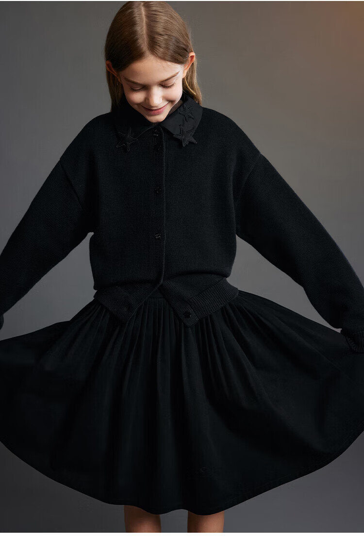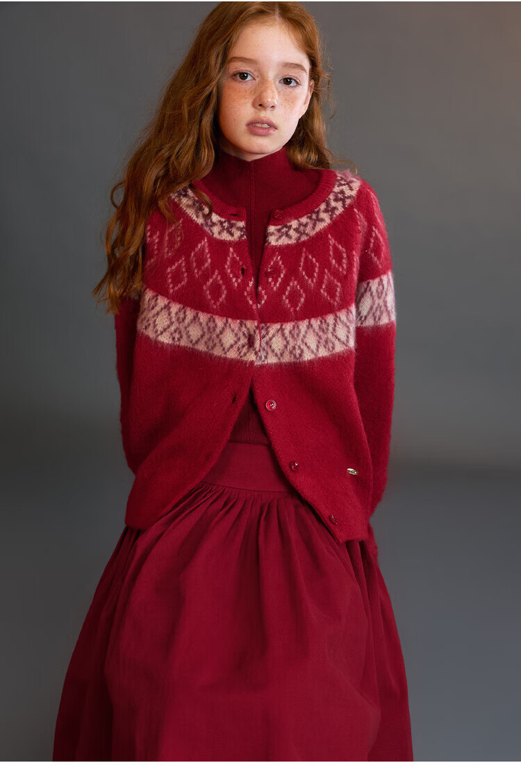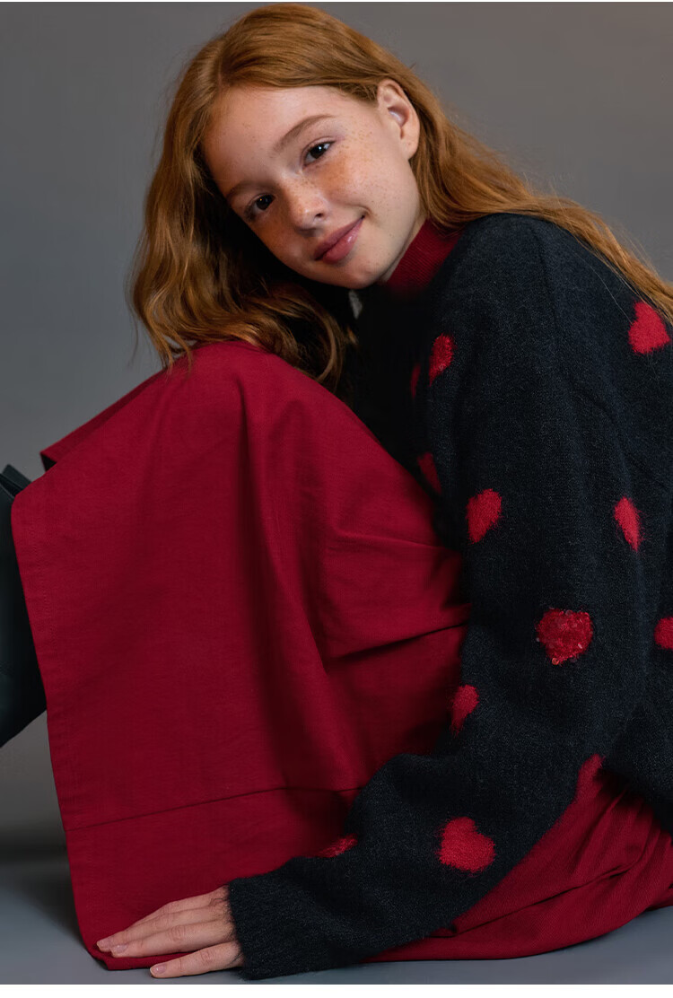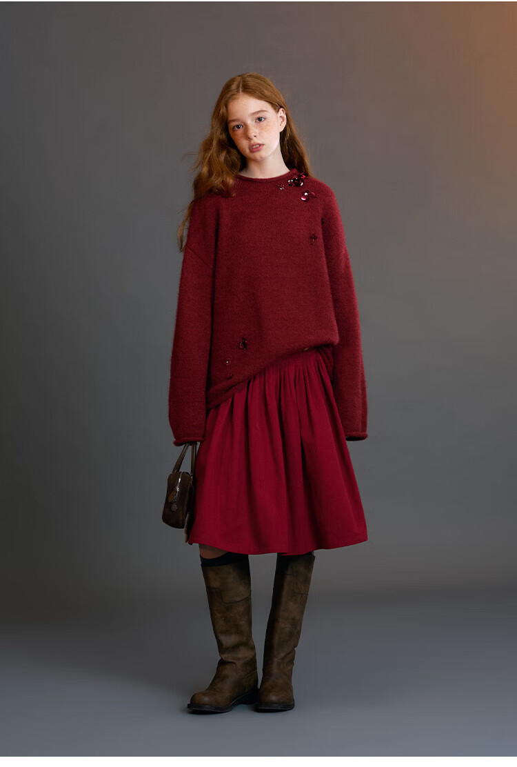 ELLE KIDS Children's Clothing Wide Waist Pleated Umbrella Skirt Girls Winter New French A-line Profile Horse Year Red Half Skirt New Year Red 165 (M)