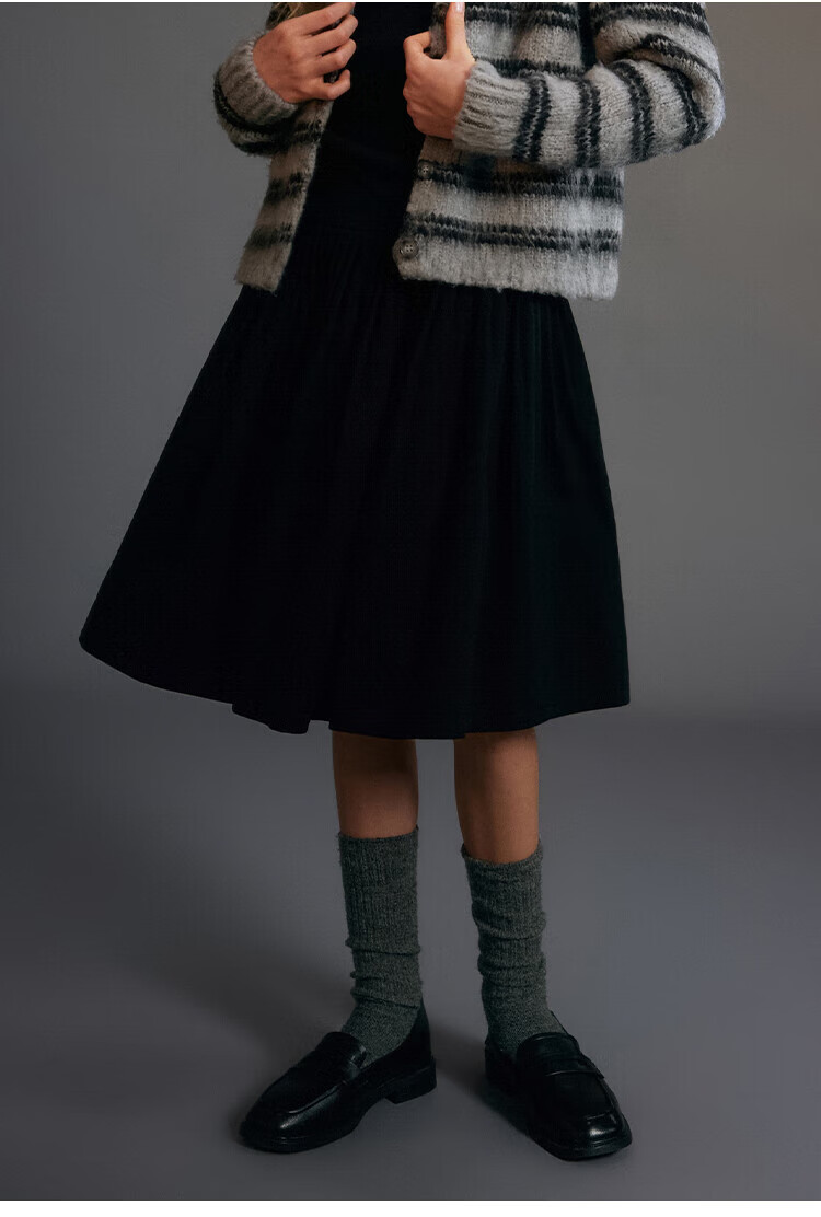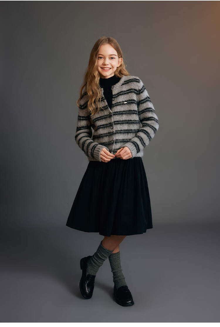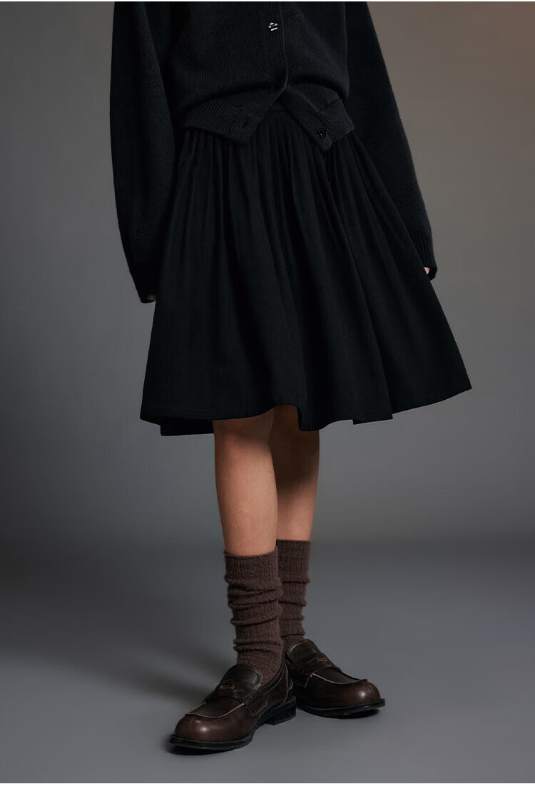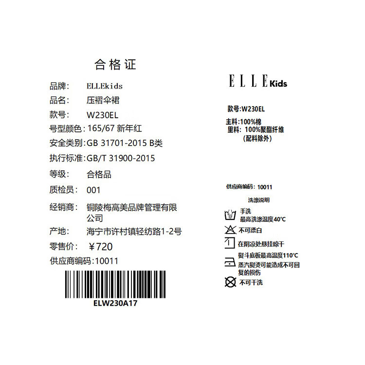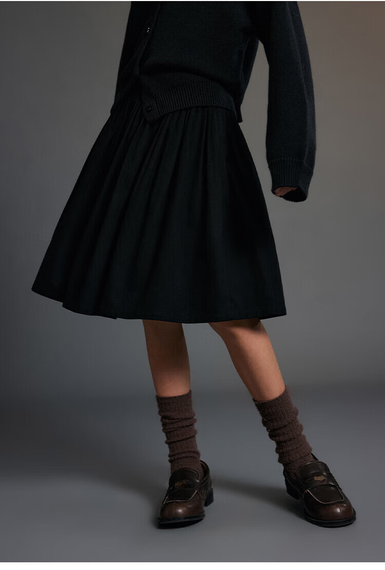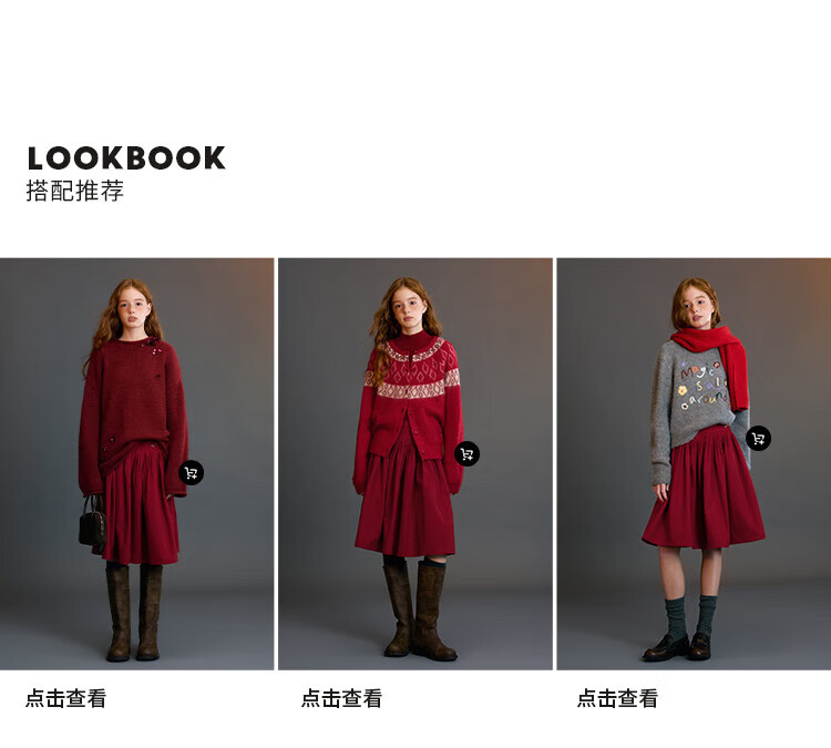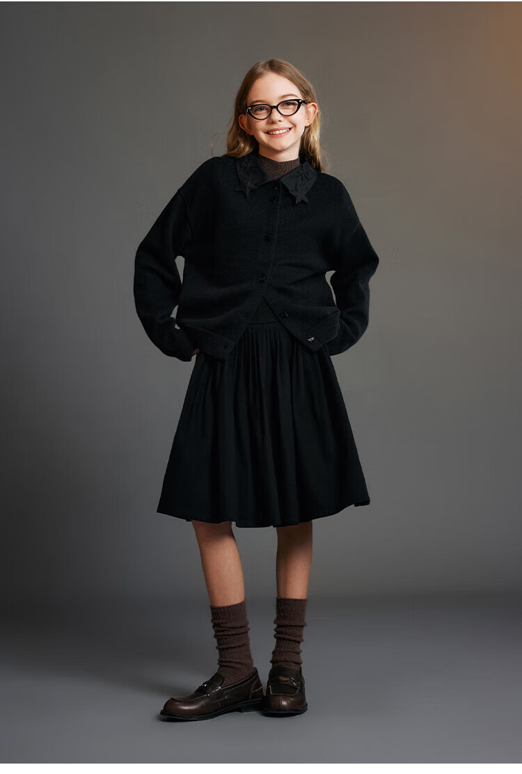 ELLE KIDS Children's Clothing Wide Waist Pleated Umbrella Skirt Girls Winter New French A-line Profile Horse Year Red Half Skirt New Year Red 165 (M)