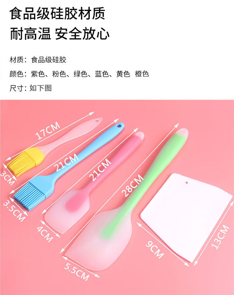Mengyier silicone spatula integrated baking cream spatula milk jujube stirring stick nougat silicone spatula large small pink scraper + oil brush