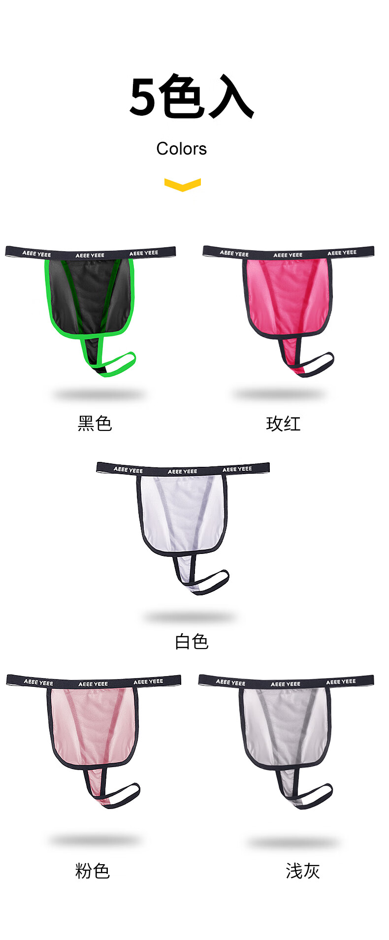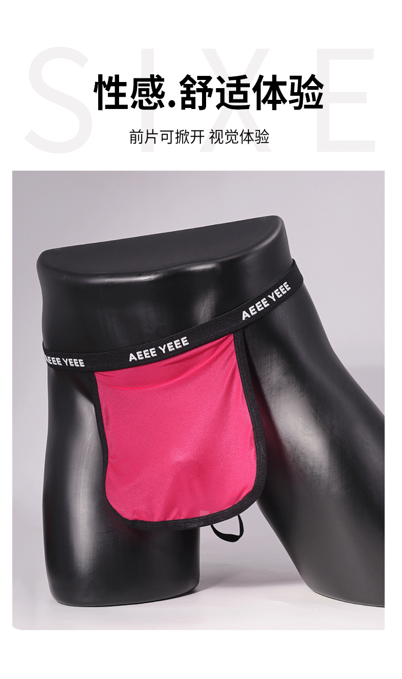 Ayi men's underwear T low-waist ice silk thong front strap can be put on JJ transparent sexy T-pants youth pants fun rose red M