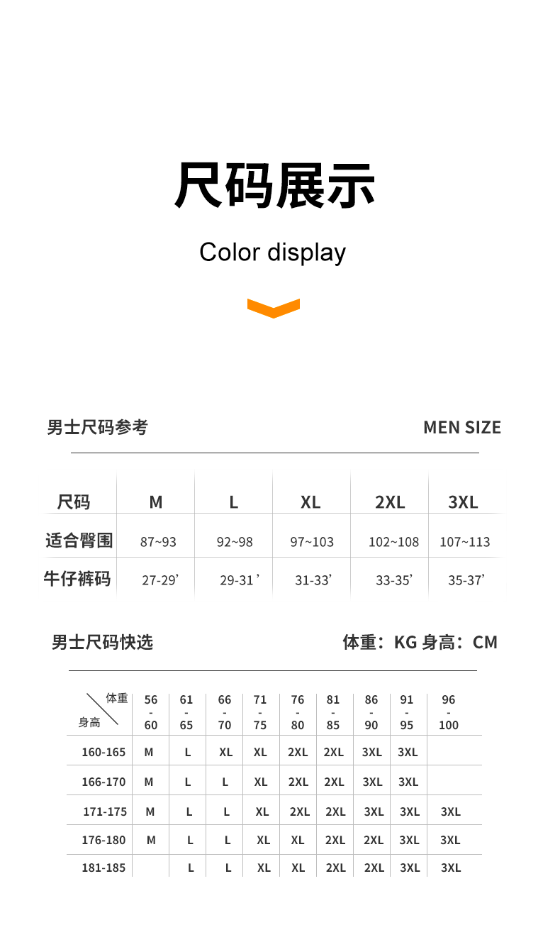 China (cm) 160-165/84-86 165-170 / 88-90 167-172 / 92-96 168-173 / 98-102 170-176 / 106-110