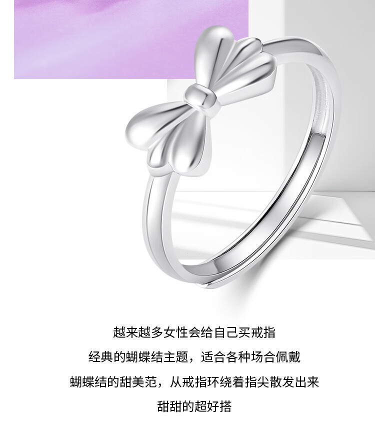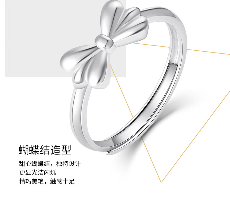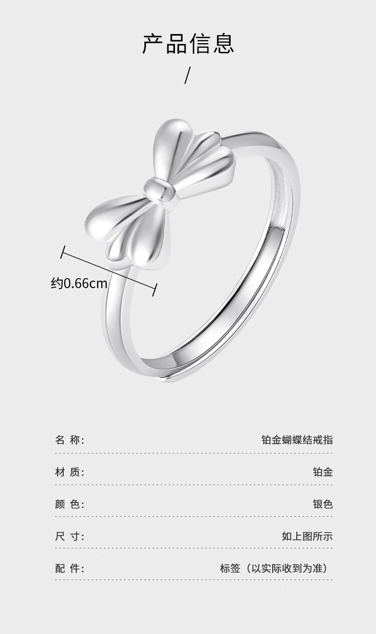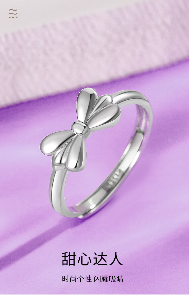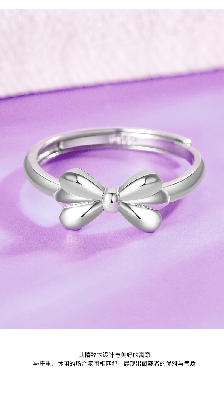 Wanfulong platinum 950 fugitive princess bow ring for women, niche design, light luxury and high-end hot style for girlfriend, platinum 950 bow ring opening 4.12g