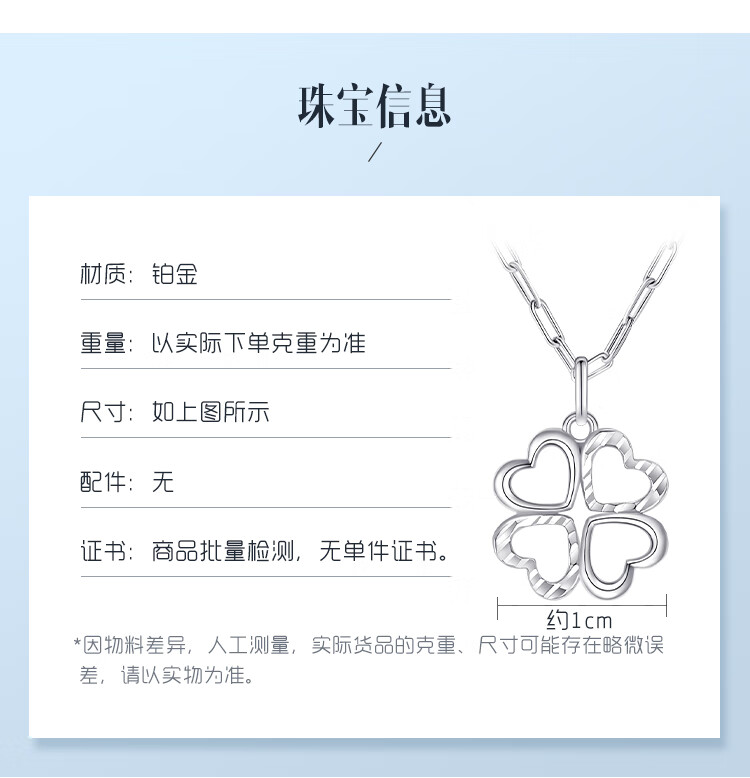 Wanfulong PT950 platinum platinum necklace, clavicle chain, women's love four-leaf clover, birthday gift for girlfriend, PT950 platinum, about 48cm long, 3.64g in weight