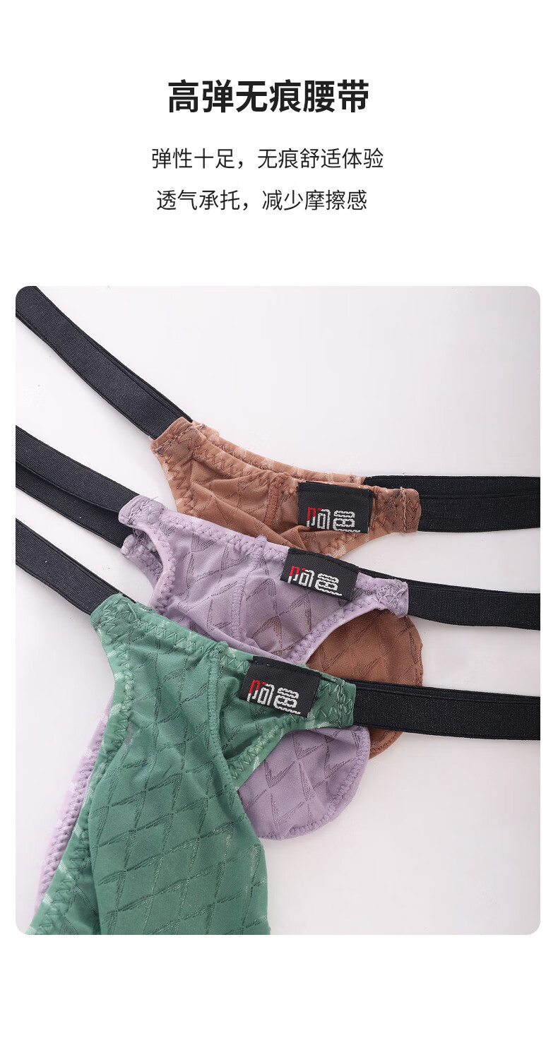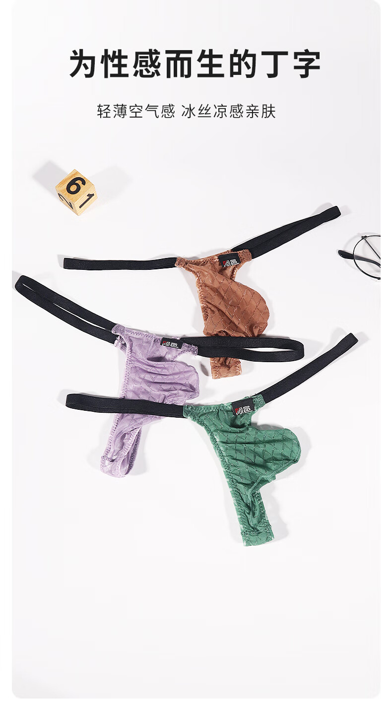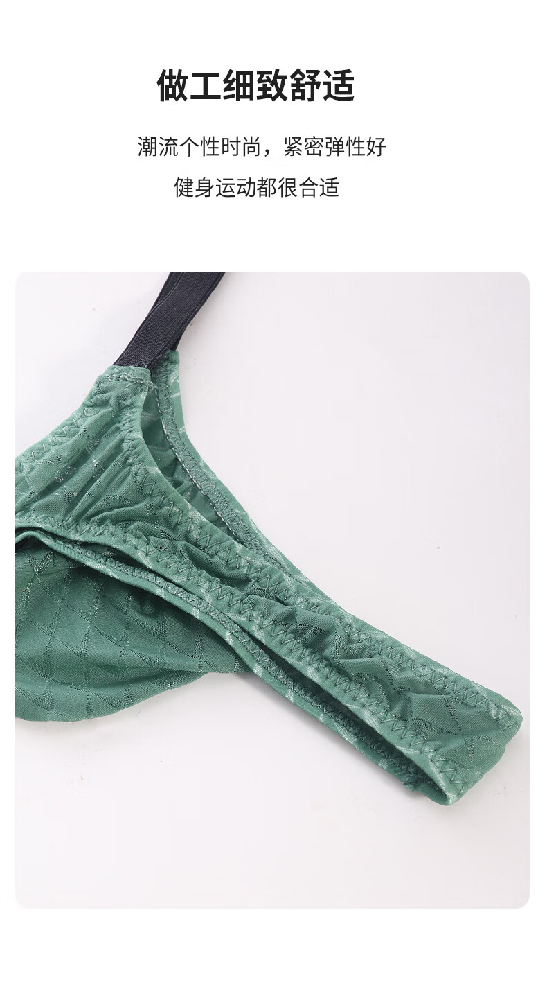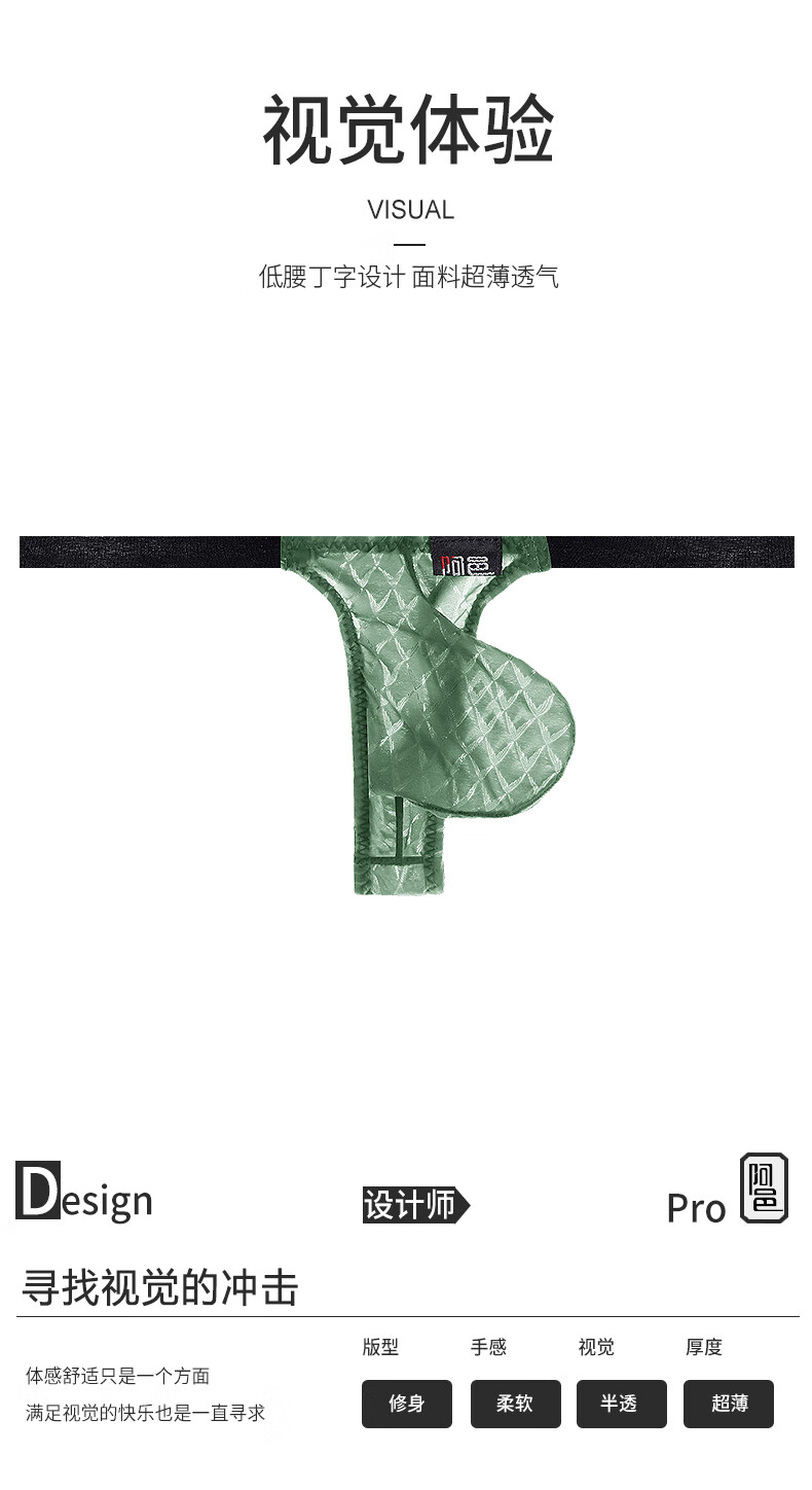 Ayi men's thong ultra-thin ice silk low-waist sexy transparent T-pants youth sports and fitness seamless drying bean green M