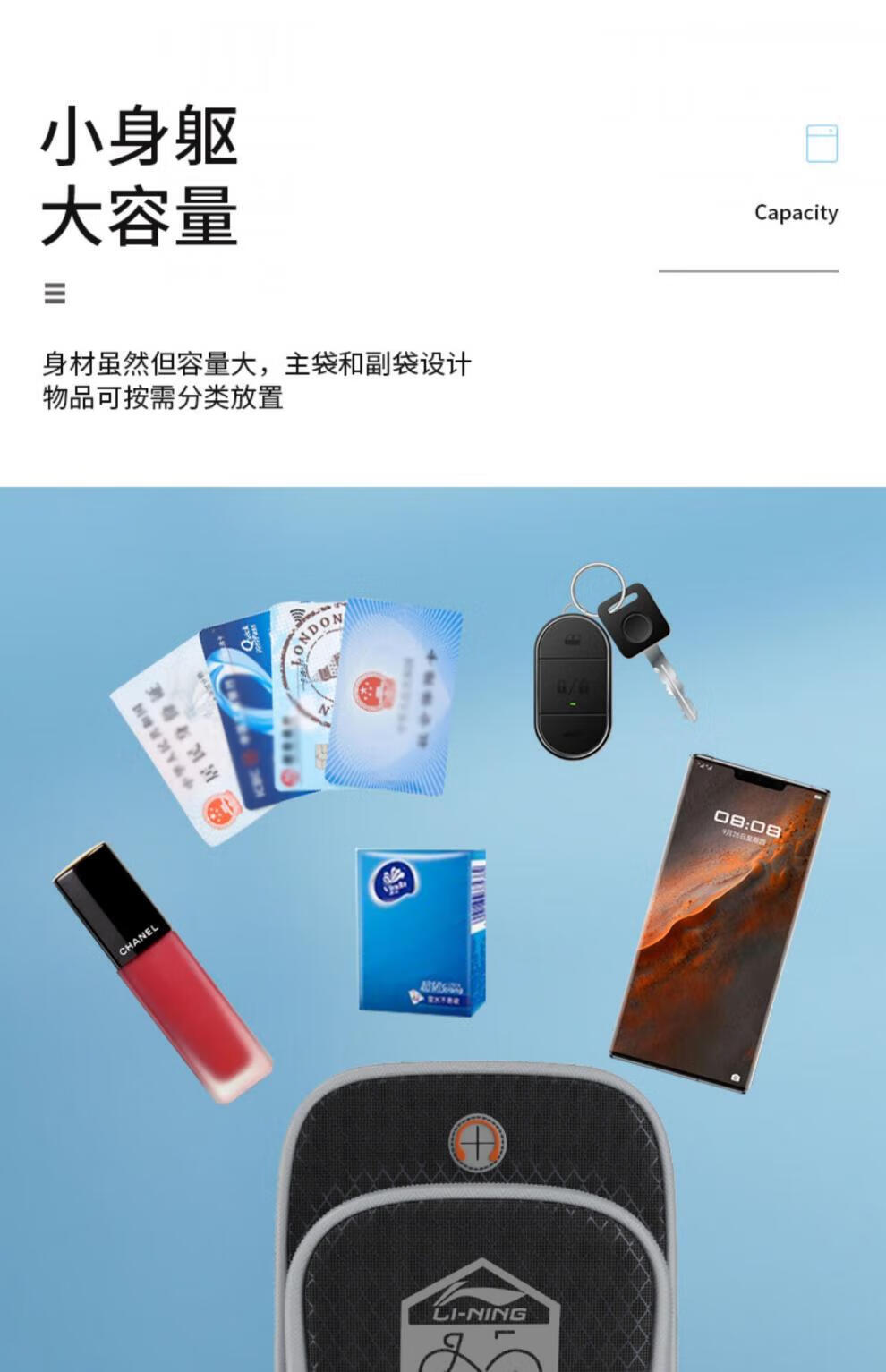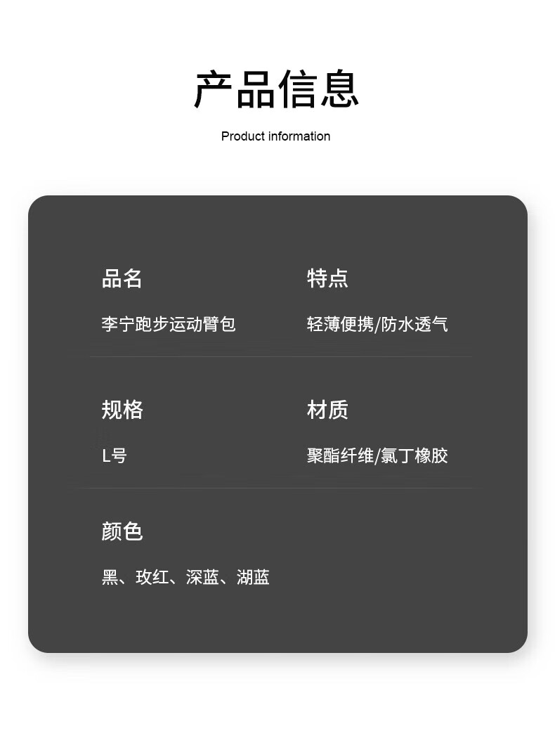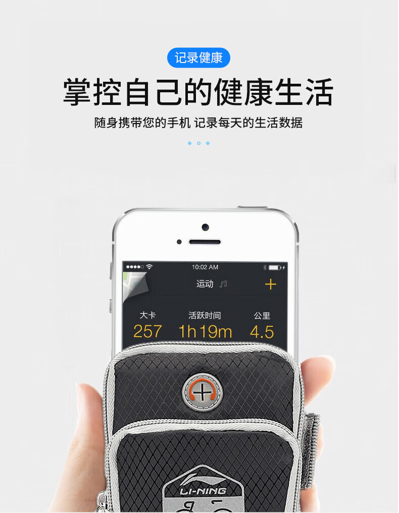 LI NING Li Ning arm bag mobile phone bag outdoor sports wrist bag breathable and comfortable unisex running arm bag mobile phone bag thin and breathable running arm bag black 308