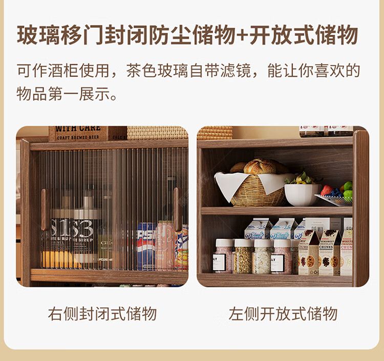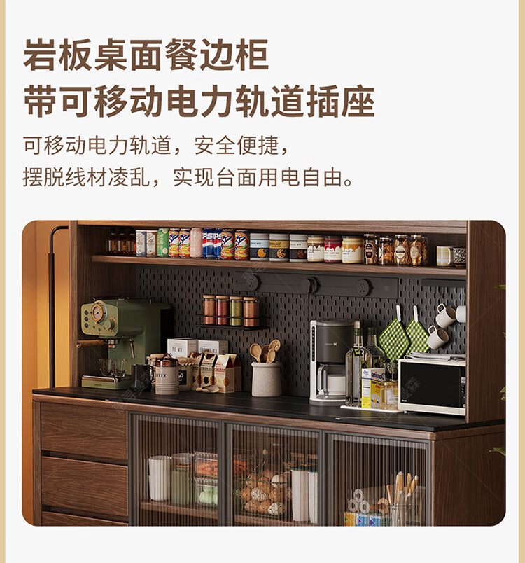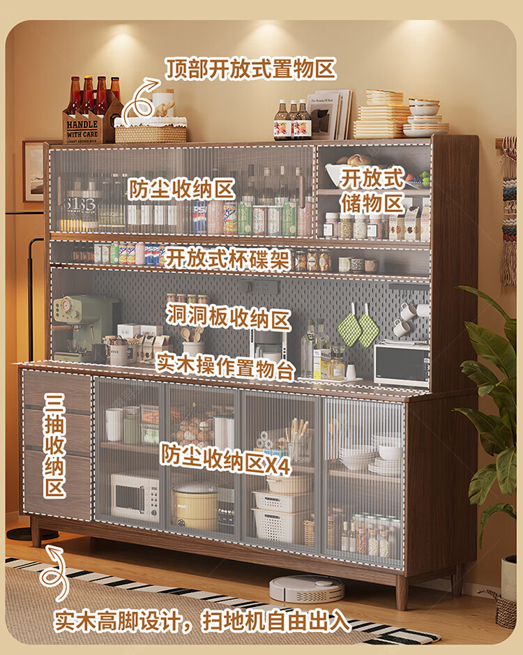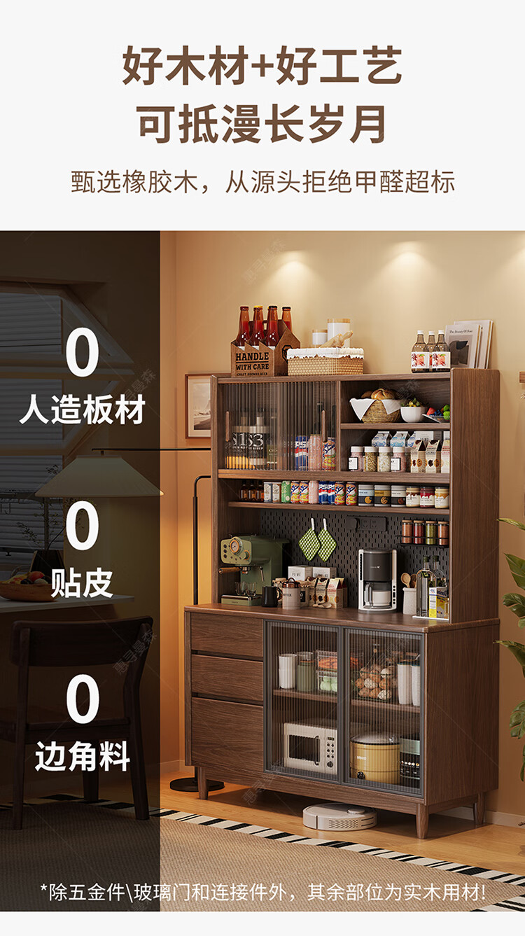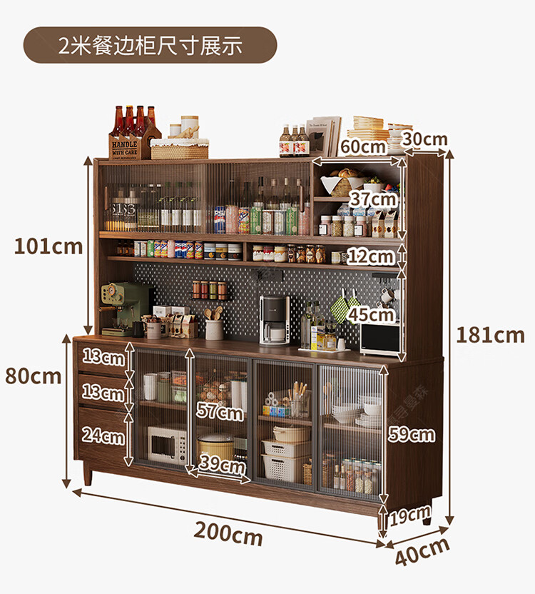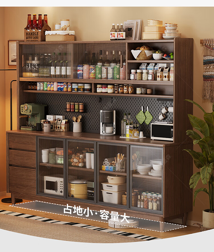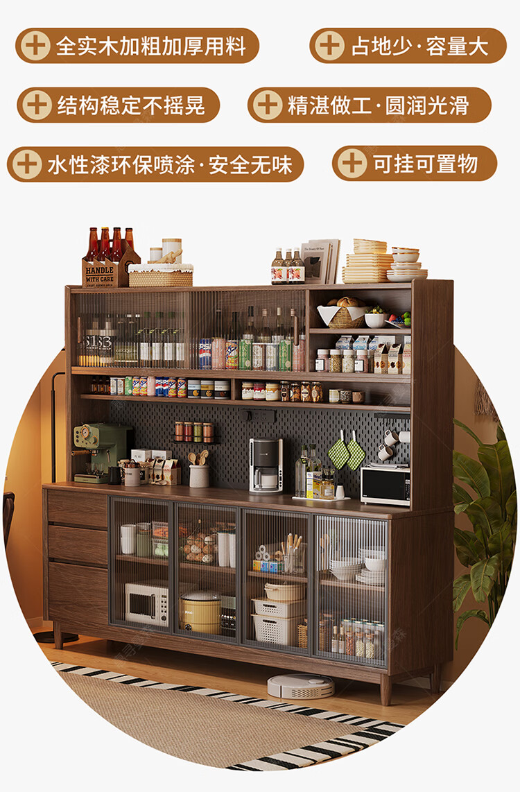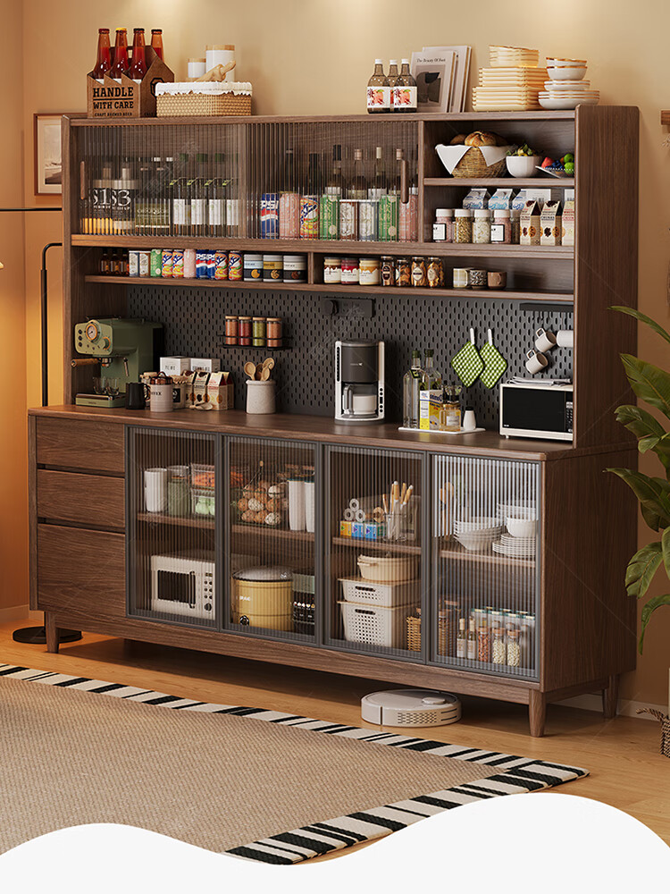 Huixun aparador de madera maciza gabinete de almacenamiento de cocina sala de estar gabinete de té multifuncional de gran capacidad gabinete de almacenamiento integrado gabinete de vino color nogal negro #toda madera maciza sin chapa/con enchufe integrado 200*40*181