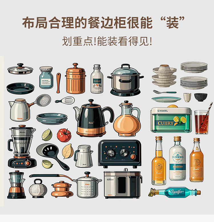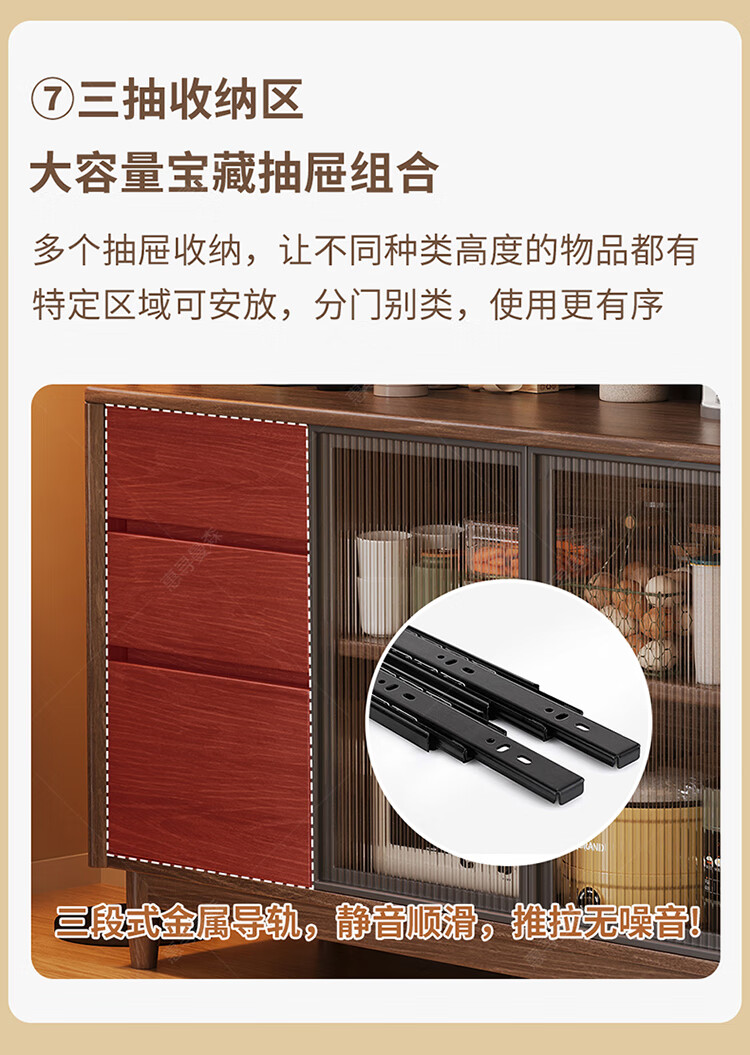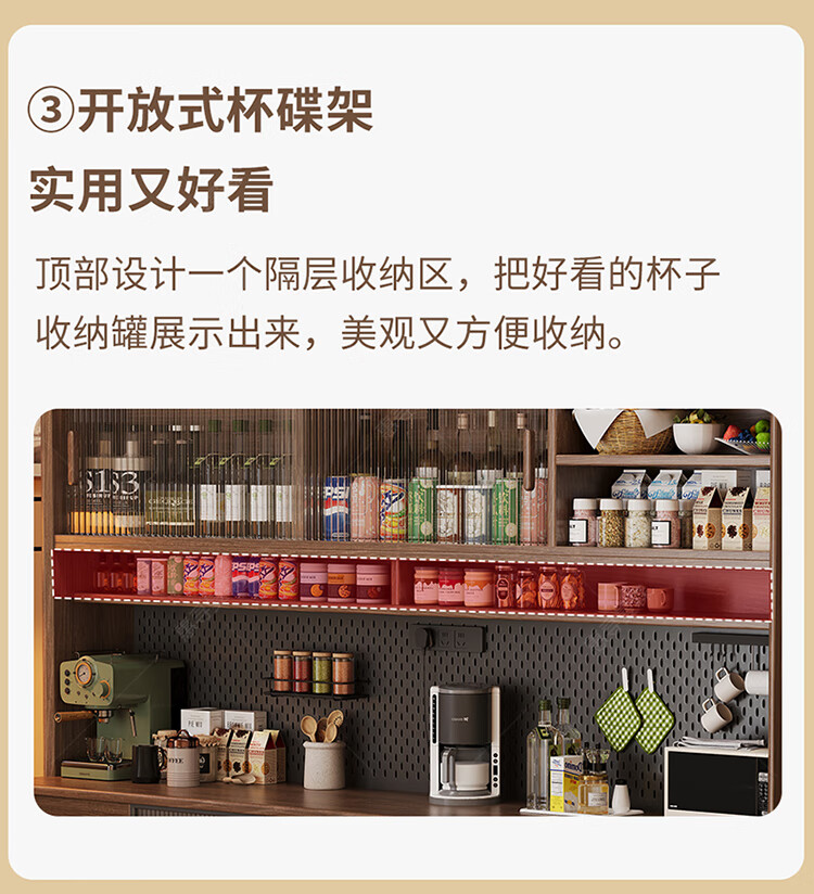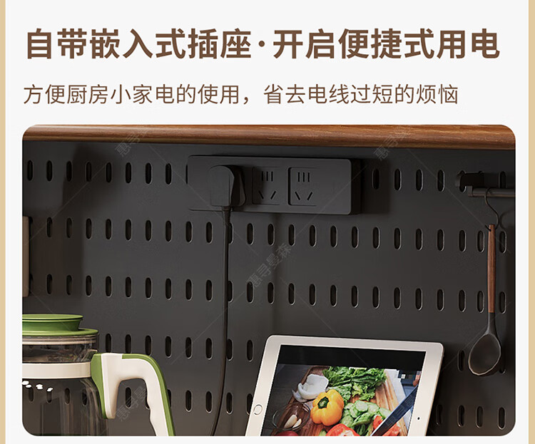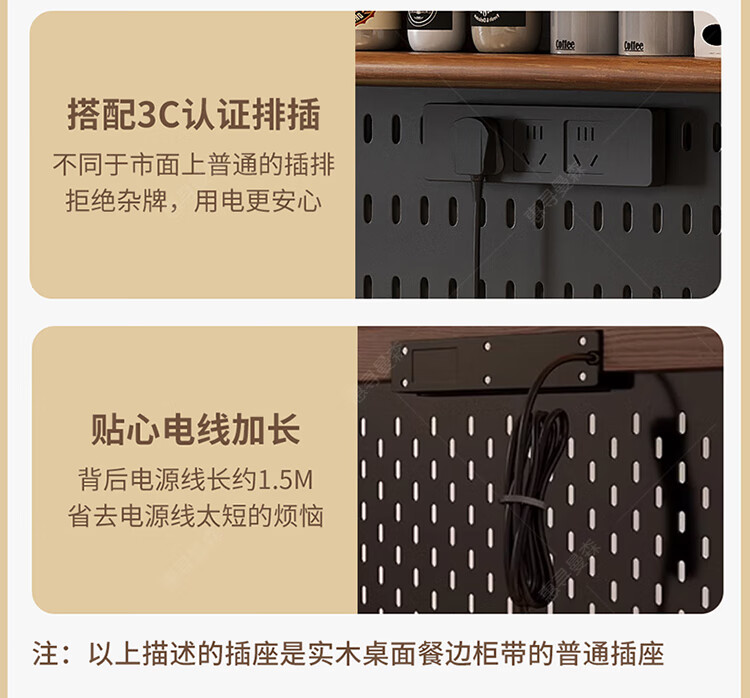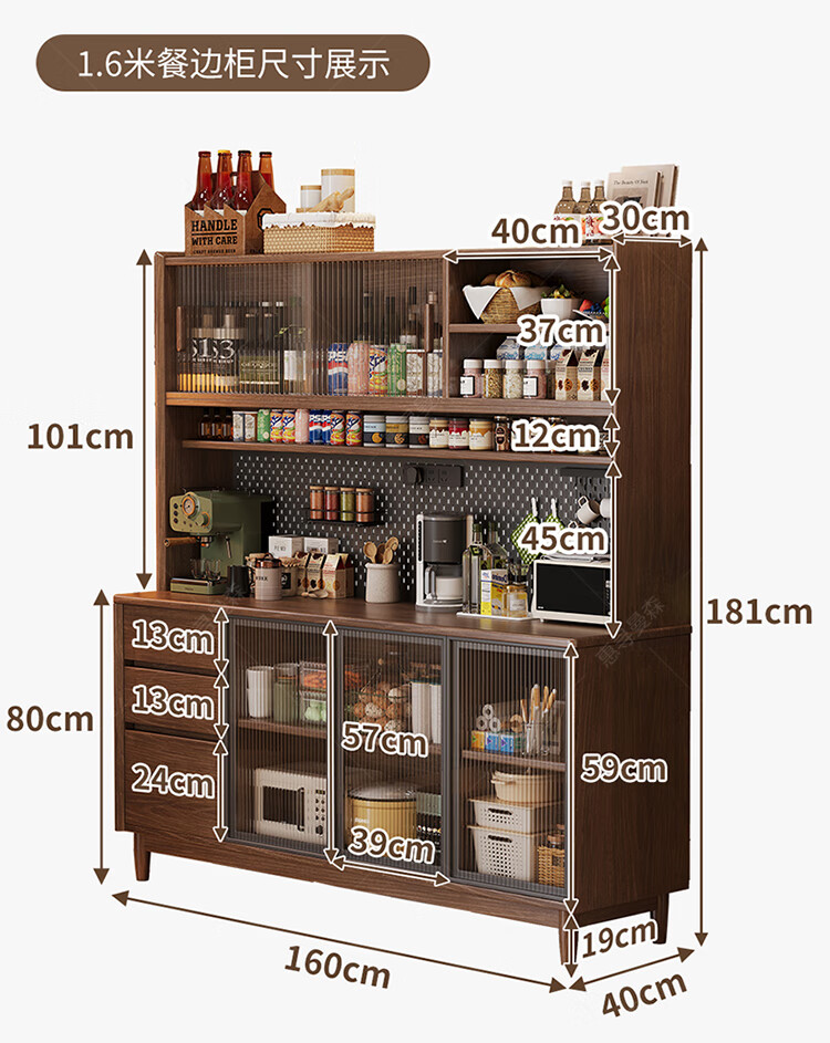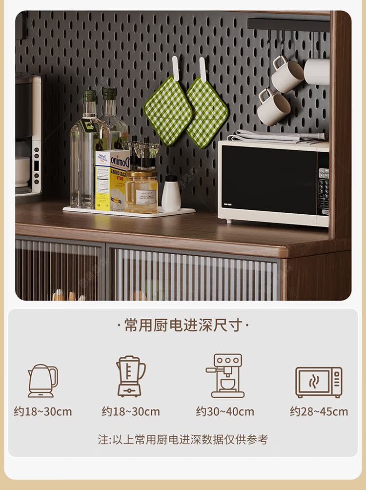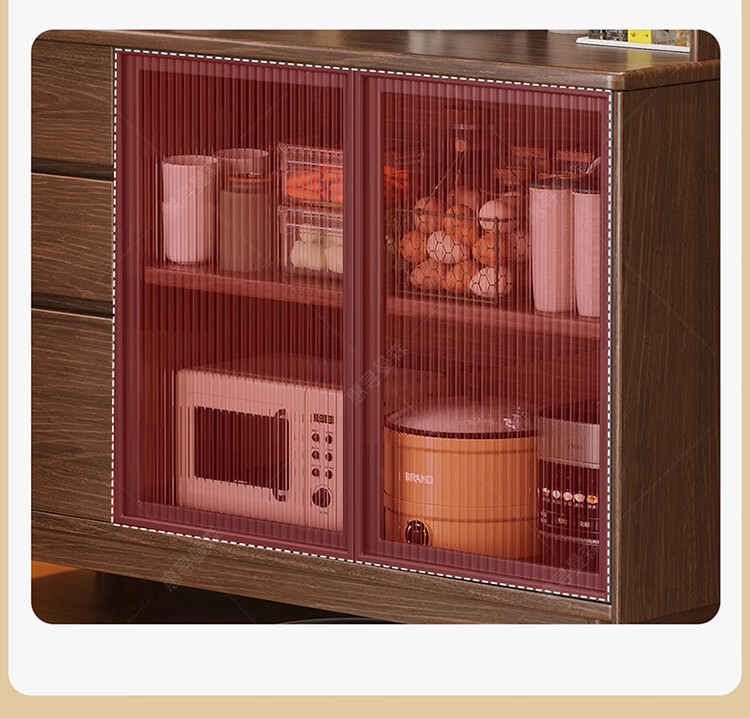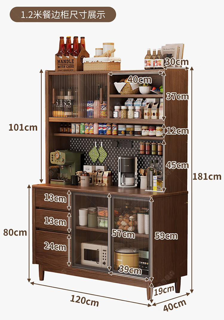 Huixun aparador de madera maciza gabinete de almacenamiento de cocina sala de estar gabinete de té multifuncional de gran capacidad gabinete de almacenamiento integrado gabinete de vino color nogal negro #toda madera maciza sin chapa/con enchufe integrado 200*40*181