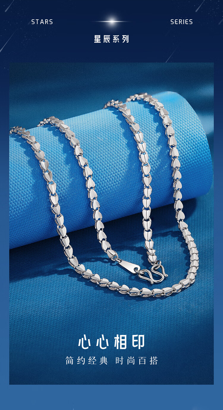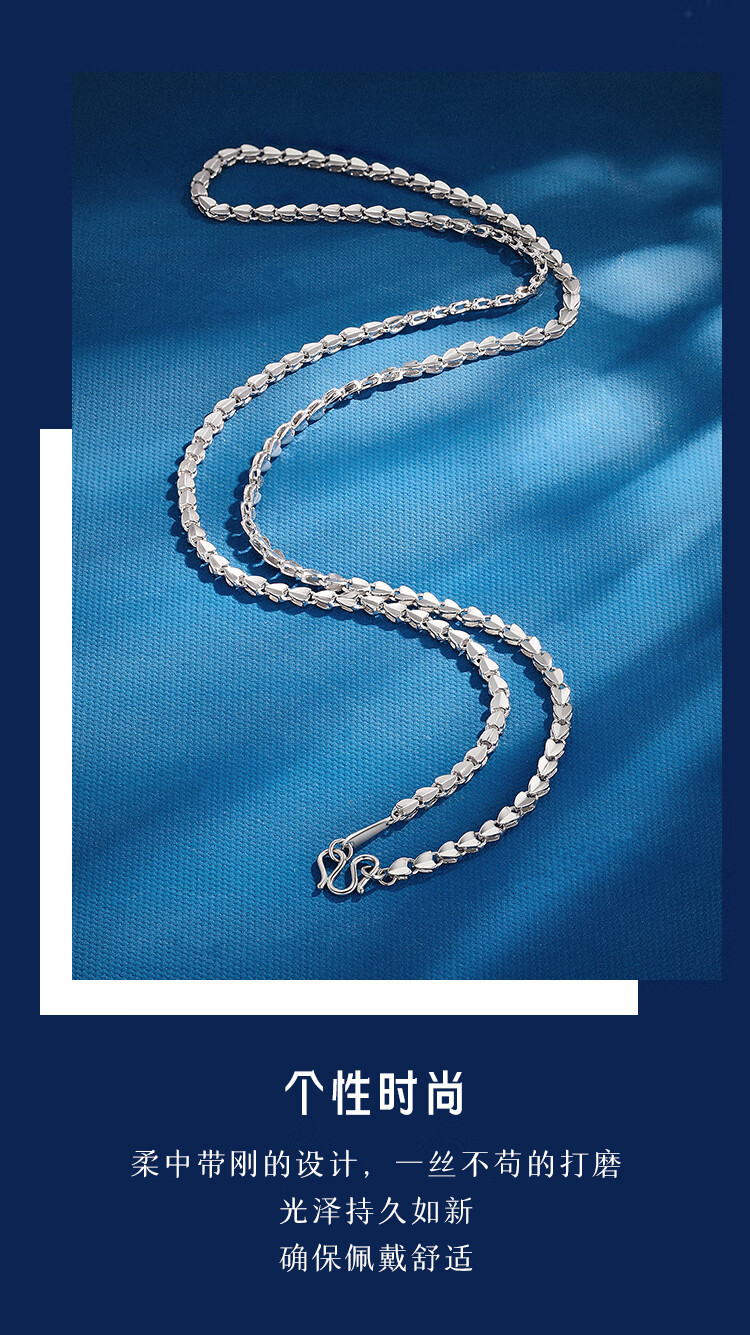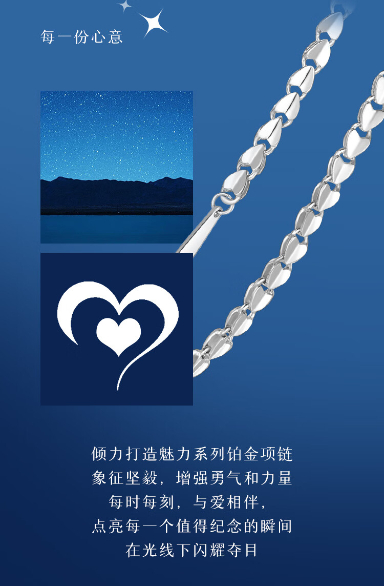 Wanfulong Shining Love Genuine PT950 Small Love Necklace for Commuting, Versatile, Fashionable and Simple Collarbone Necklace for Women 46cm, PT950 Small Love Necklace for Women 12.85g