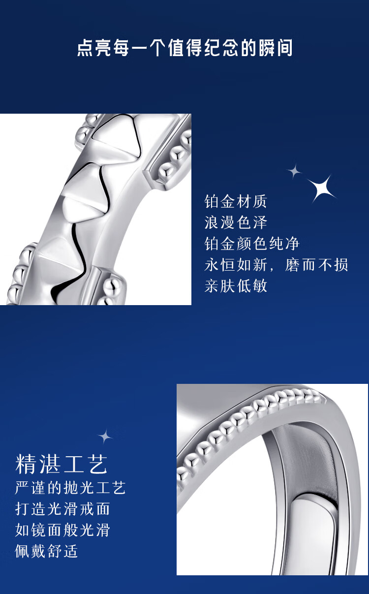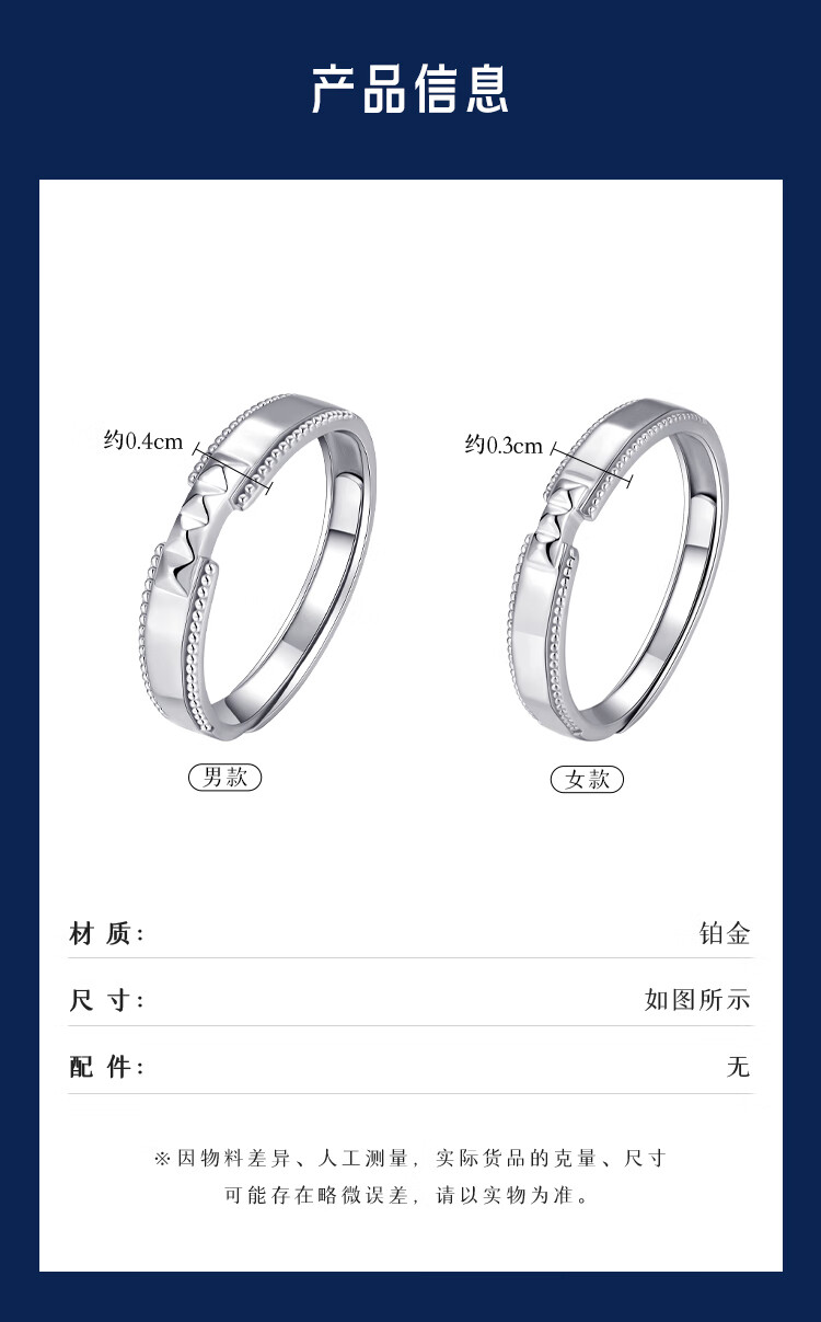 Wanfulong Platinum PT950 Ring Platinum Couple Style Pair Ring Live Mouth Adjustable Gift for Girlfriend’s Birthday Can Be Customized One Thing One Certificate Supports Appraisal You will be compensated 10% for a fake one