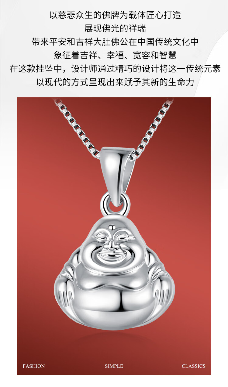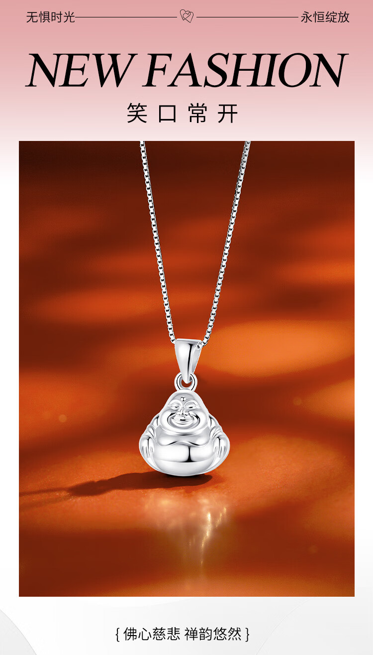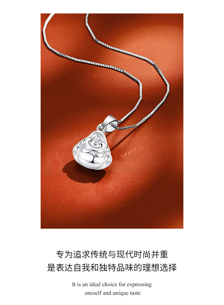 WAN FU LONG (WAN FU LONG) PT950 Platinum Classic Big Belly Buddha Pendant Necklace is a simple, elegant and luxurious gift for your girlfriend. PT950 Platinum Big Belly Buddha Pendant comes with s925 silver chain 1.54g.
