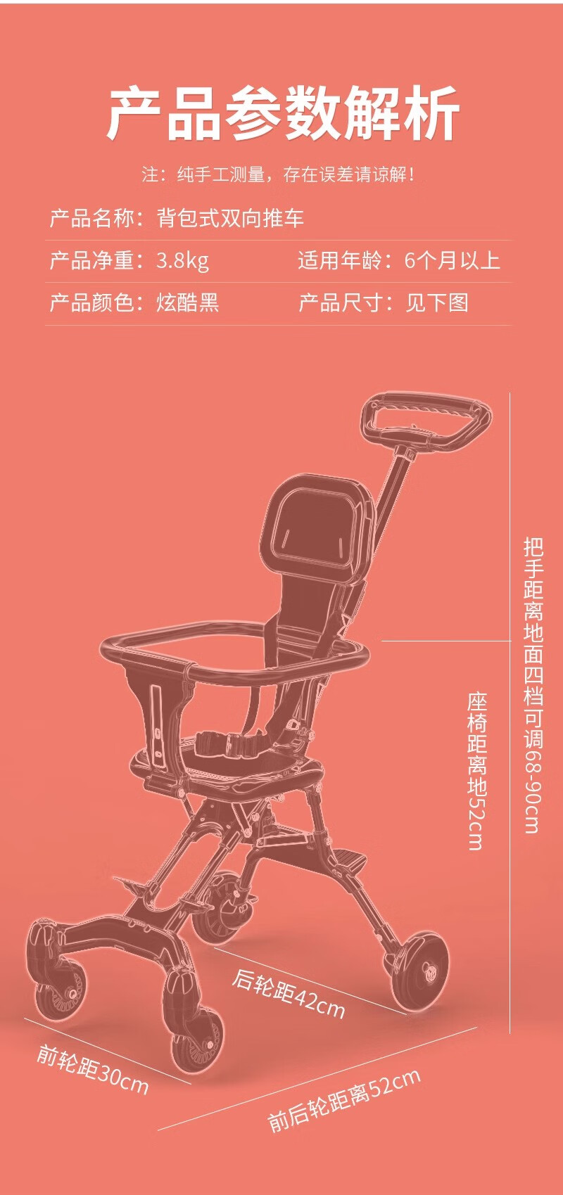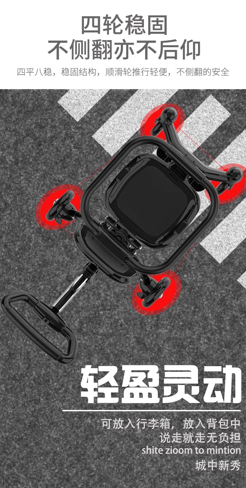 German lightweight children's stroller 3-year-old walking artifact can be boarded with universal wheels and foldable black naked car