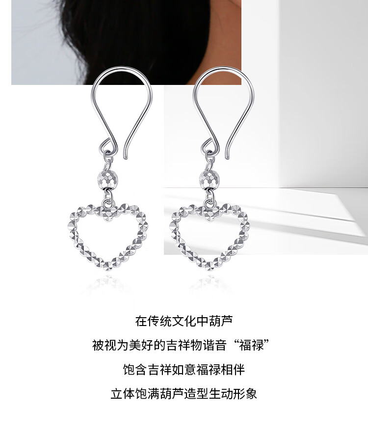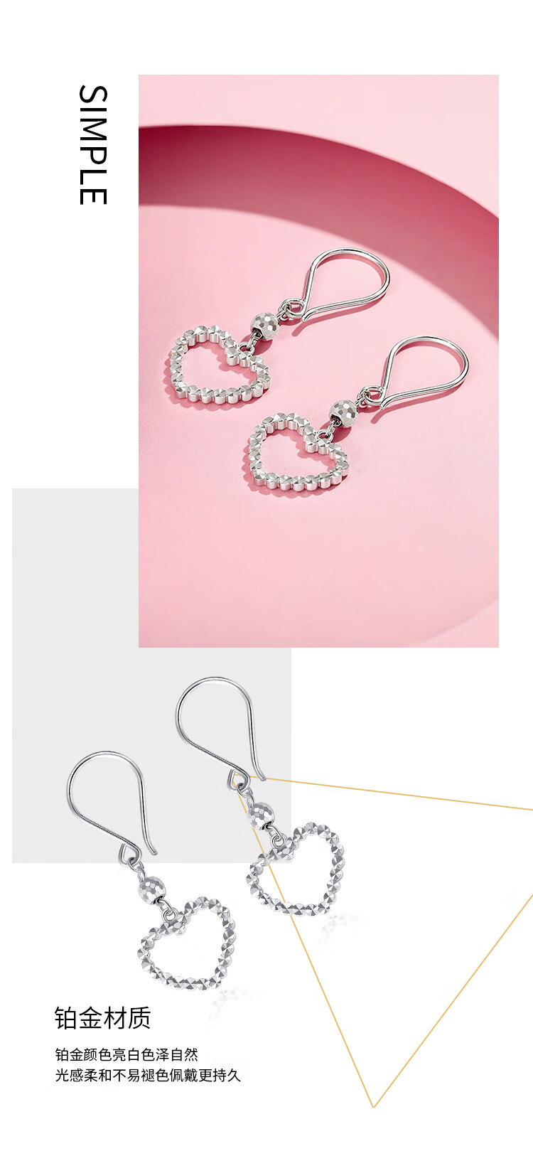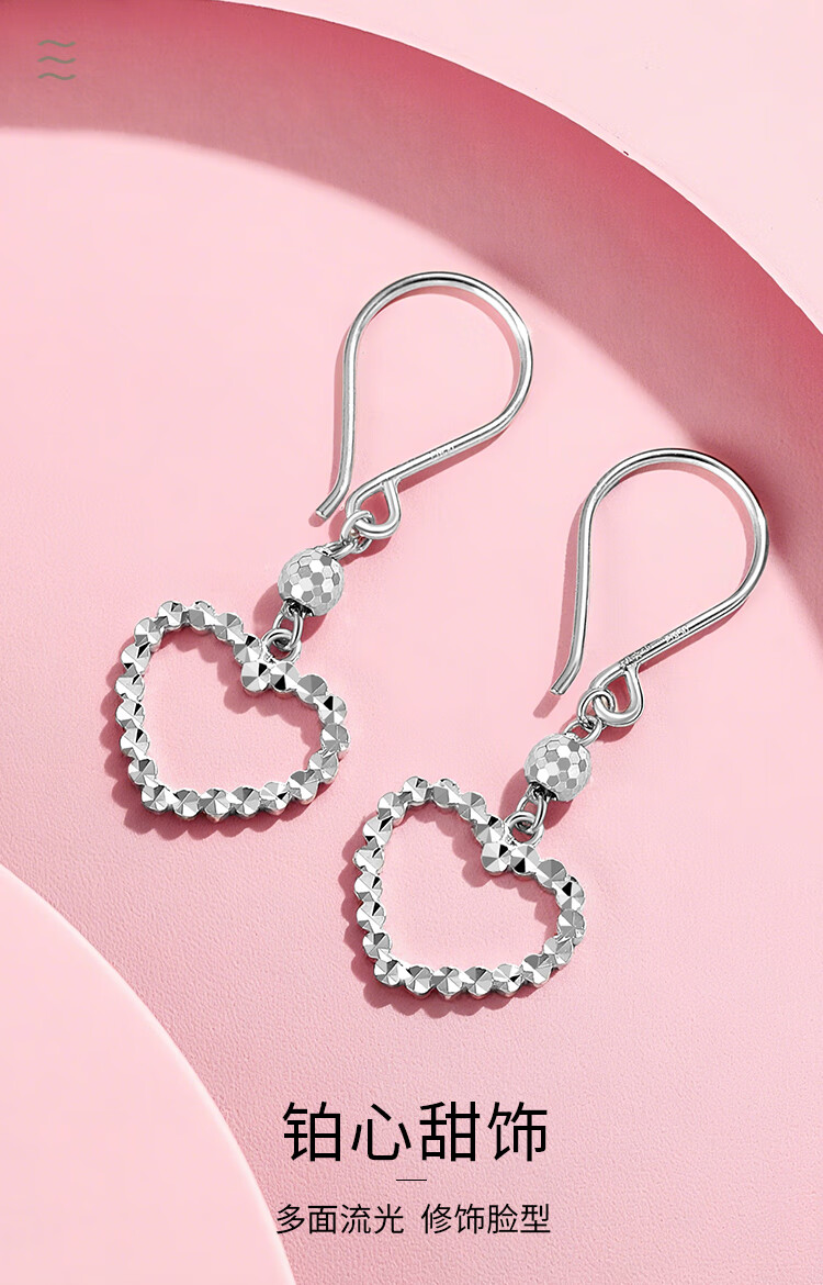 Wanfulong genuine 950 platinum shining love earrings fashion boutique platinum earrings earrings 2025 new platinum 950 shining love earrings fashion 2.42g