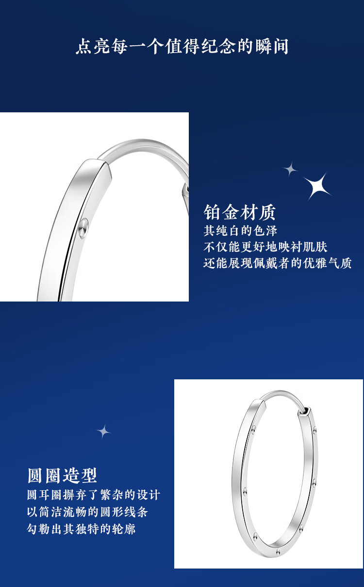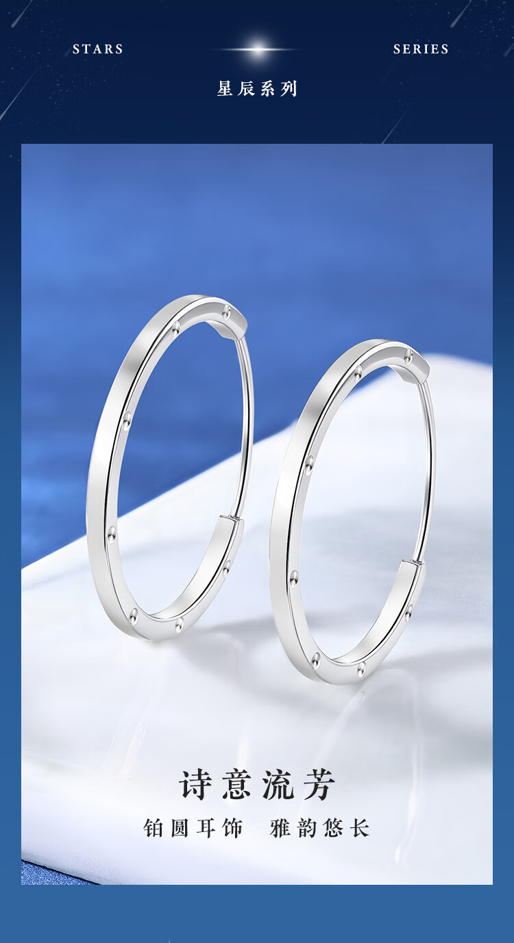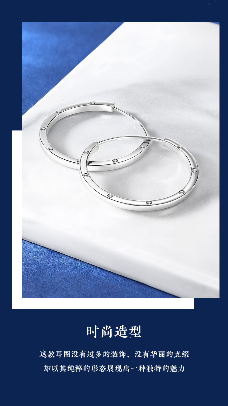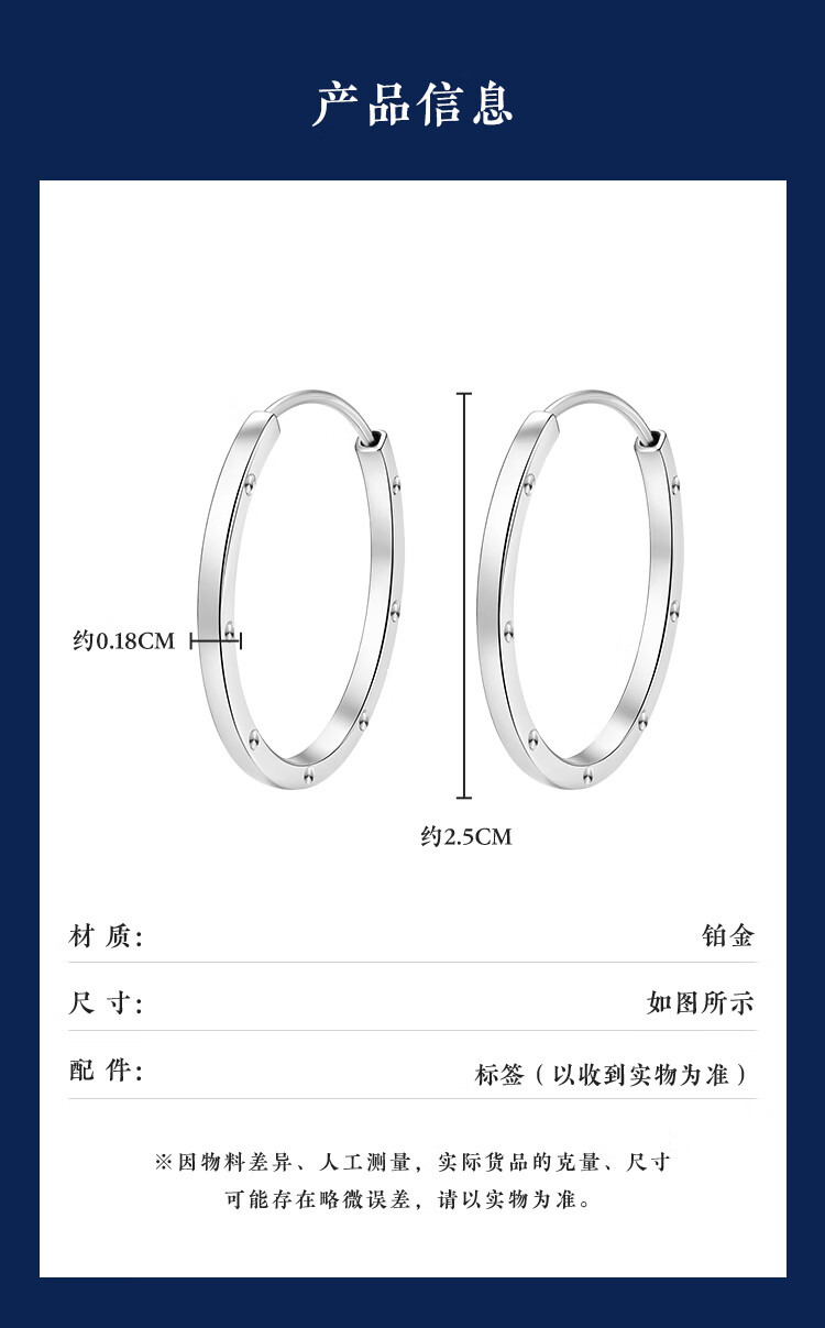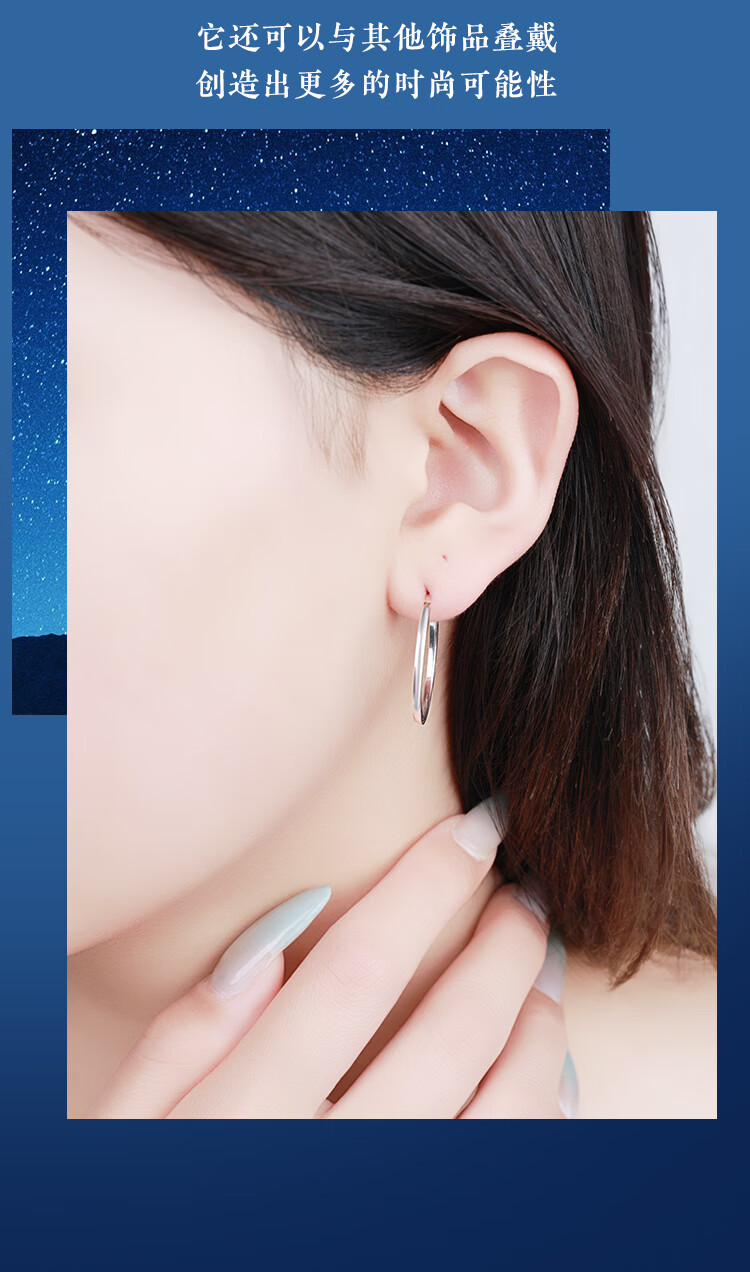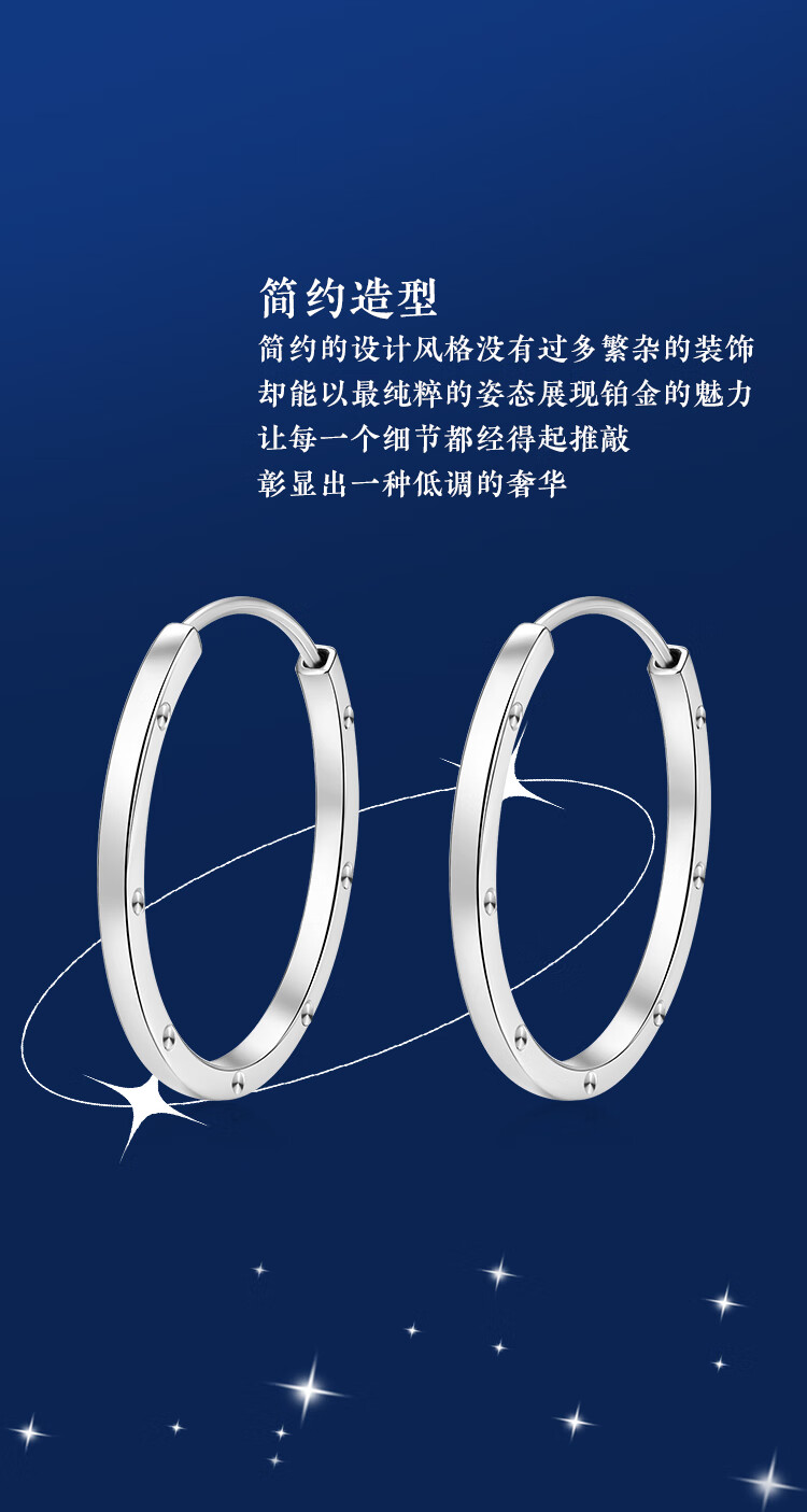 Wanfulong 2025 new PT950 platinum earrings, feminine and high-end earrings, gift for girlfriend, platinum plain hoop earrings 4.6g
