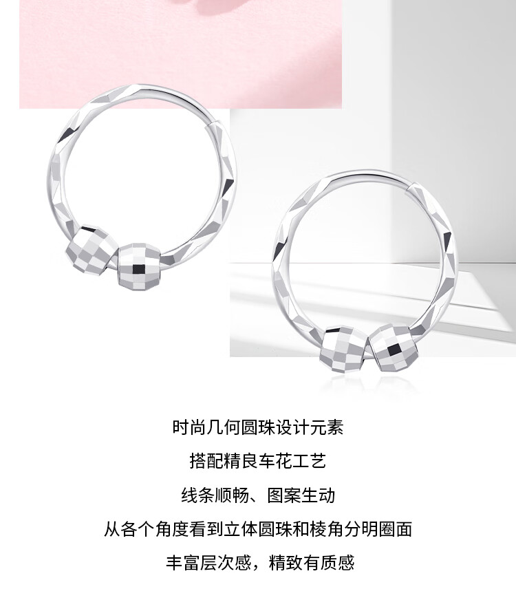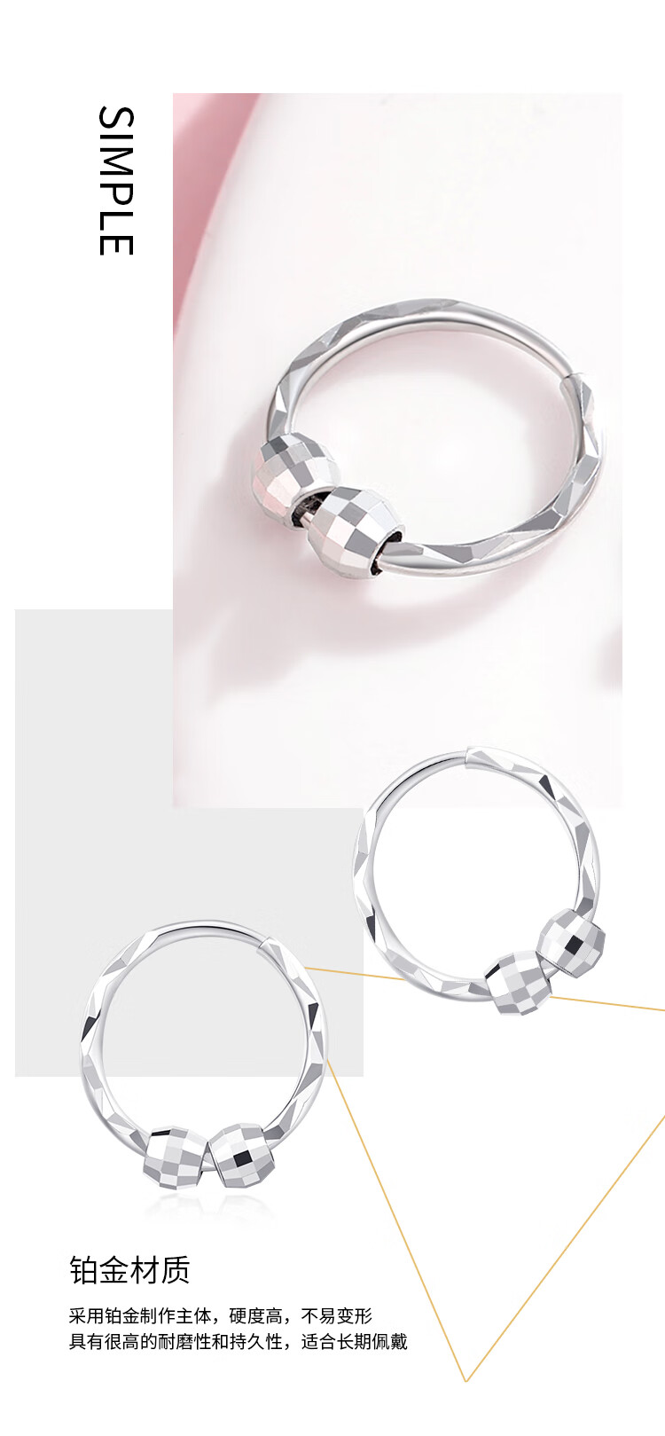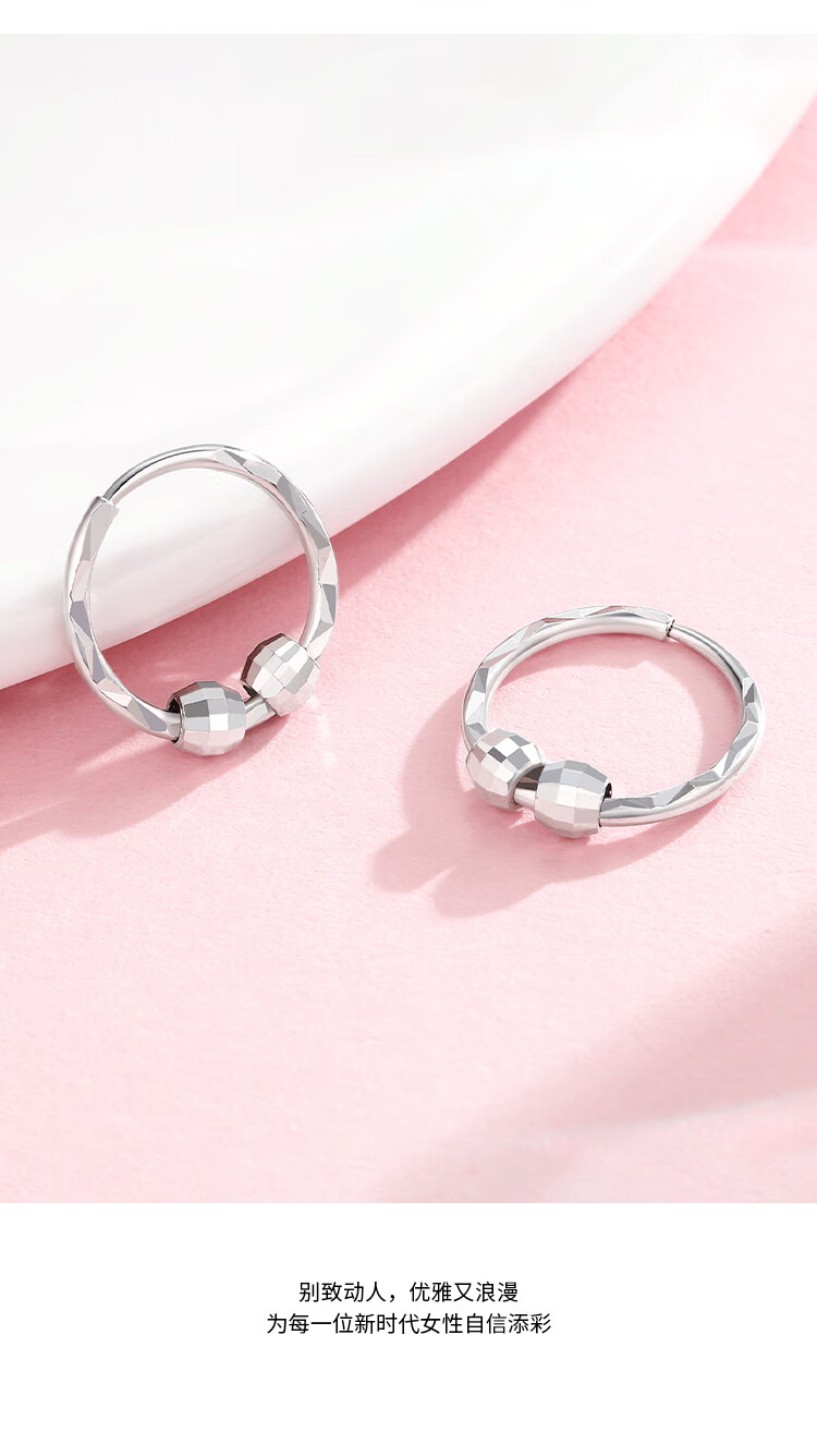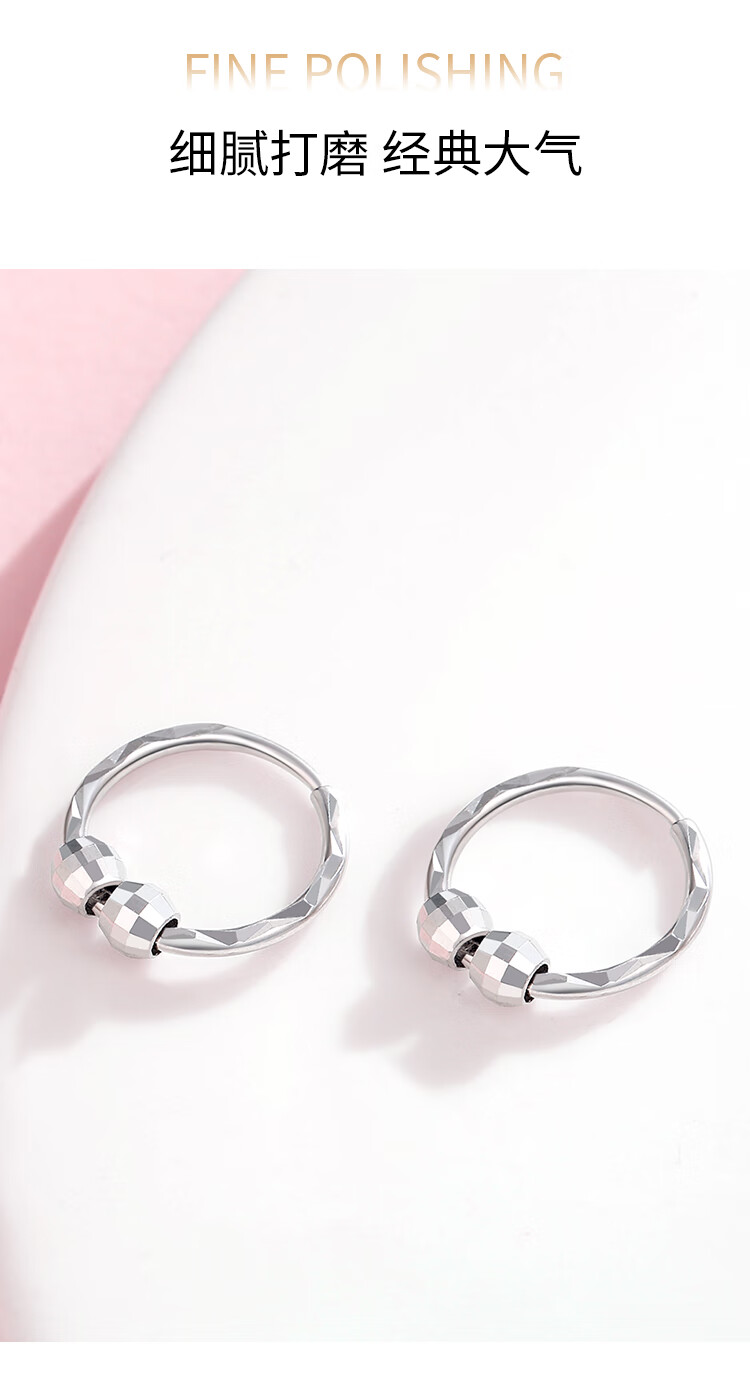 Wanfulong platinum pt950 car flower circle bead earrings platinum ring ornaments for ear piercing new birthday gift for girlfriend Platinum 950 car flower circle bead earrings 1.41g