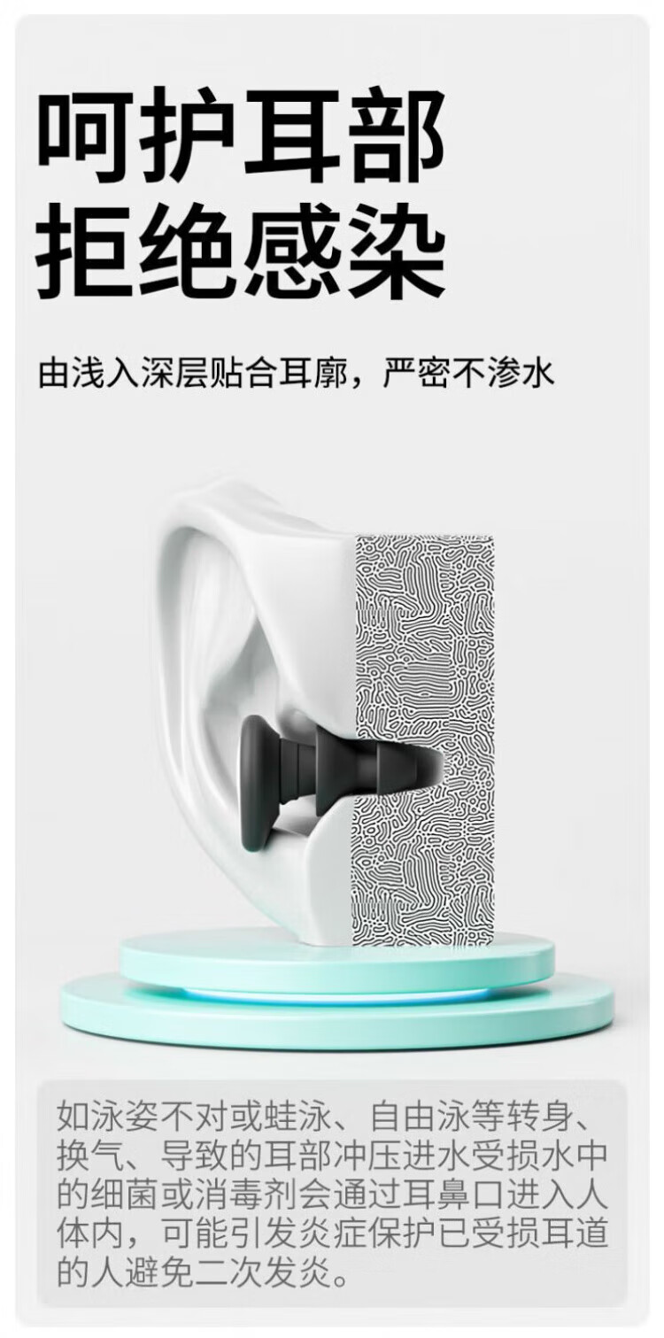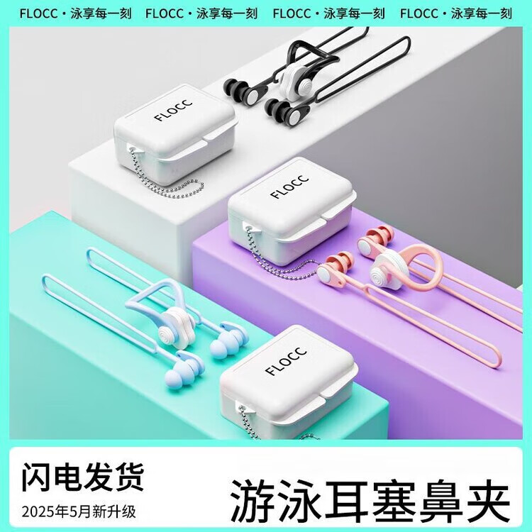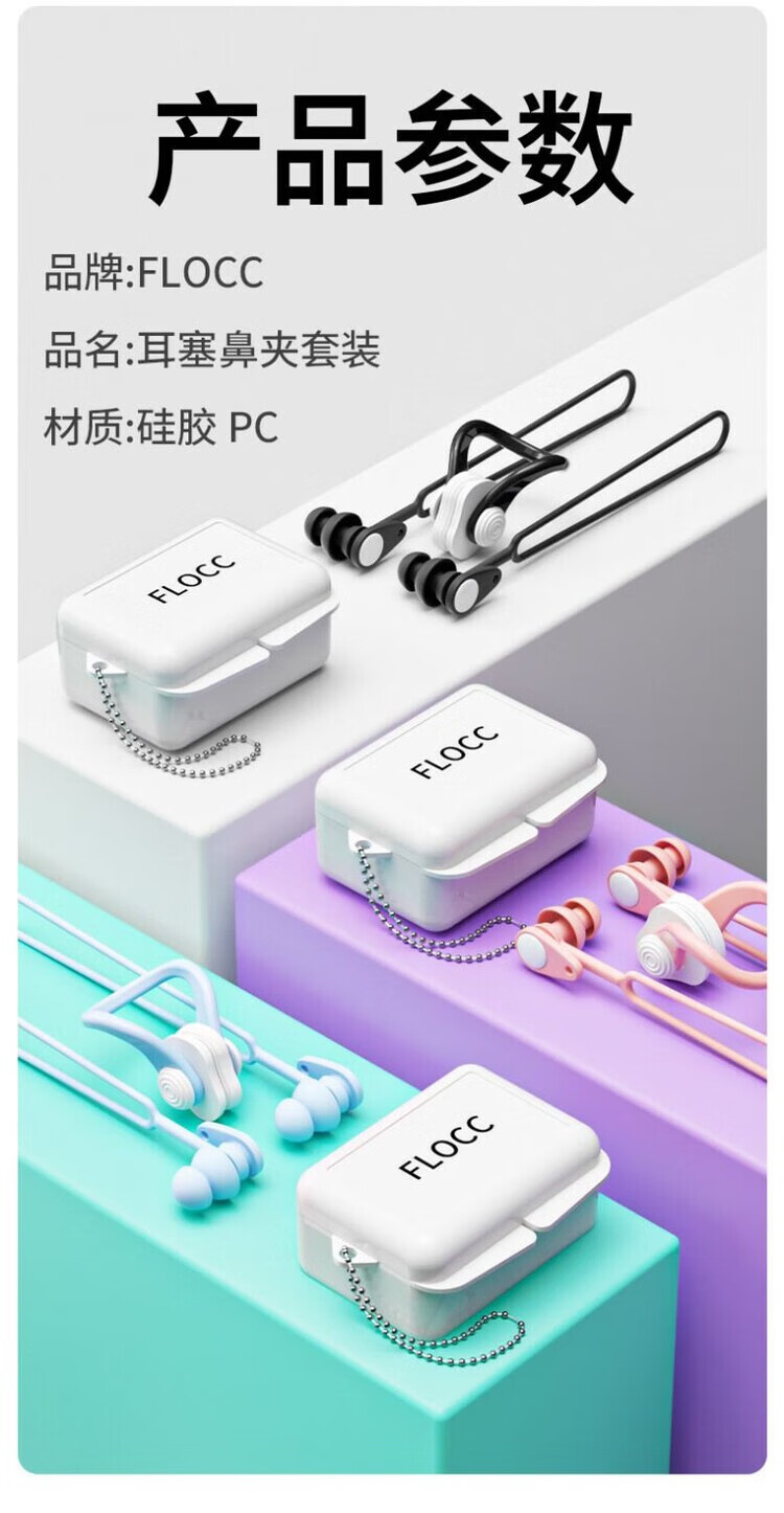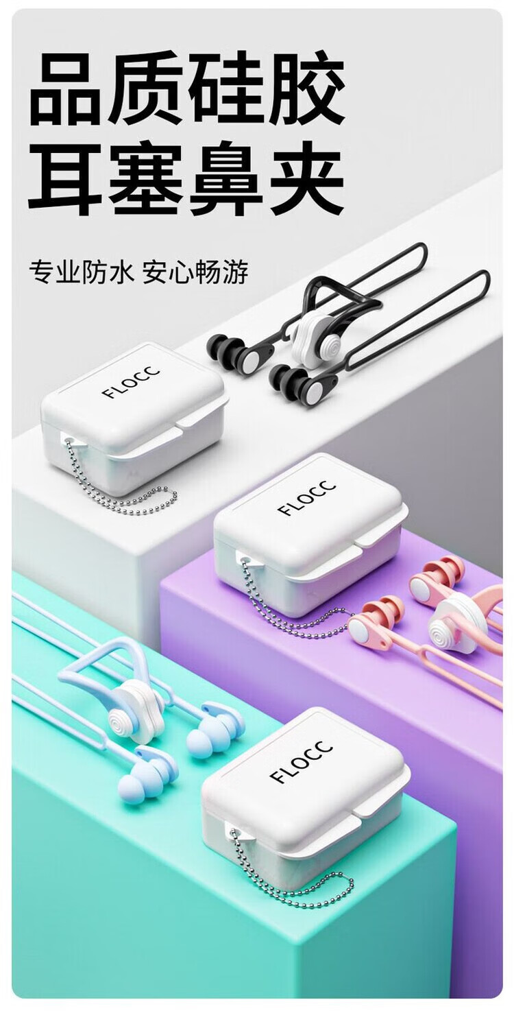 Swimming earplugs with lanyard, waterproof, professional swimming and bathing, waterproof, non-soundproof, anti-choking, children's diving nose clip, piano black, nose clip earplugs, adult version