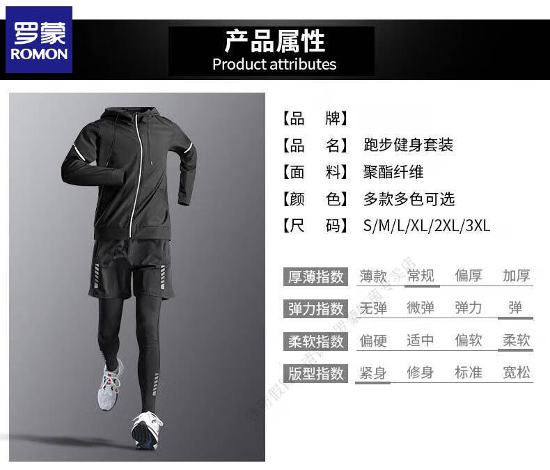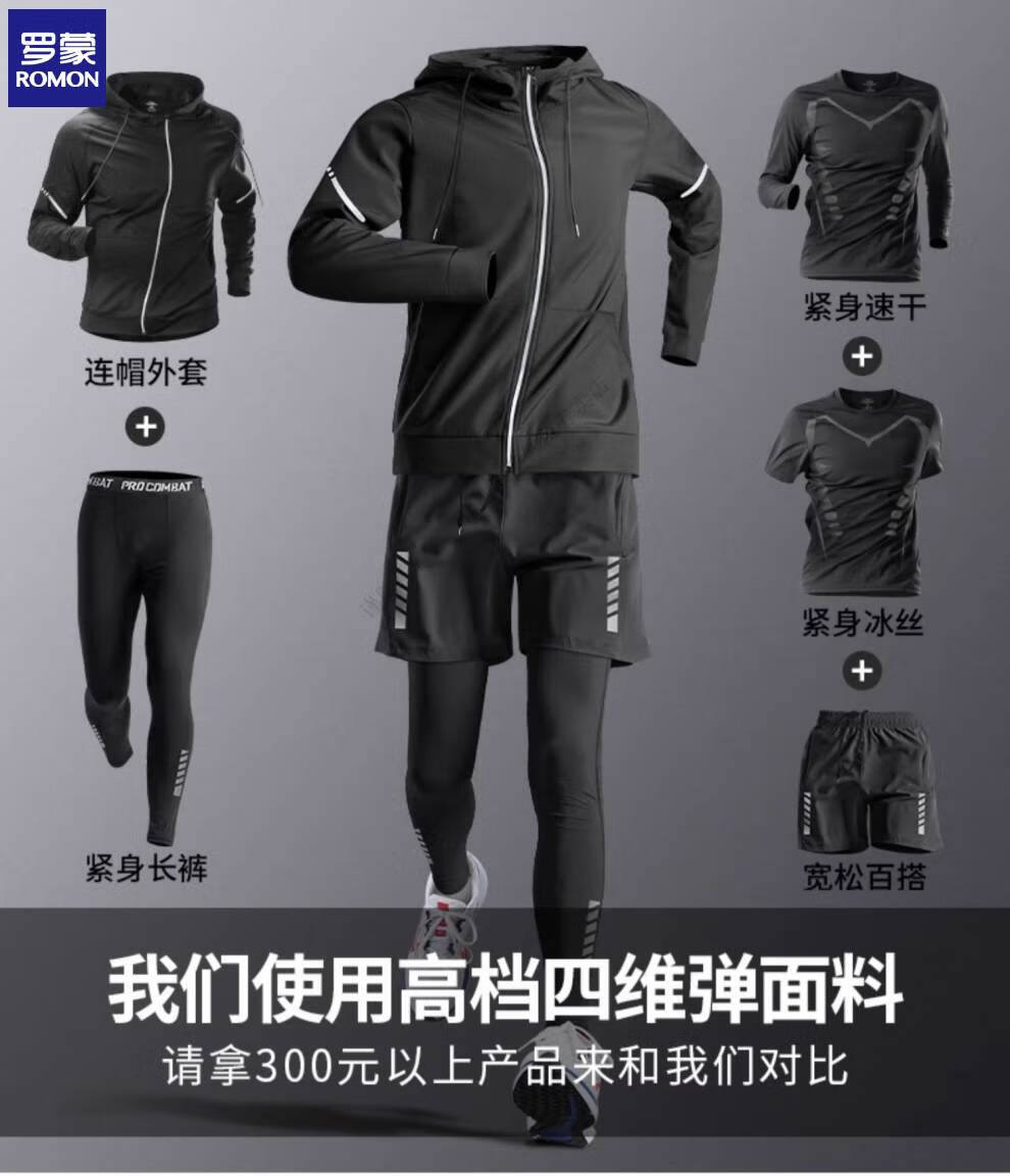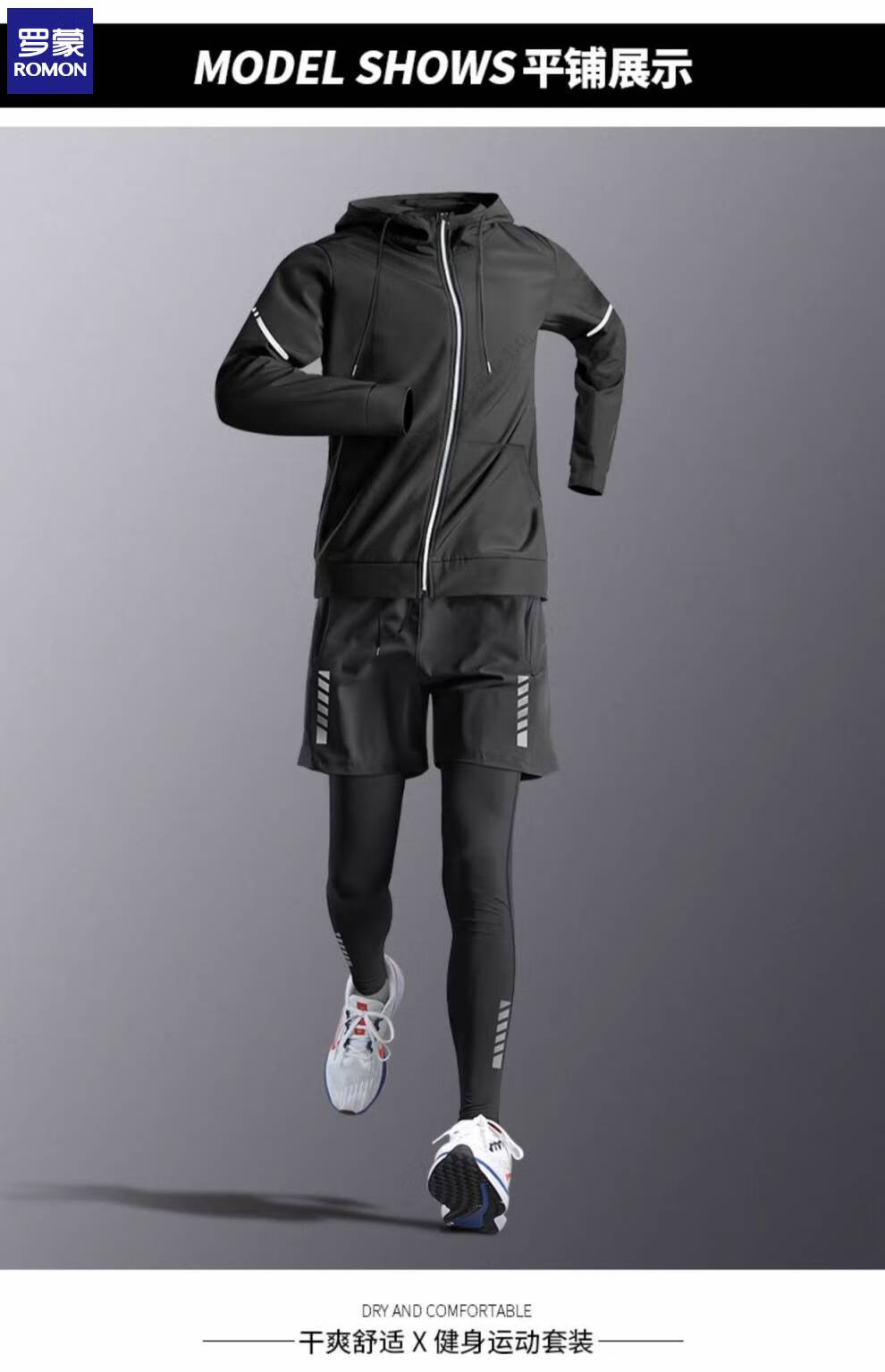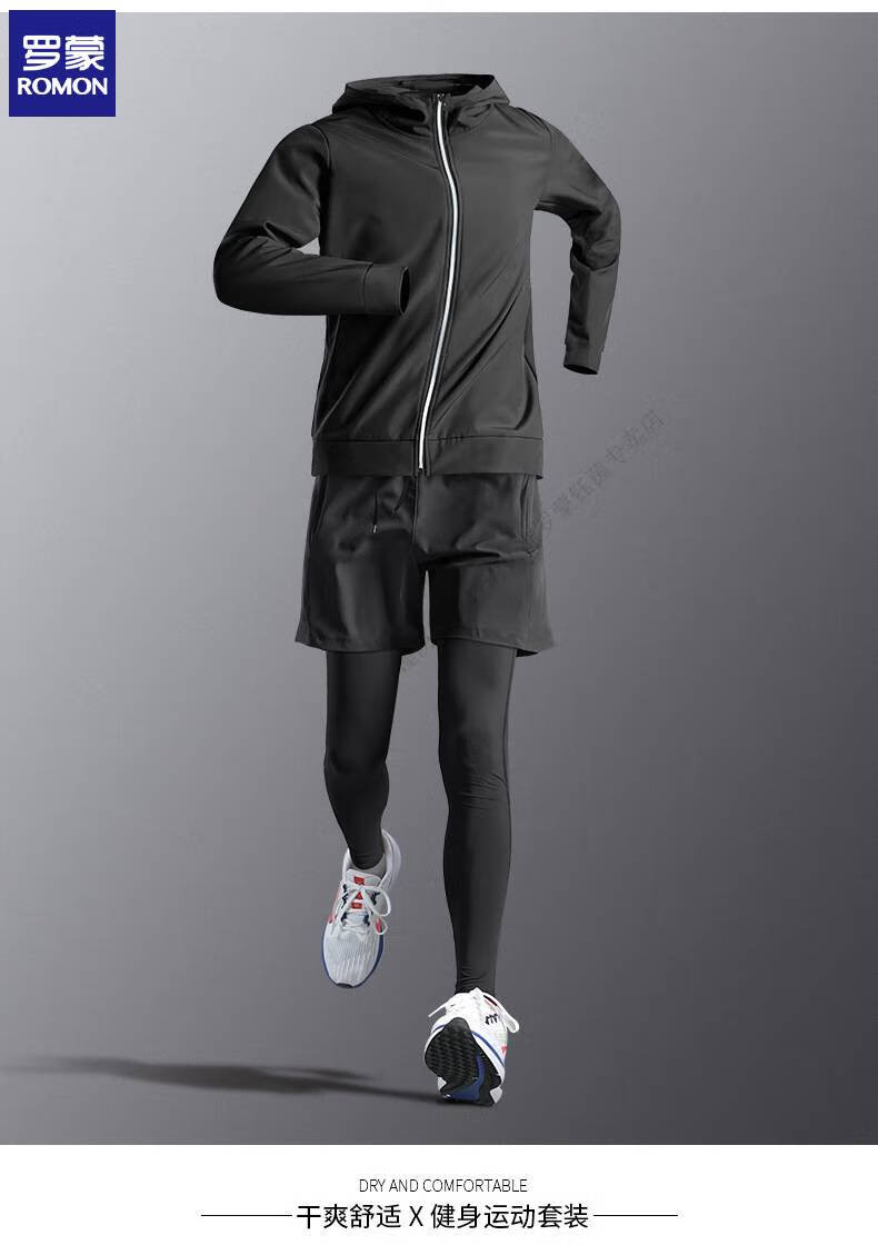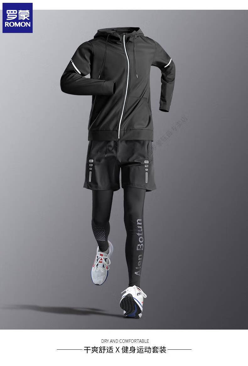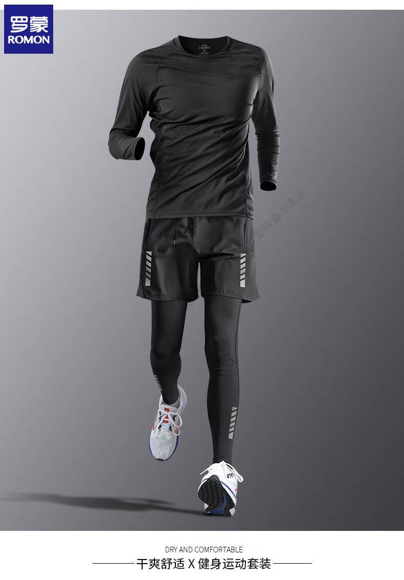 ROMON sports suit men's running gym clothes spring quick-drying clothes tight long-sleeved morning running training spring and autumn cycling clothes three-piece set, J10+JK04+J17 5XL recommended 200-220Jin Jin equals 0.5 kg