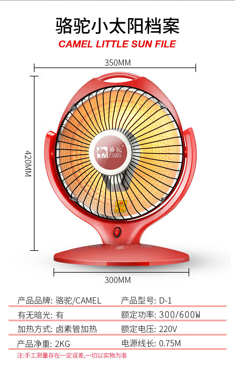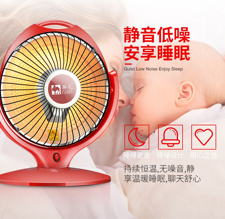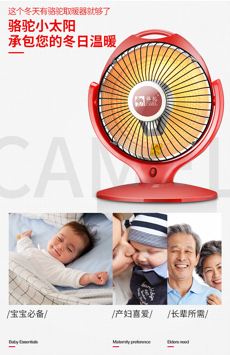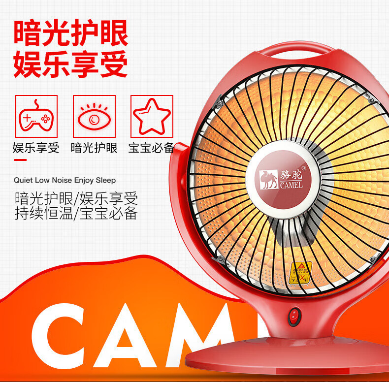 Camel (CAMEL) small sun heater, household electric stove electric heater, living room, bedroom and dormitory, baby bath instant heating artifact, electric fan fire heater, beige medium basic model, spray plastic grille + short wire