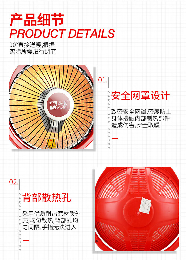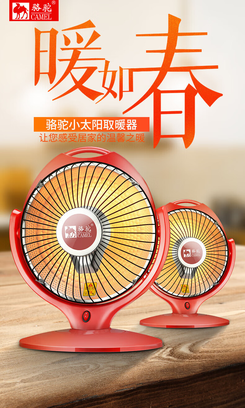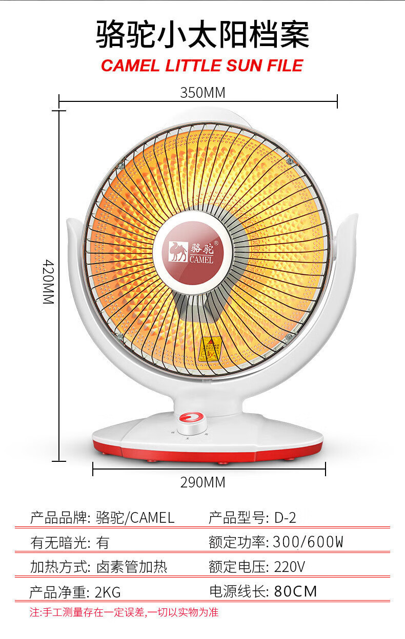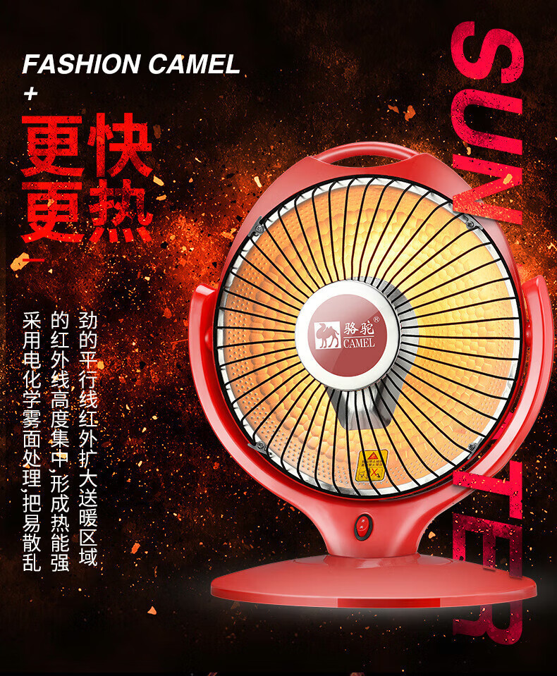Camel (CAMEL) small sun heater, household electric stove electric heater, living room, bedroom and dormitory, baby bath instant heating artifact, electric fan fire heater, beige medium basic model, spray plastic grille + short wire
