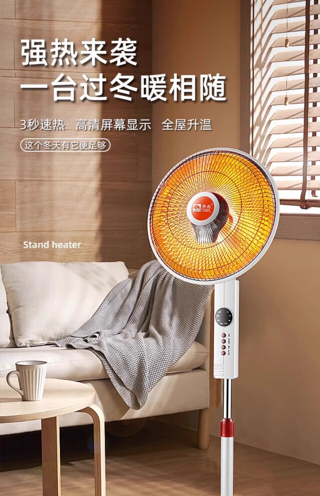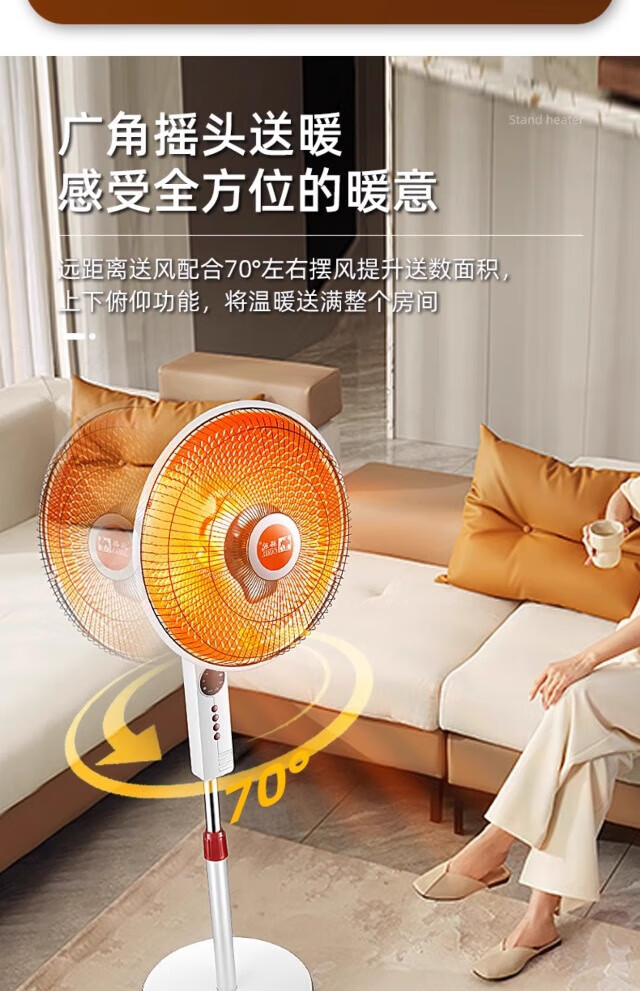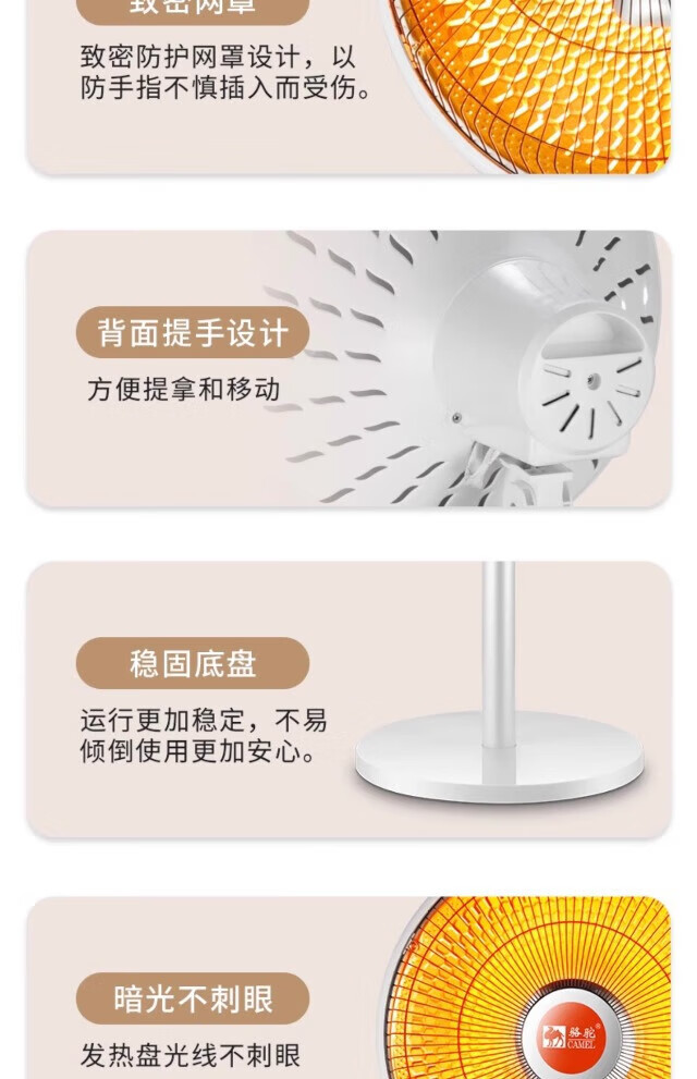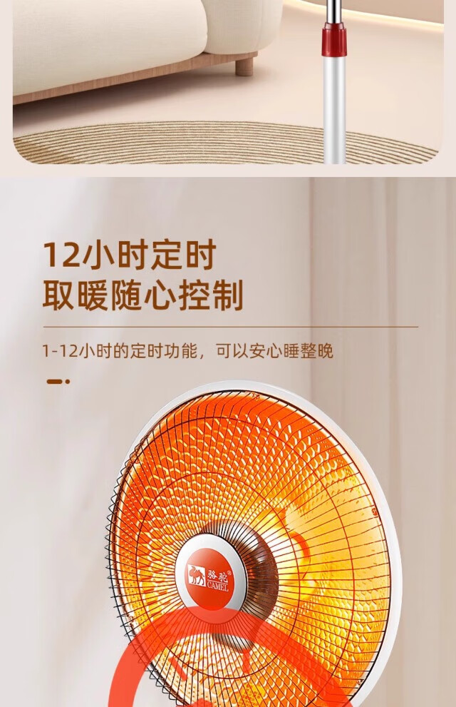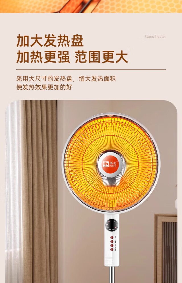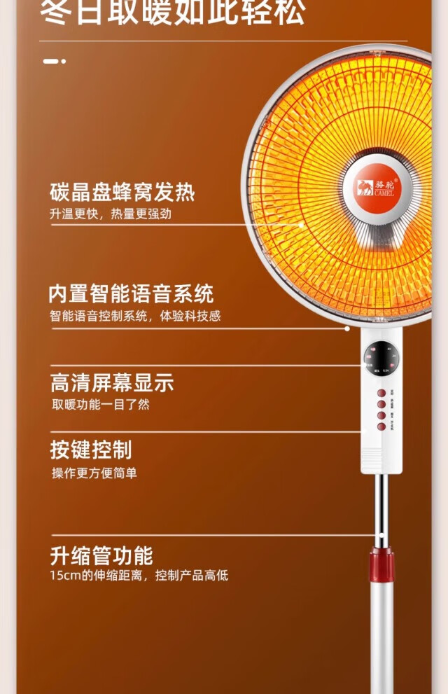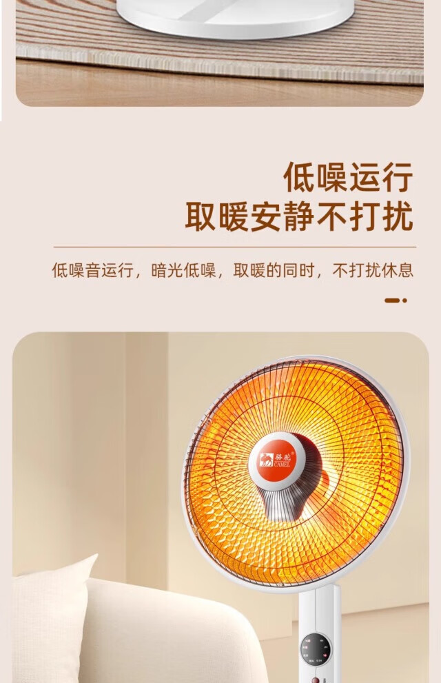 Camel (CAMEL) small solar heater, vertical lift for home use, electric heater for living room and bedroom, electric fan for quick heating, baby bath, stove, office electric heater, medium-sized ordinary shaking head type, mechanical type