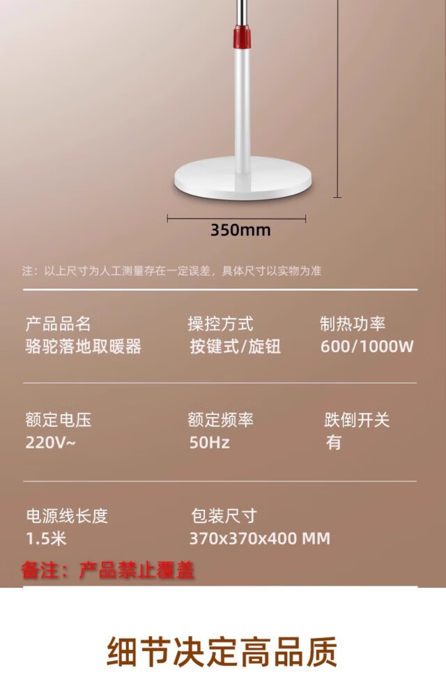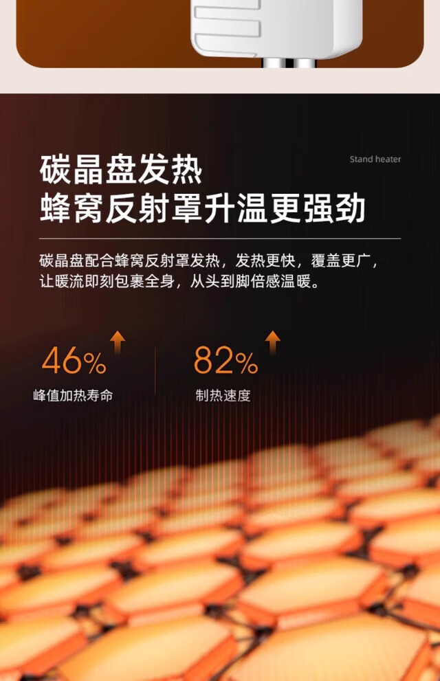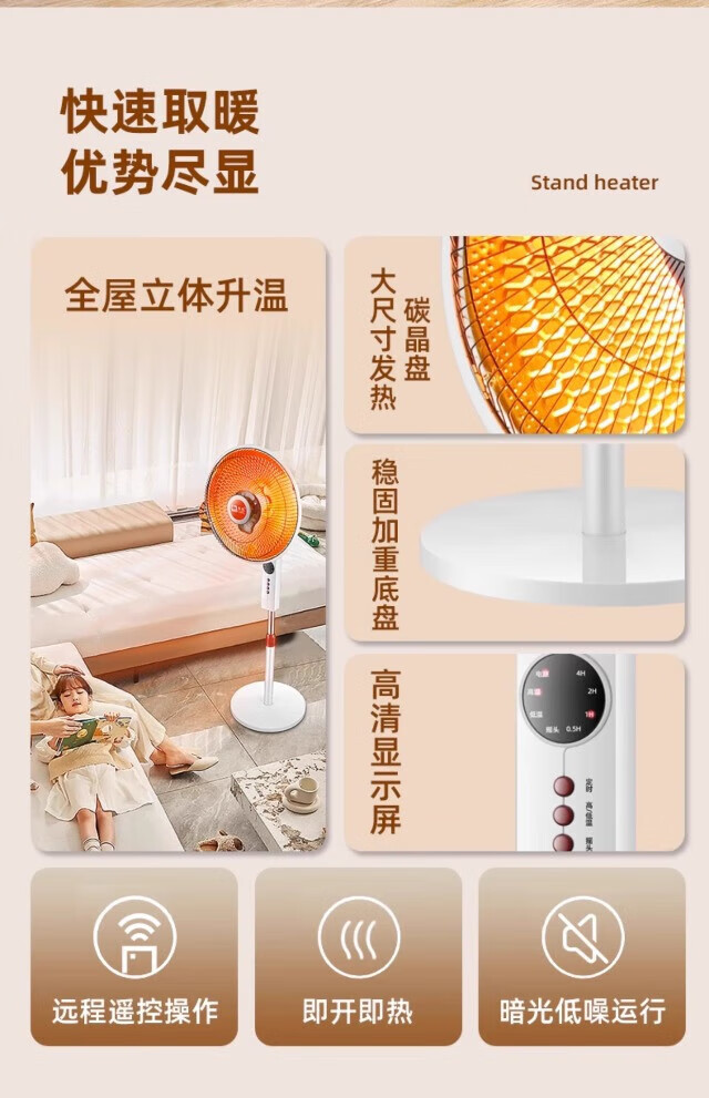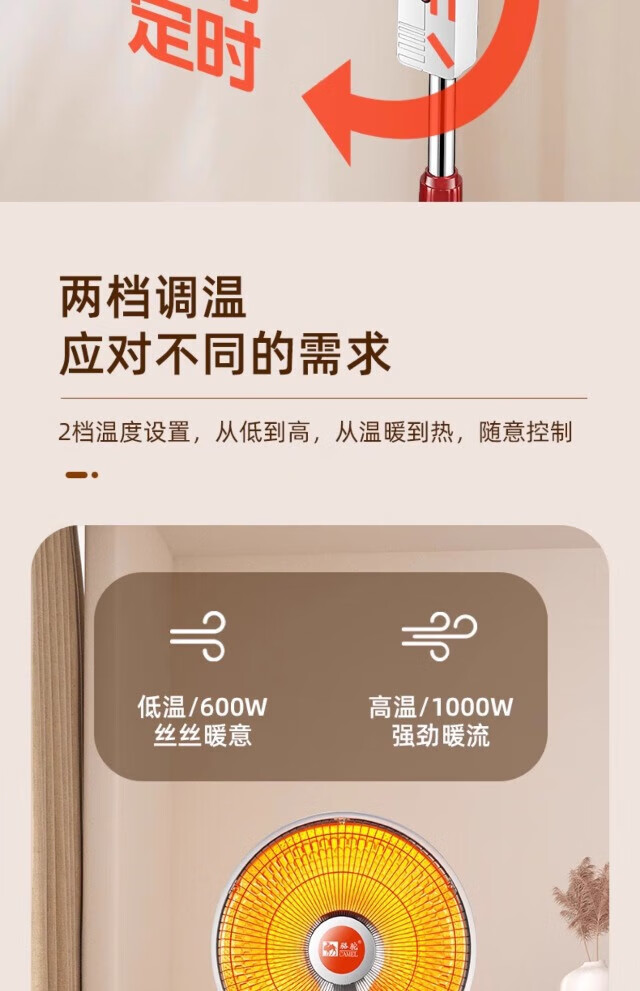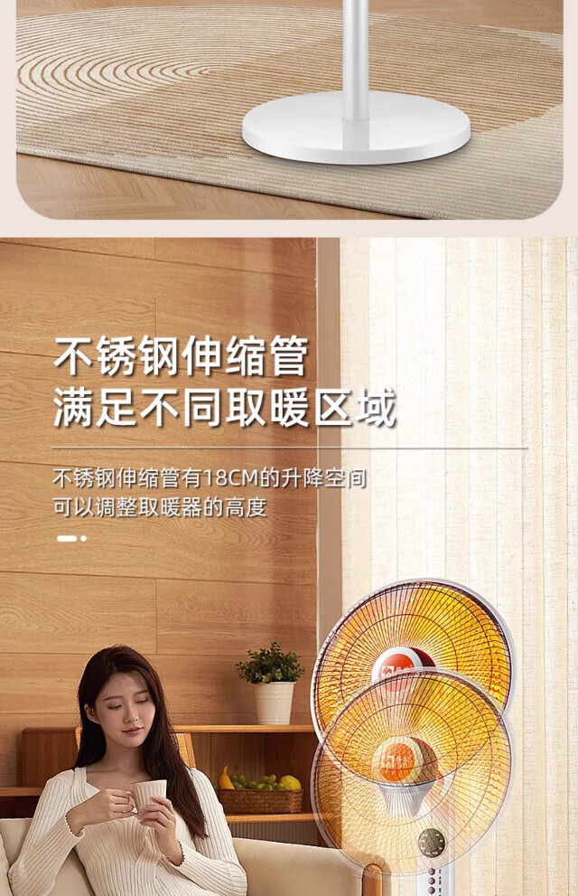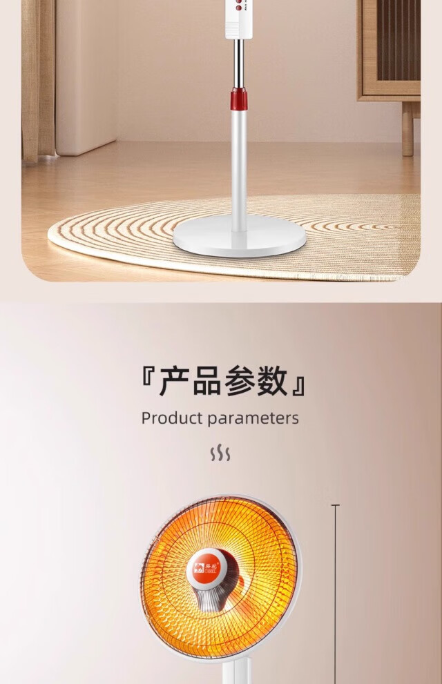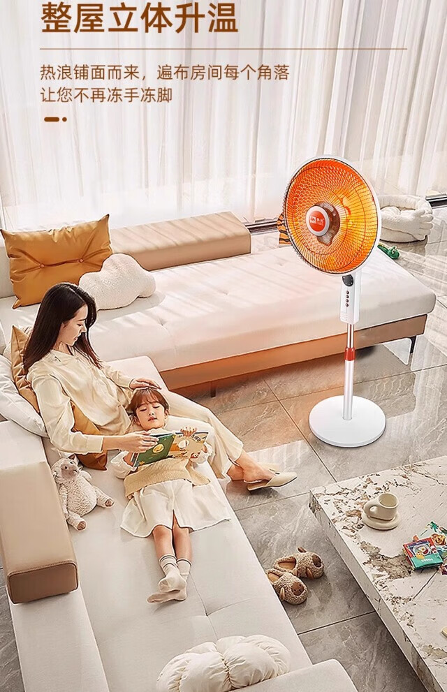 Camel (CAMEL) small solar heater, vertical lift for home use, electric heater for living room and bedroom, electric fan for quick heating, baby bath, stove, office electric heater, medium-sized ordinary shaking head type, mechanical type