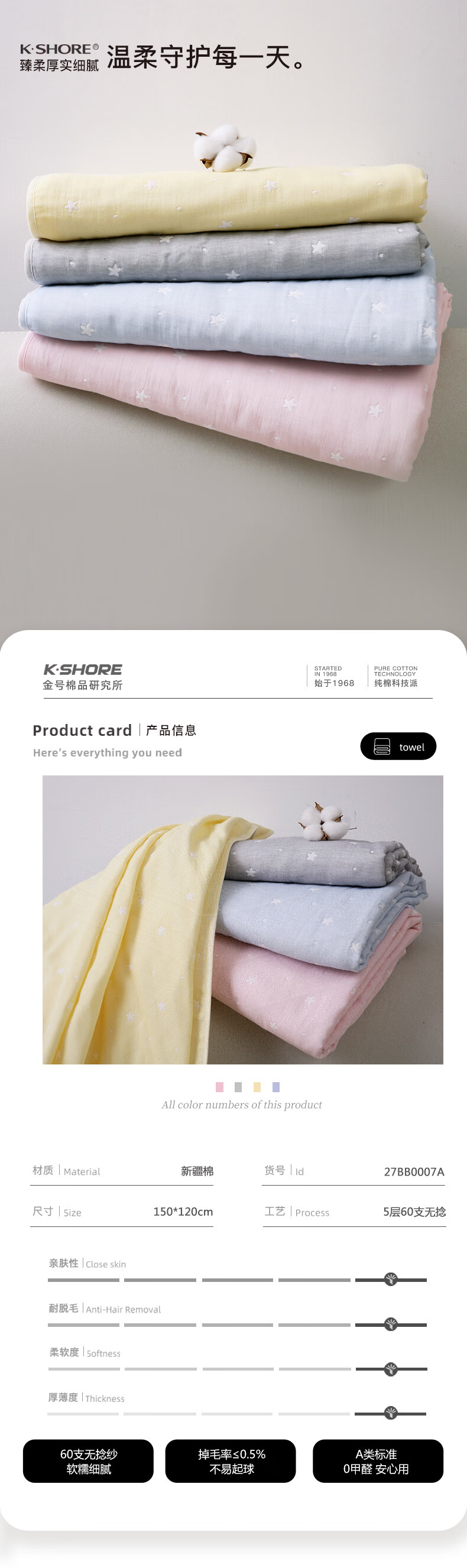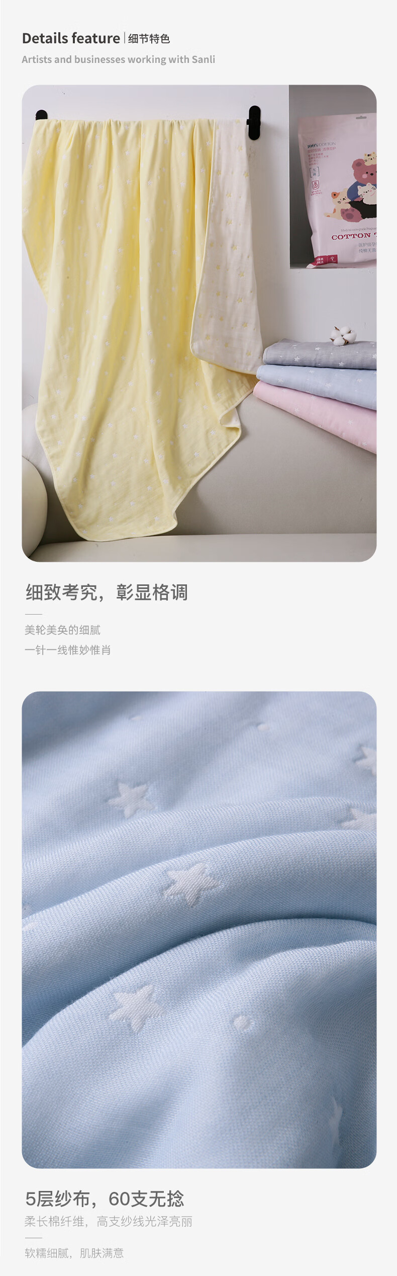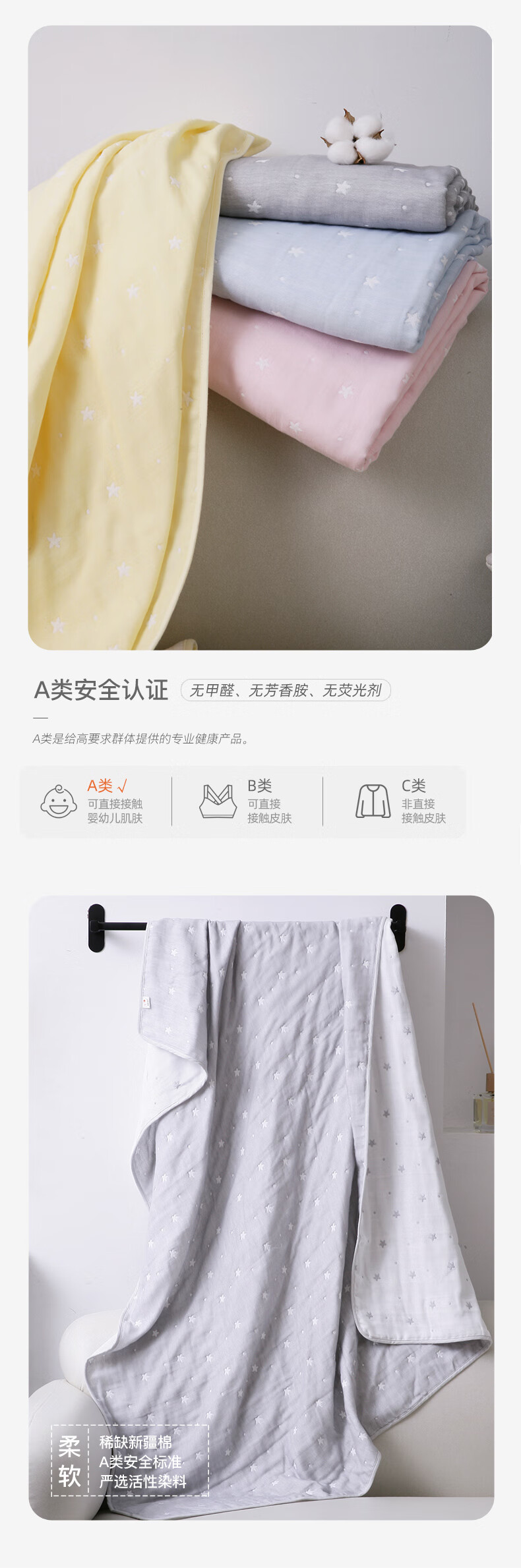 Jinhaobao Jinhao baby blanket cotton 5-layer gauze baby multifunctional quilt bed sheet wrapped stroller pad towel soft and breathable 27BB0007A gray 150*120cm, fast delivery