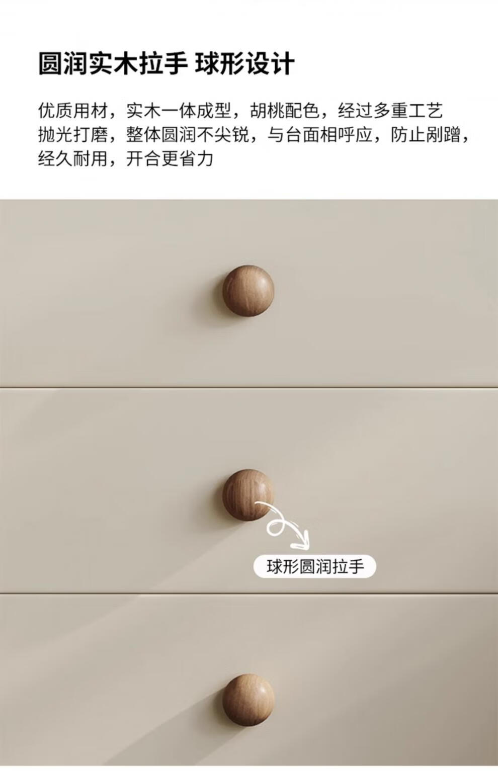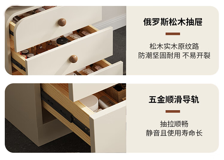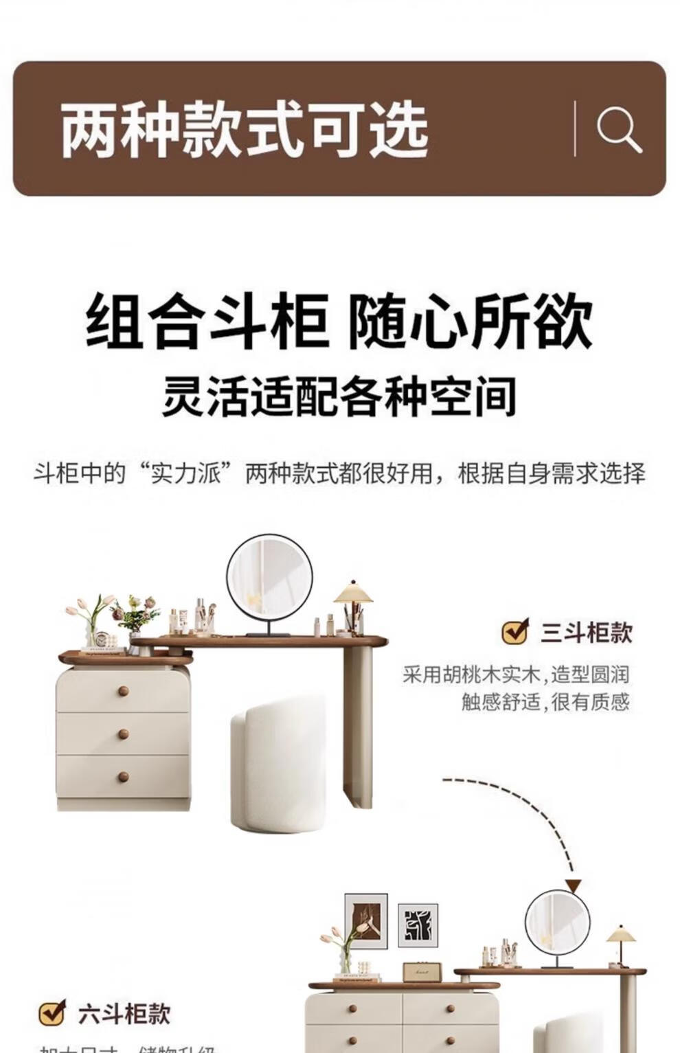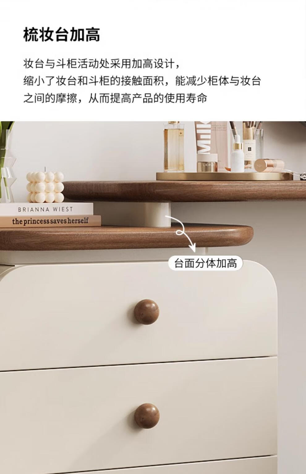 Shengjiang Liangcai dressing table cream style 2025 new solid wood painted drawer cabinet integrated bedroom bedside table modern simple storage cabinet walnut handle three drawer cabinet + 1 meter dressing table + stool E0 grade solid wood multi-layer board