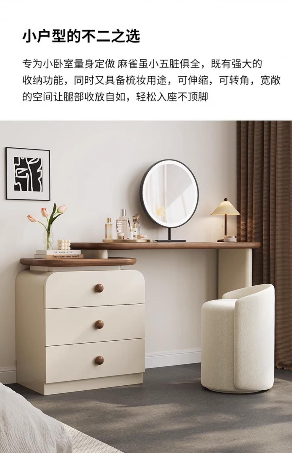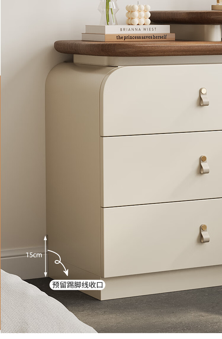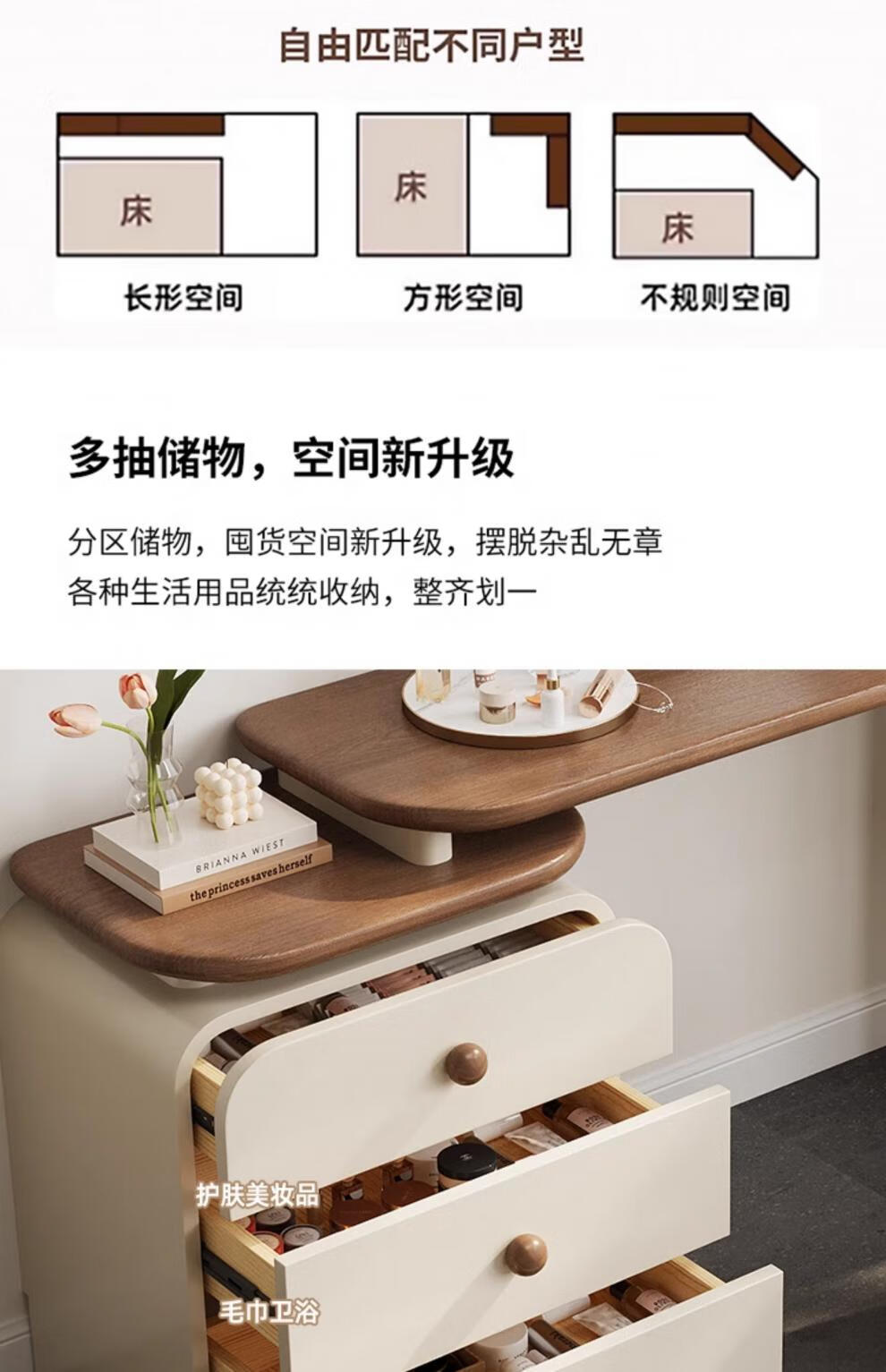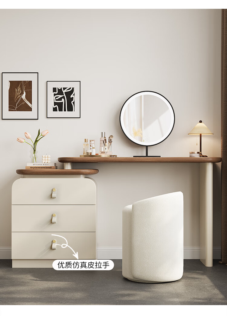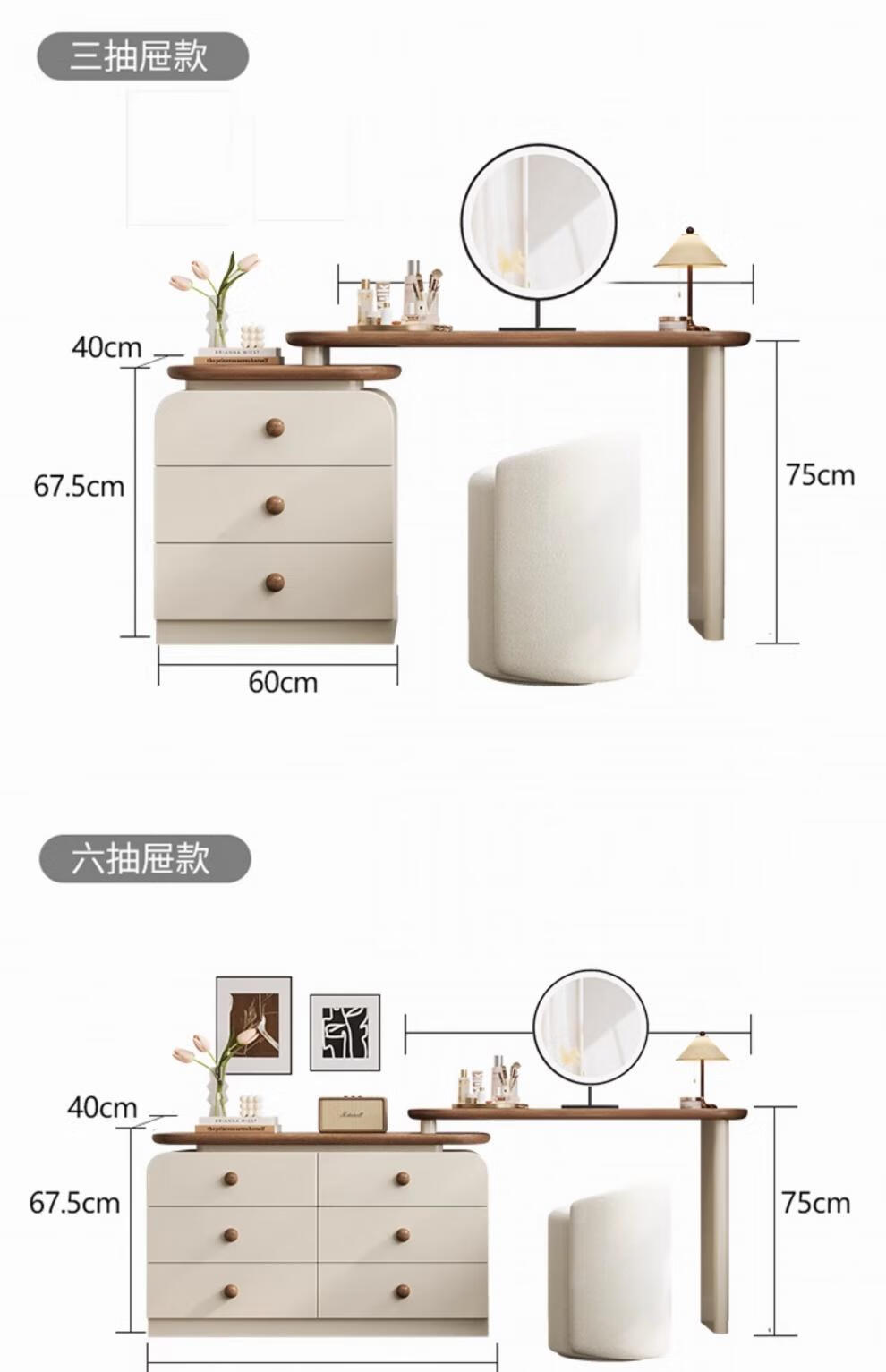 Shengjiang Liangcai dressing table cream style 2025 new solid wood painted drawer cabinet integrated bedroom bedside table modern simple storage cabinet walnut handle three drawer cabinet + 1 meter dressing table + stool E0 grade solid wood multi-layer board