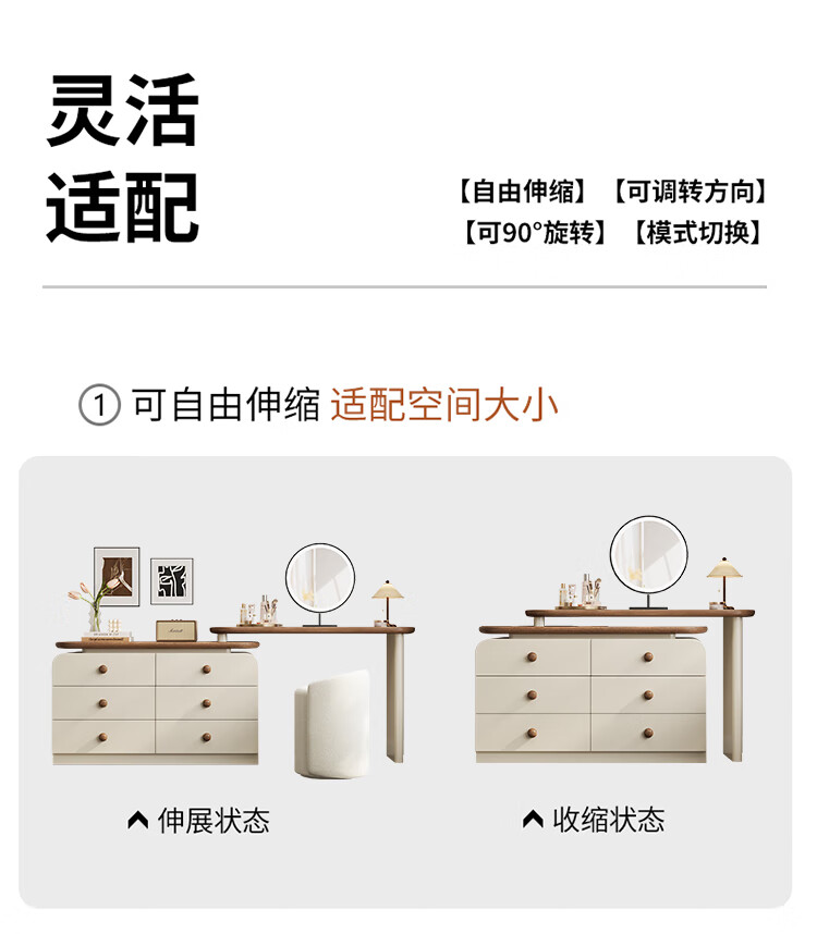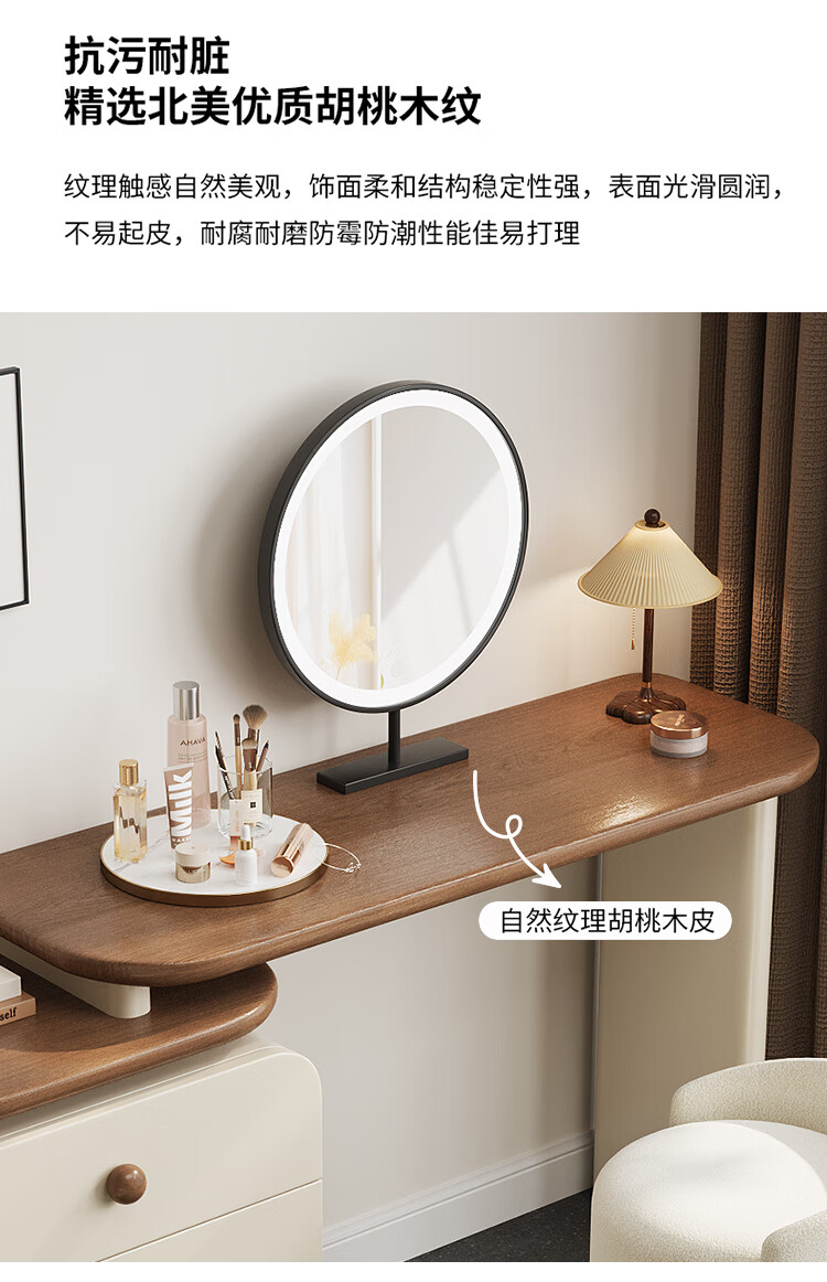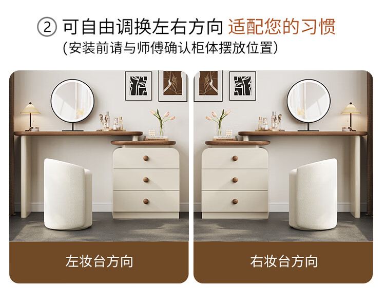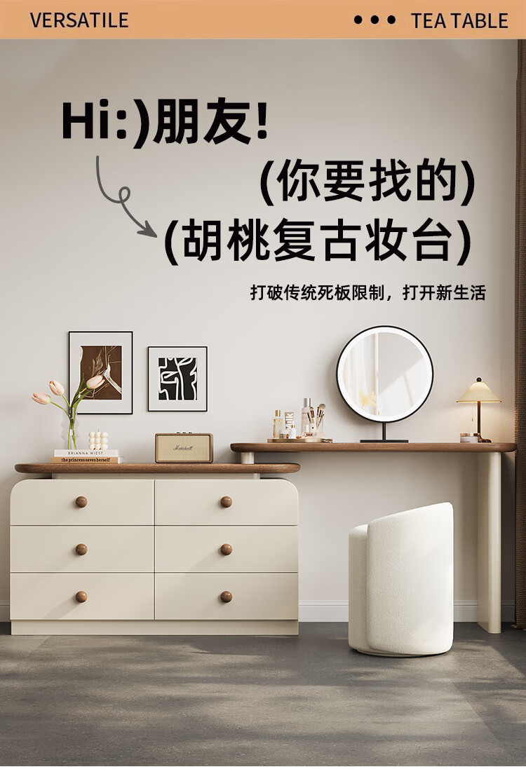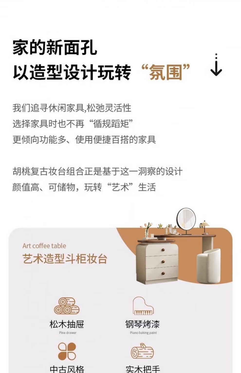 Shengjiang Liangcai dressing table cream style 2025 new solid wood painted drawer cabinet integrated bedroom bedside table modern simple storage cabinet walnut handle three drawer cabinet + 1 meter dressing table + stool E0 grade solid wood multi-layer board