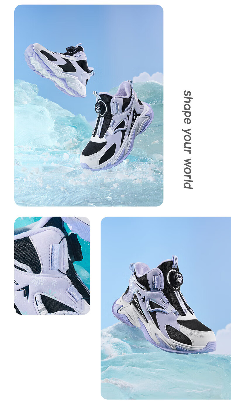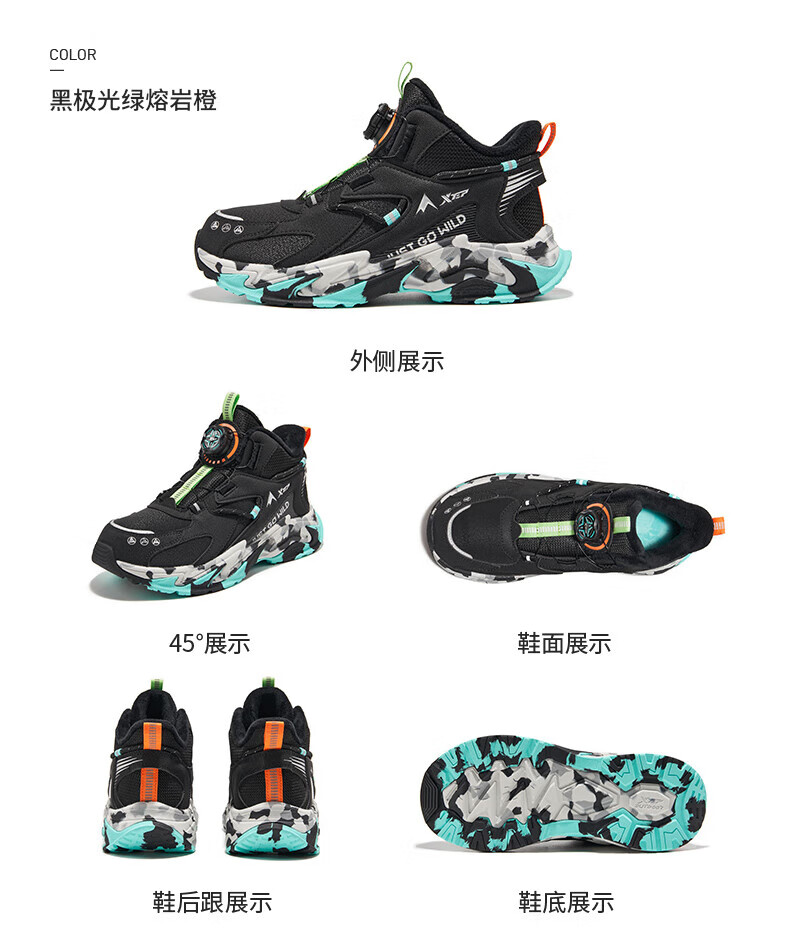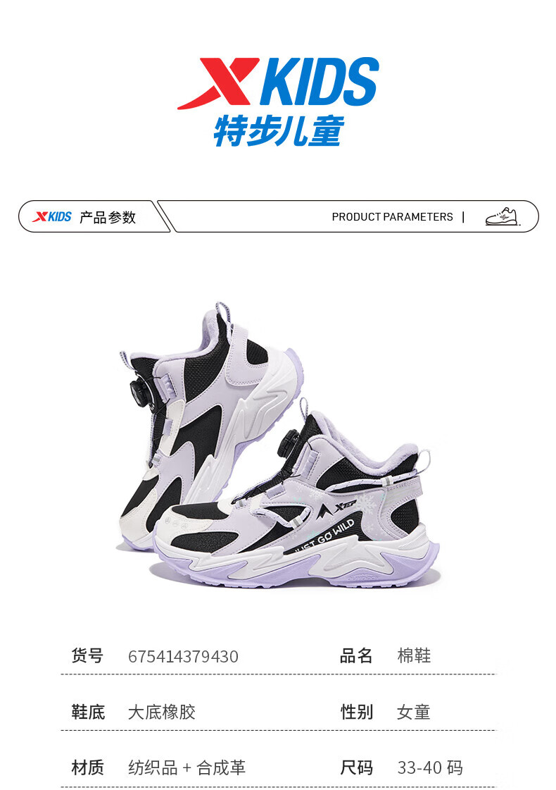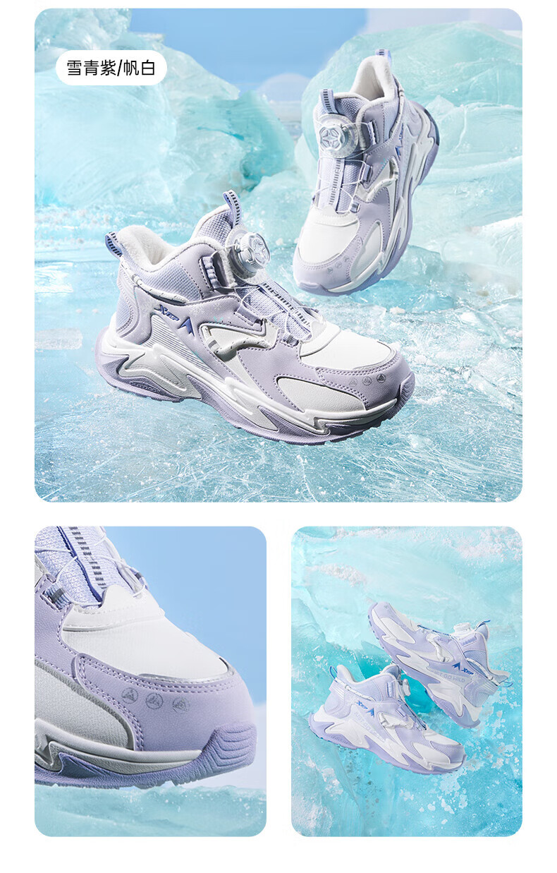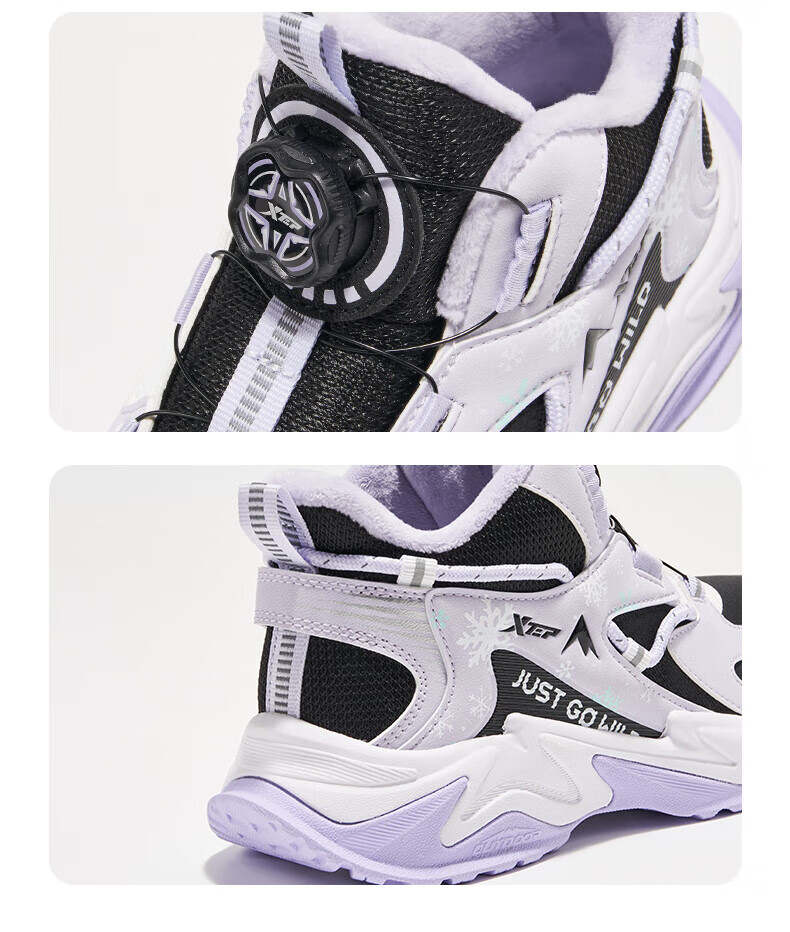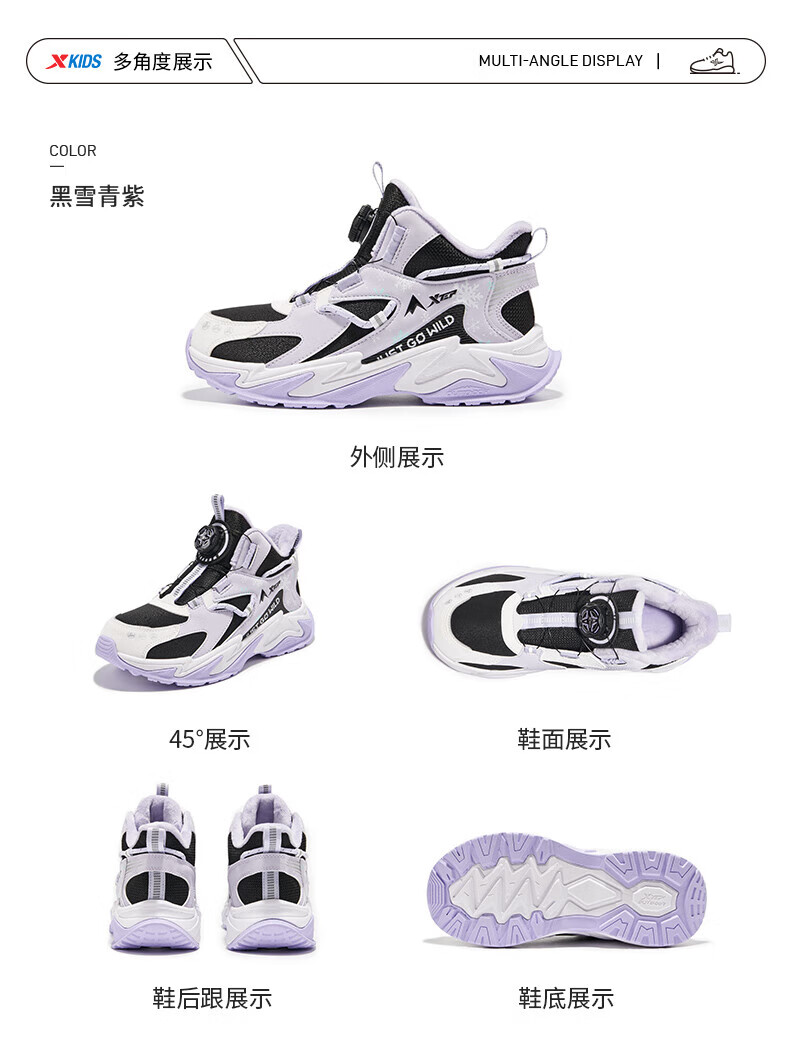 XTEP children's cotton shoes, winter wear-resistant, windproof, soft leather surface, warm and fine mink velvet sports shoes for boys and girls, middle and large children, black/empty blue 33