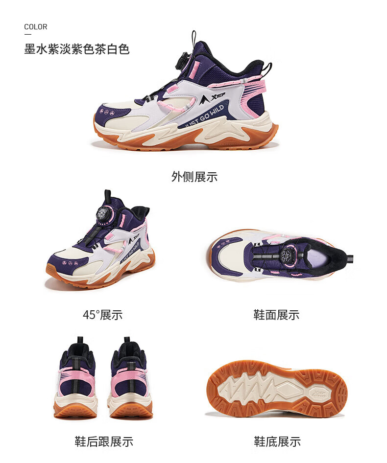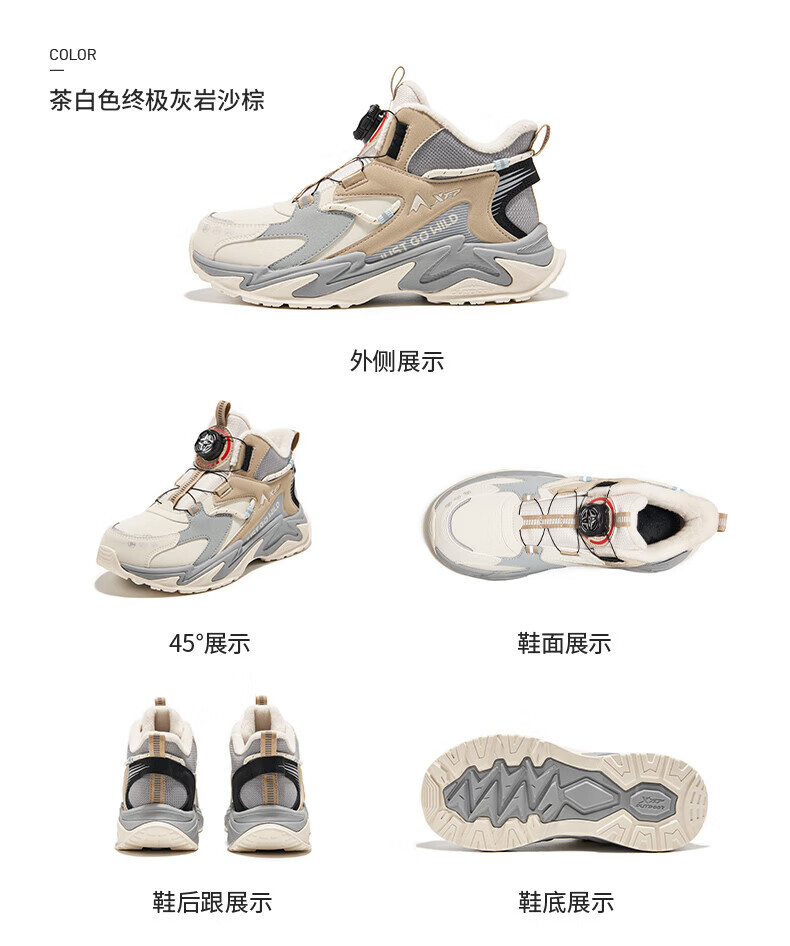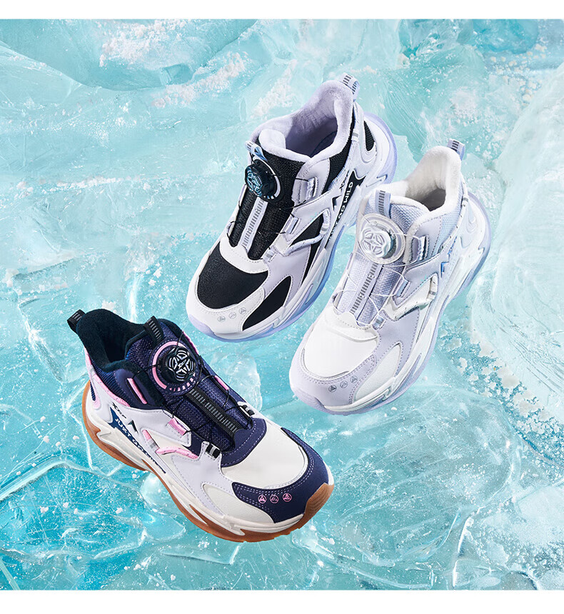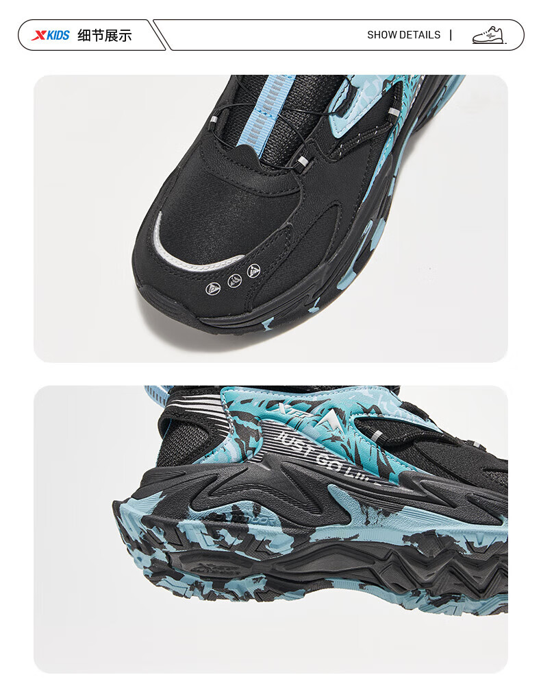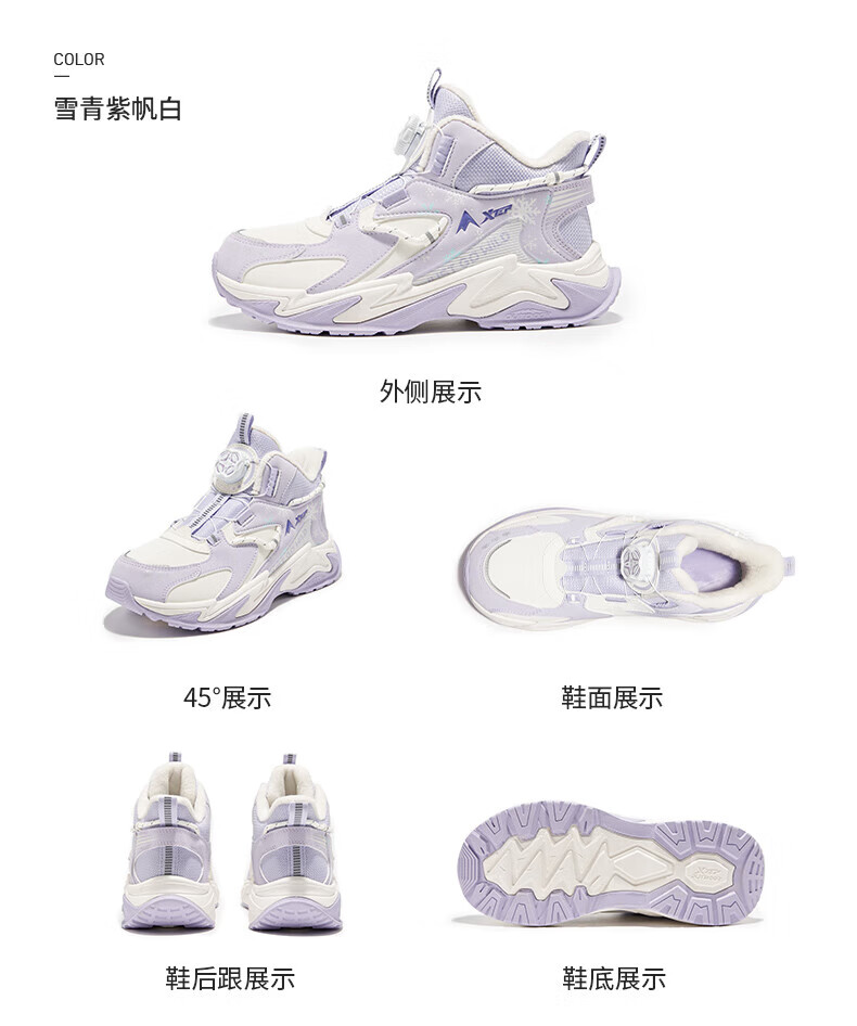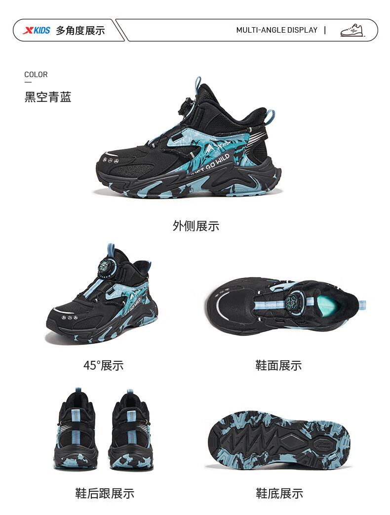 XTEP children's cotton shoes, winter wear-resistant, windproof, soft leather surface, warm and fine mink velvet sports shoes for boys and girls, middle and large children, black/empty blue 33
