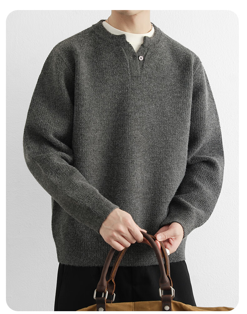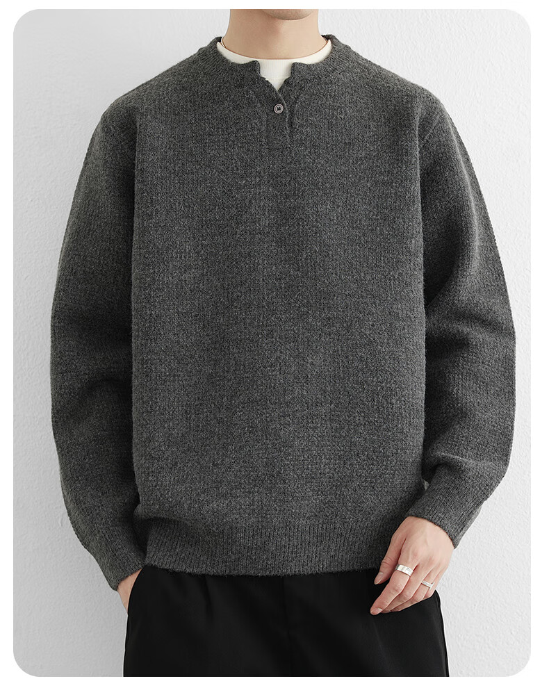 VILVKELIS British Chris Henry collar sweater men's heavyweight thickened bottoming shirt autumn and winter new loose collar sweater black M _95-115Jin Jin equals 0.5 kg