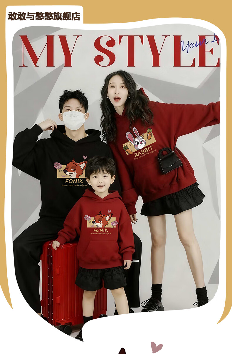 LEOEZYA family of three parent-child outfits burgundy family parent-child outfits family of three sweatshirts 2025 new autumn and winter mother and child (thin section) bright red 175 Mom L