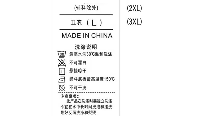 China (cm) 165 / 88-90 170 / 96-98 175 / 108-110 180 / 118-122 185 / 126-130