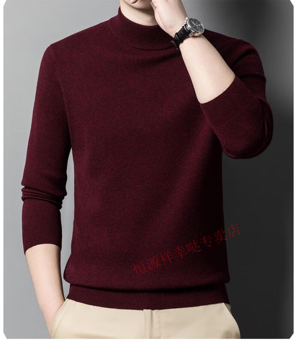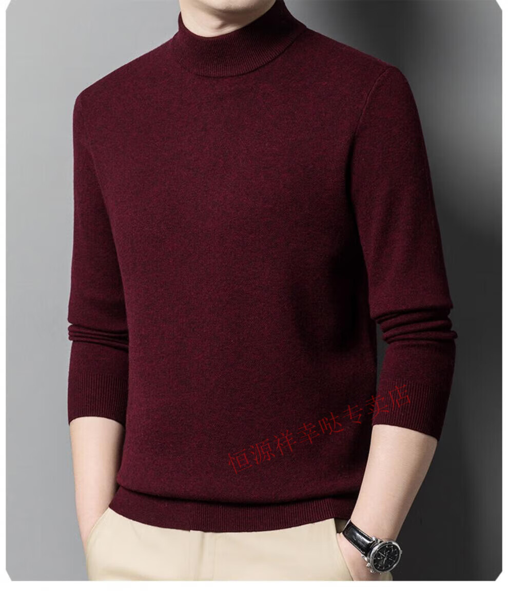 Hengyuanxiang 100% pure wool sweater men's autumn and winter new half turtleneck middle-aged animal year thickened warm sweater sweater 601 burgundy half turtleneck pure new 100% wool M 165 suitable for 90-120Jin Jin equals 0.5 kg