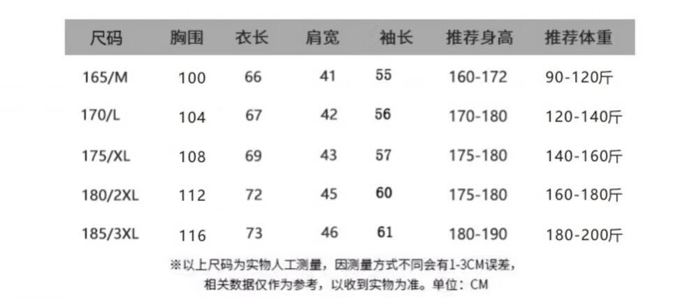 China (cm) 165 / 88-90 170 / 96-98 175 / 108-110 180 / 118-122 185 / 126-130