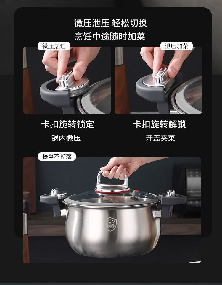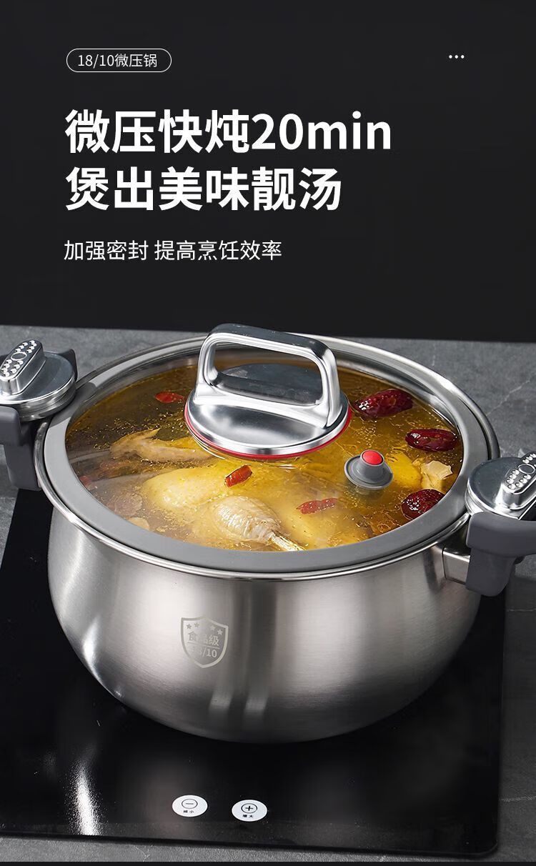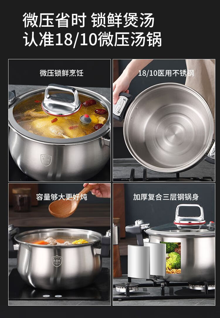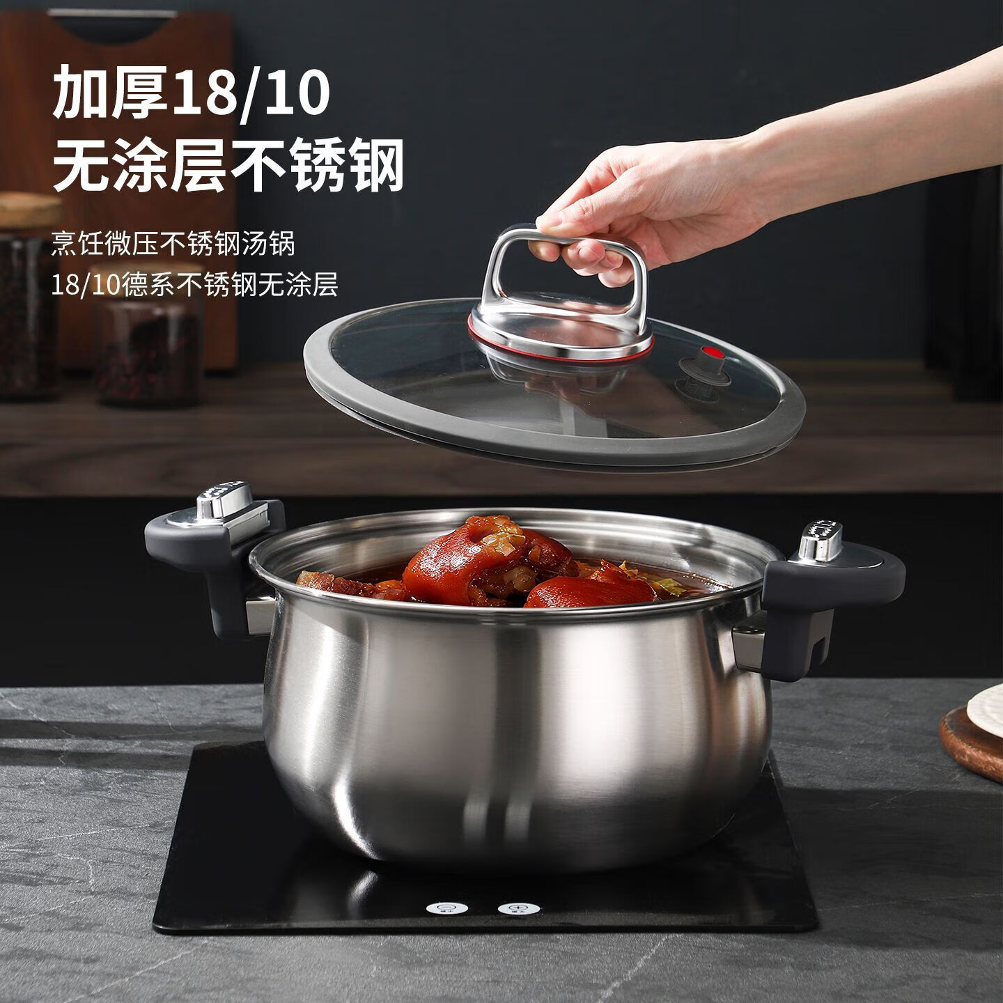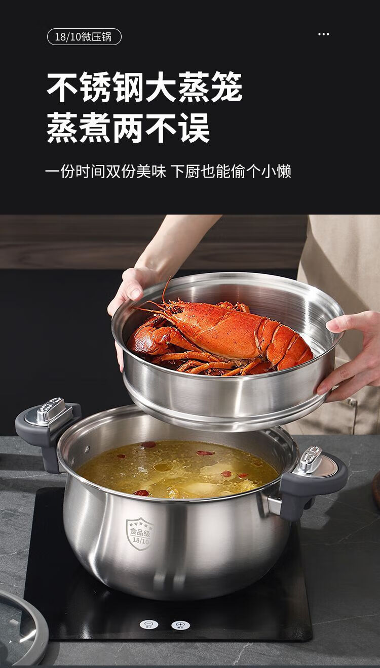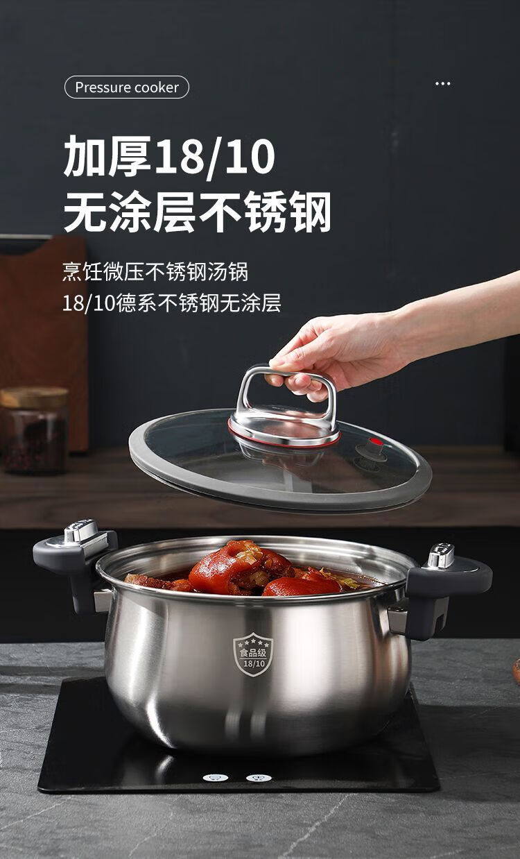Henke stainless steel micro pressure cooker 26CM large capacity 7 liter micro pressure cooker stove universal household extra thick 7 liter large capacity original extra thick style 1ml 26cm micro pressure cooker + single steaming grid (uncoated)