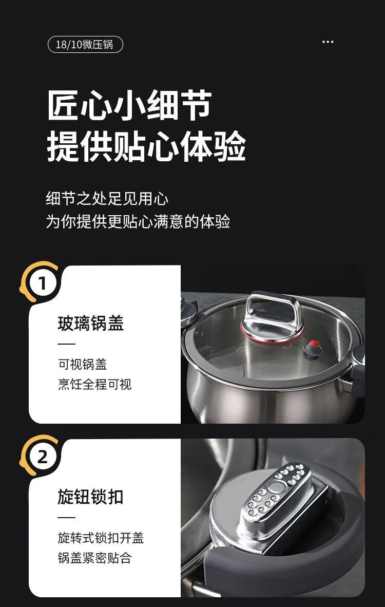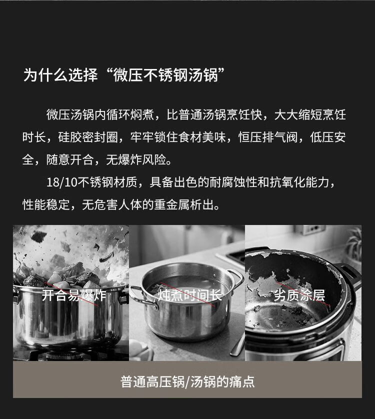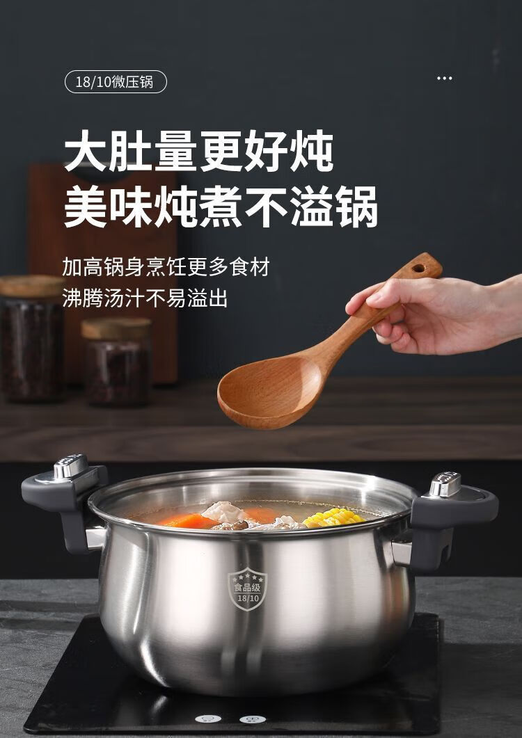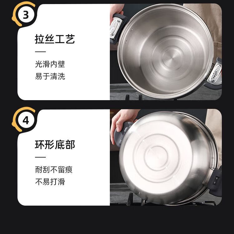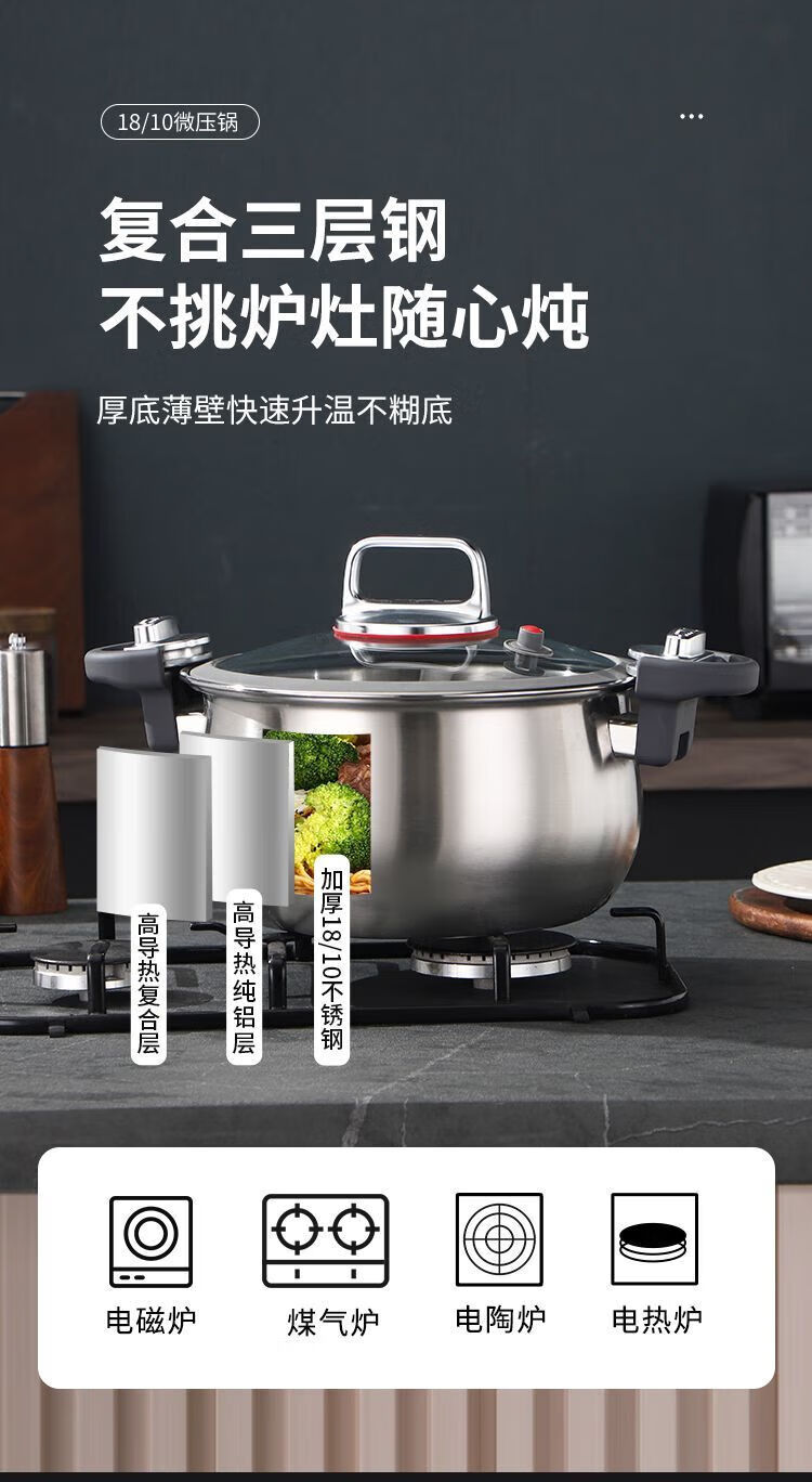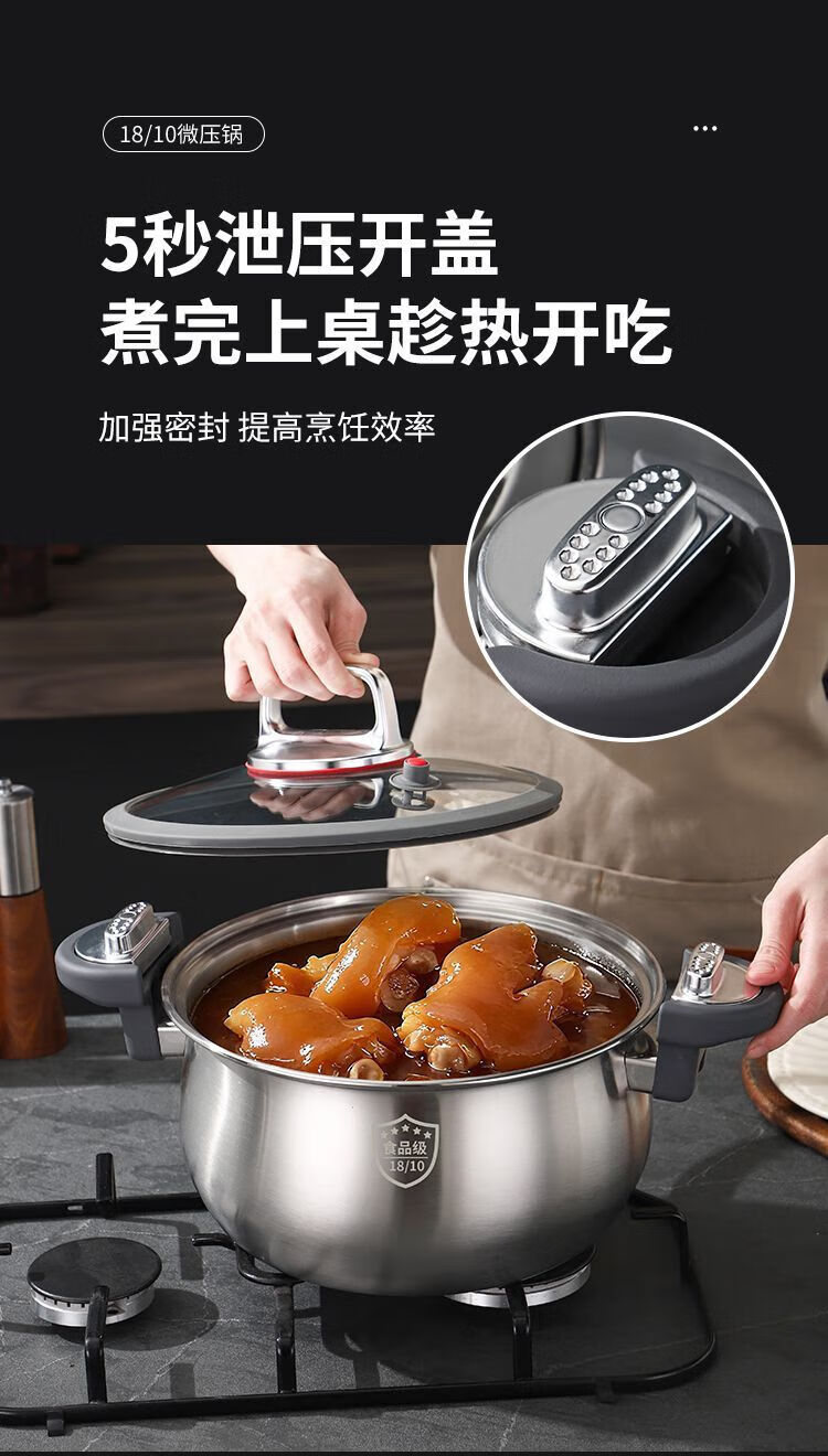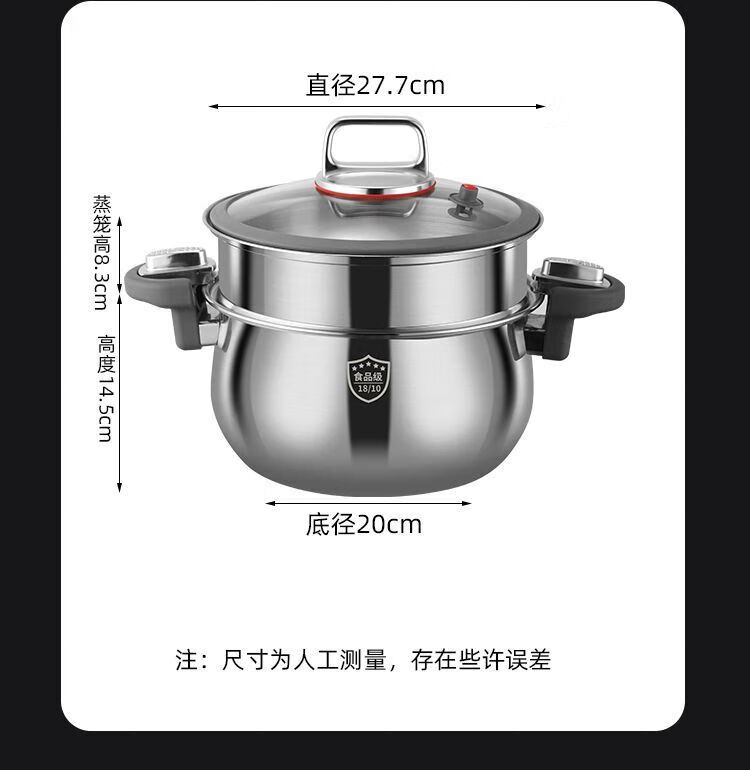 Henke stainless steel micro pressure cooker 26CM large capacity 7 liter micro pressure cooker stove universal household extra thick 7 liter large capacity original extra thick style 1ml 26cm micro pressure cooker + single steaming grid (uncoated)