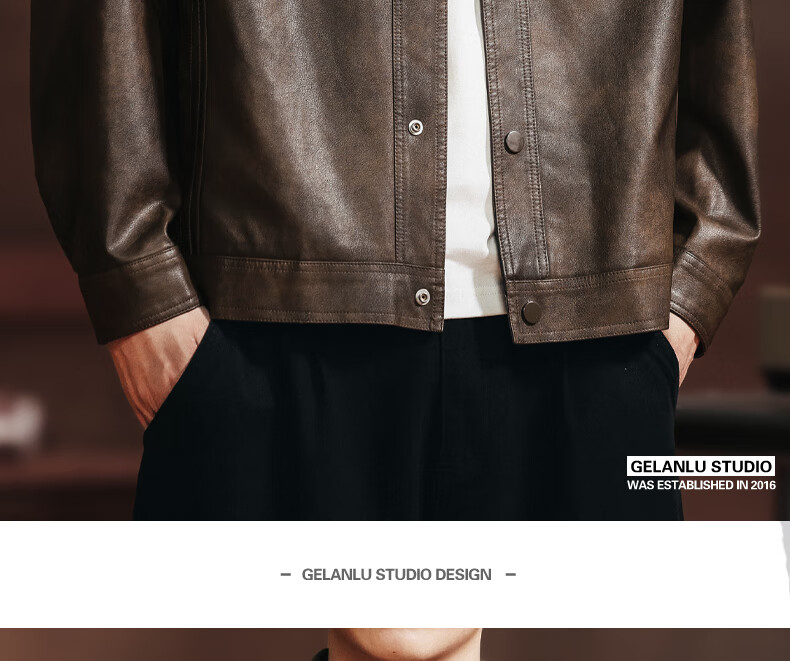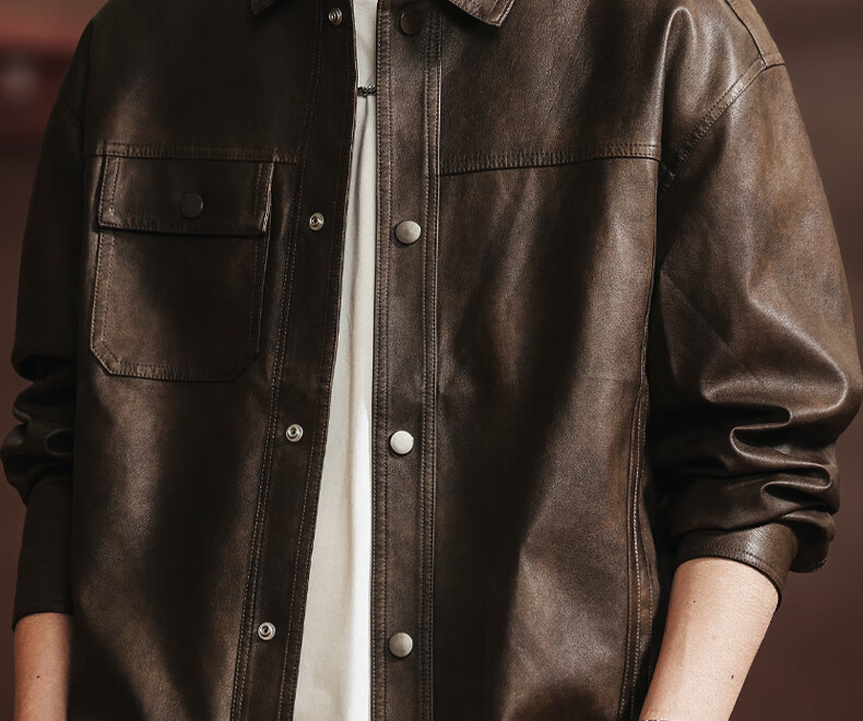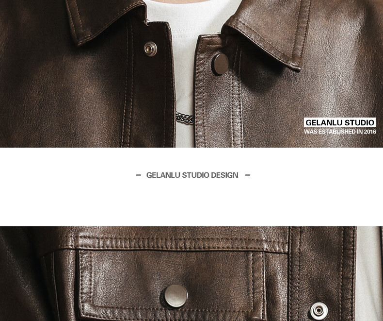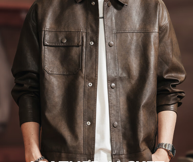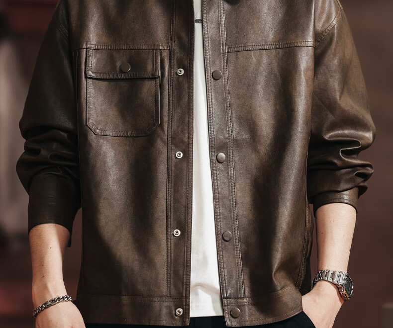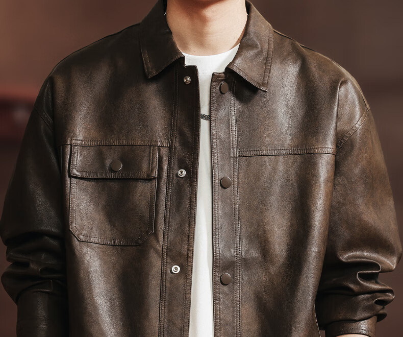 Woodpecker 2026 new leather jacket men's autumn American outdoor motorcycle fashion trend retro handsome jacket JK2513 coffee color M 100-125Jin Jin equals 0.5 kg