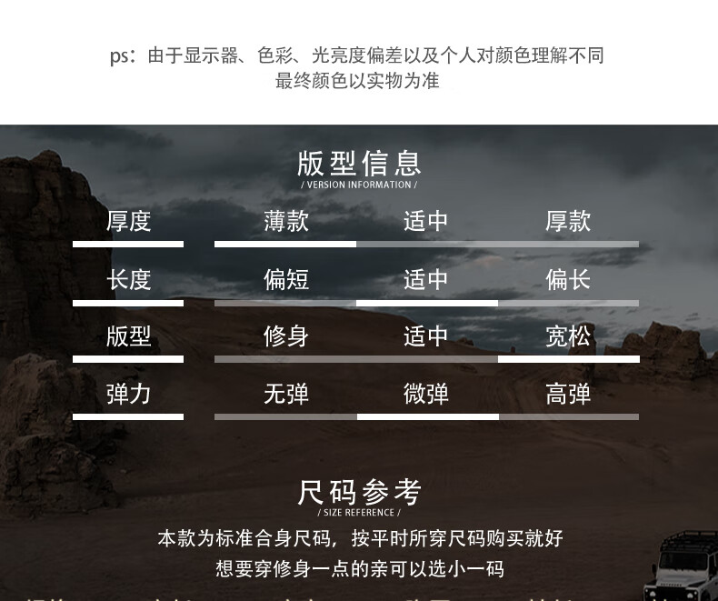 China (cm) 165 / 88-90 170 / 96-98 175 / 108-110 180 / 118-122 185 / 126-130