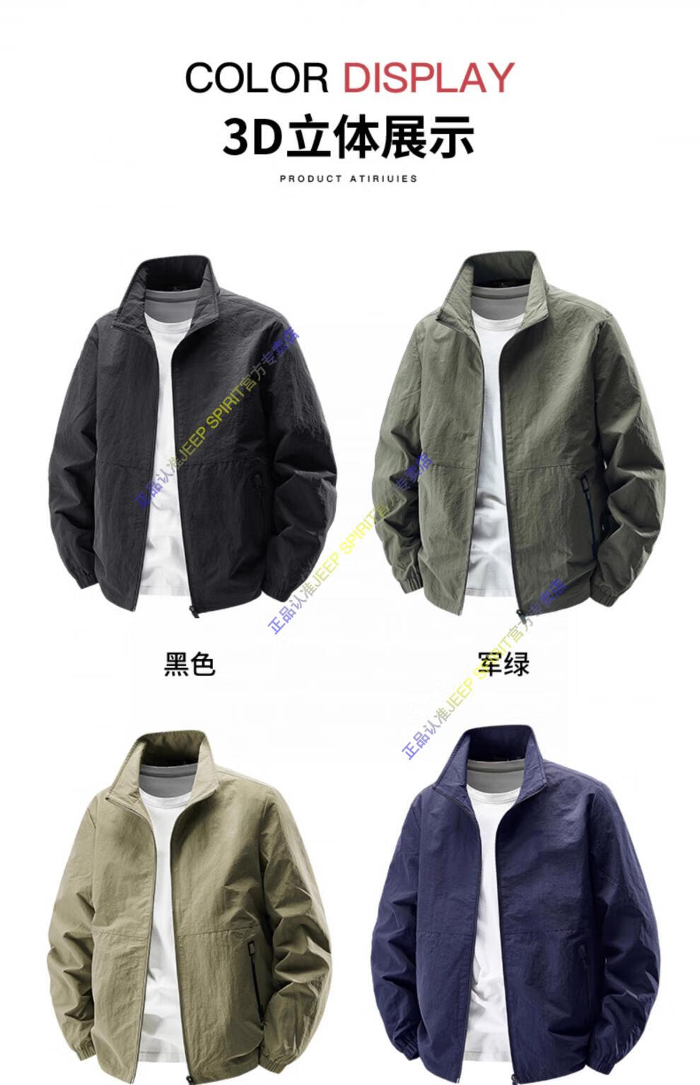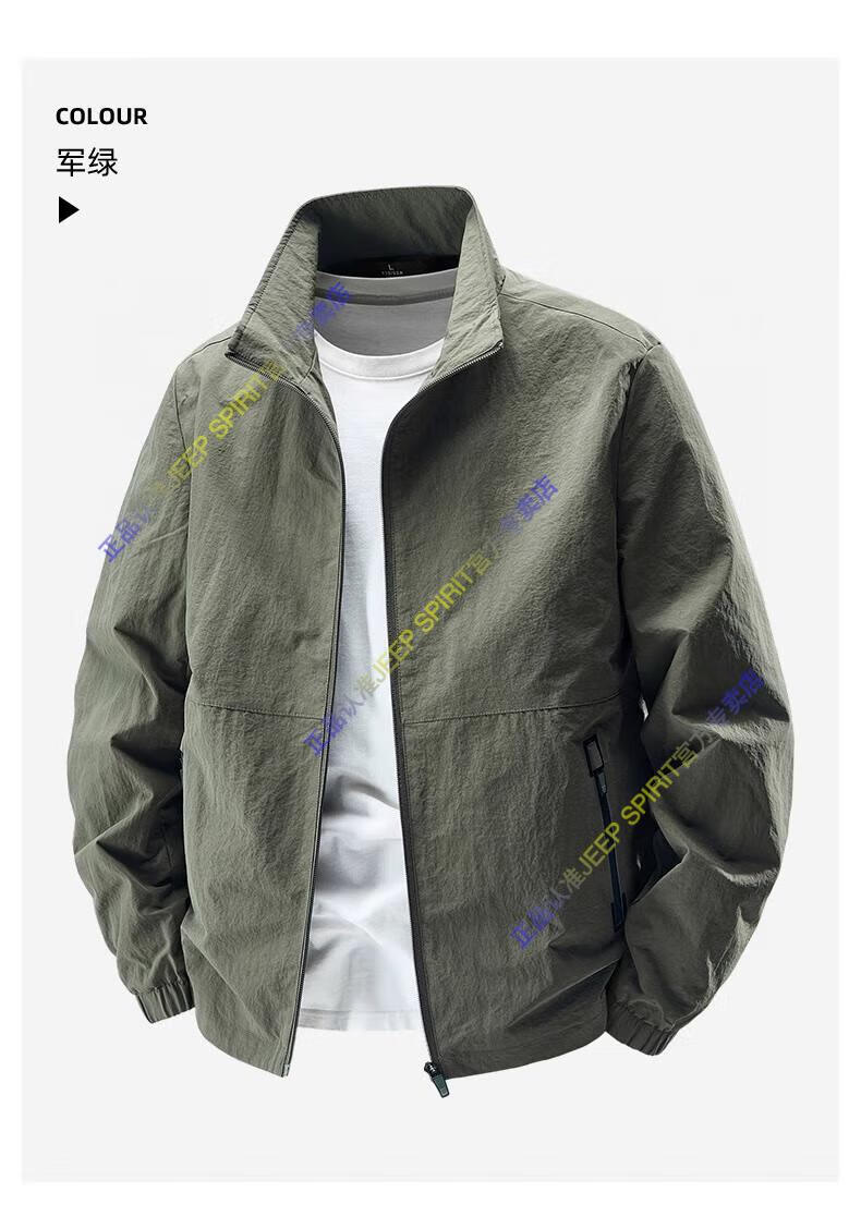 JEEP SPIRIT Jeep High-end Stand Collar Men's Jacket 2025 Autumn and Winter Plus Velvet Windbreaker Winter Casual Top Jacket Men's Military Green Jacket (Single Side) XL Size 130-145Jin Jin is equal to about 0.5 kg