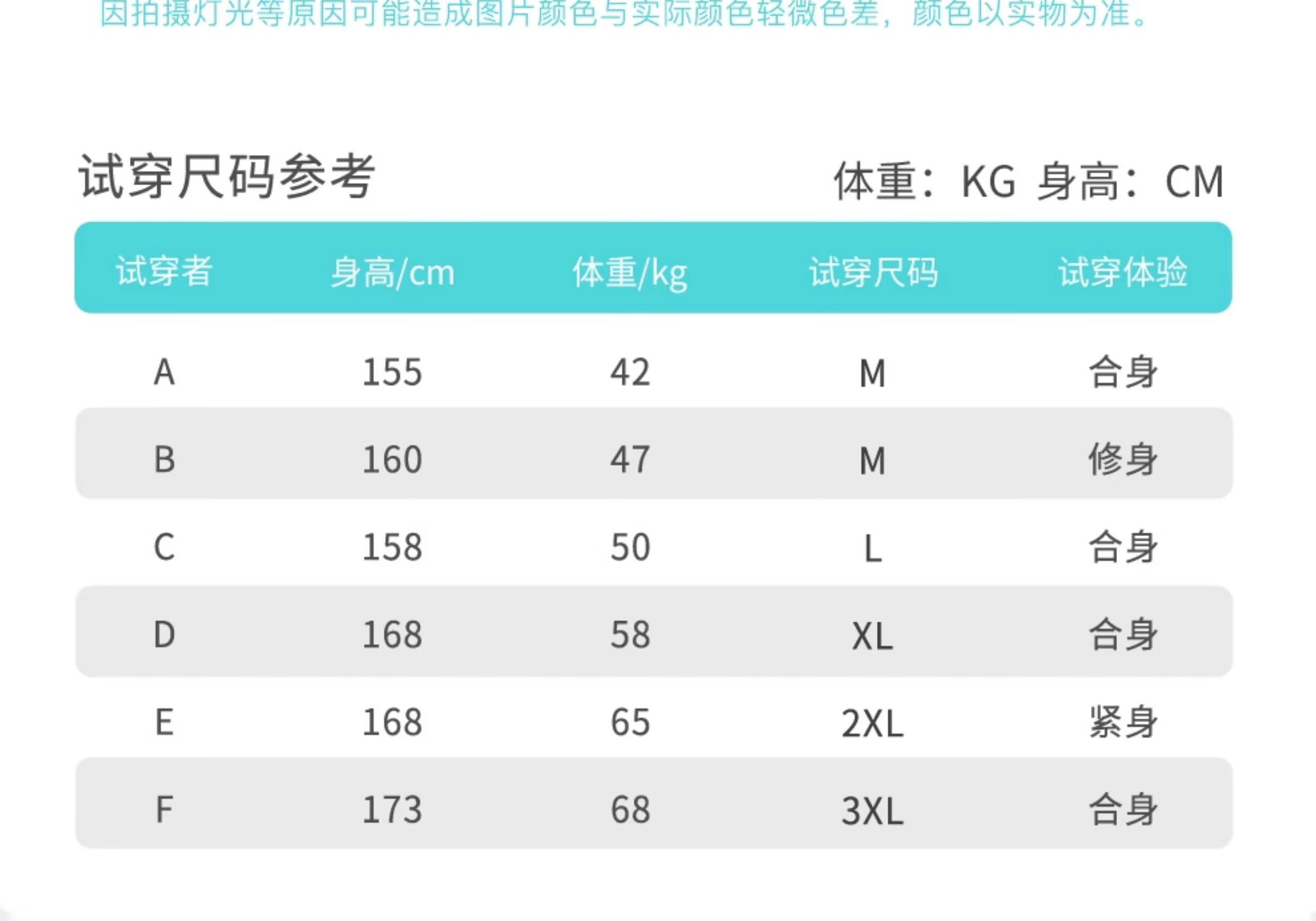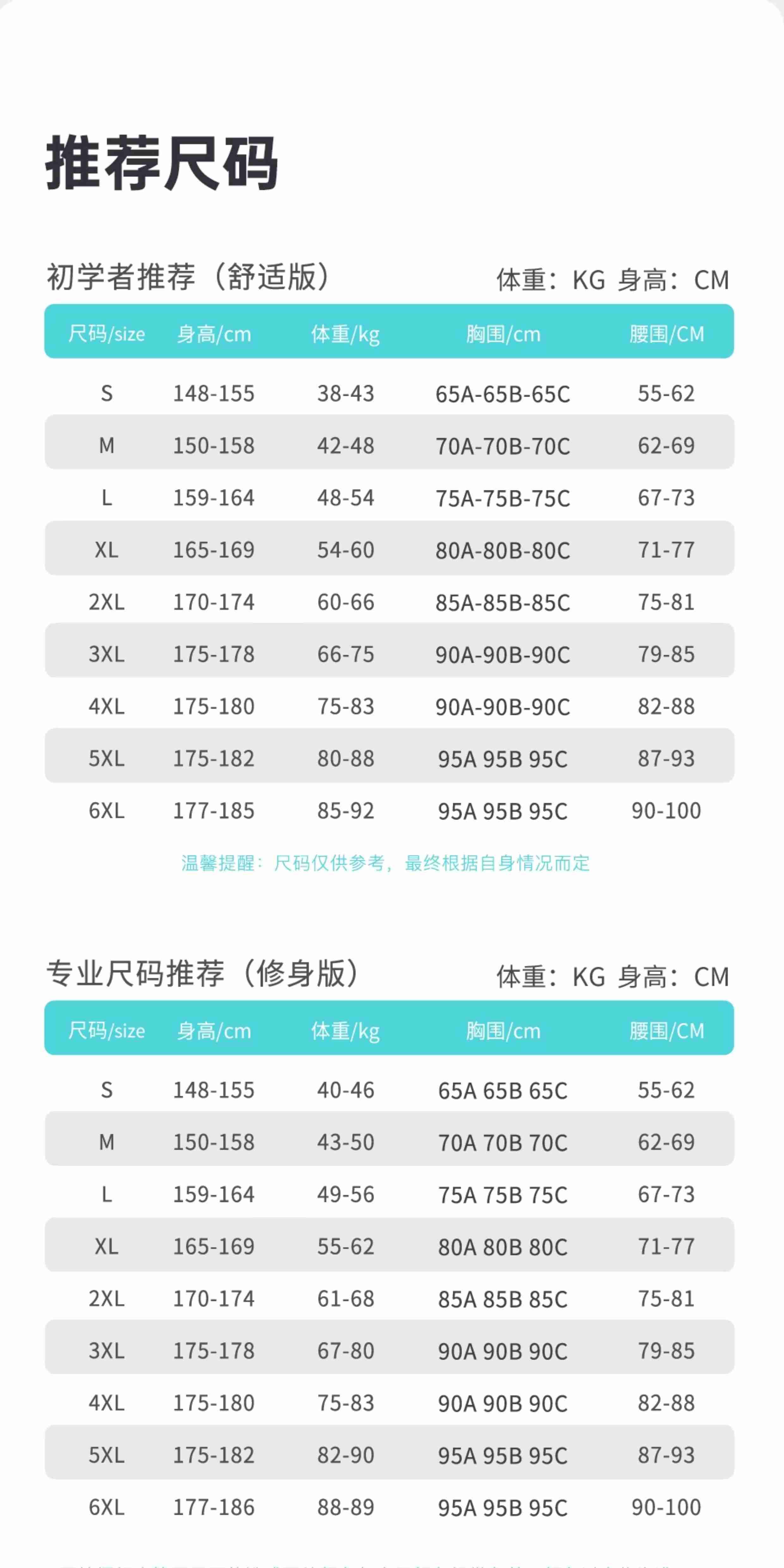 China (cm) 160-165/84-86 165-170 / 88-90 167-172 / 92-96 168-173 / 98-102 170-176 / 106-110